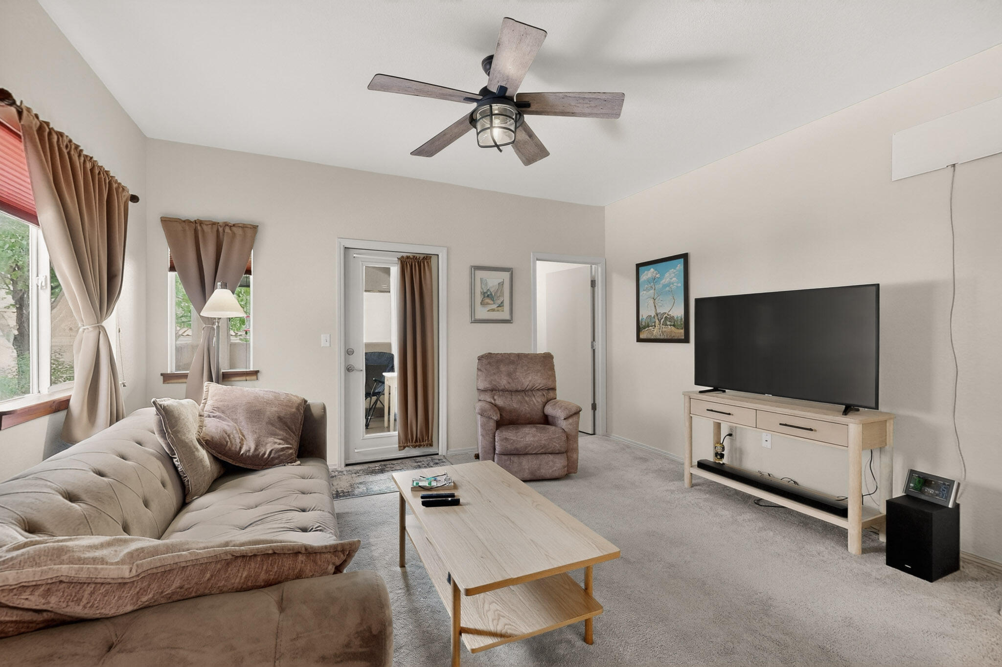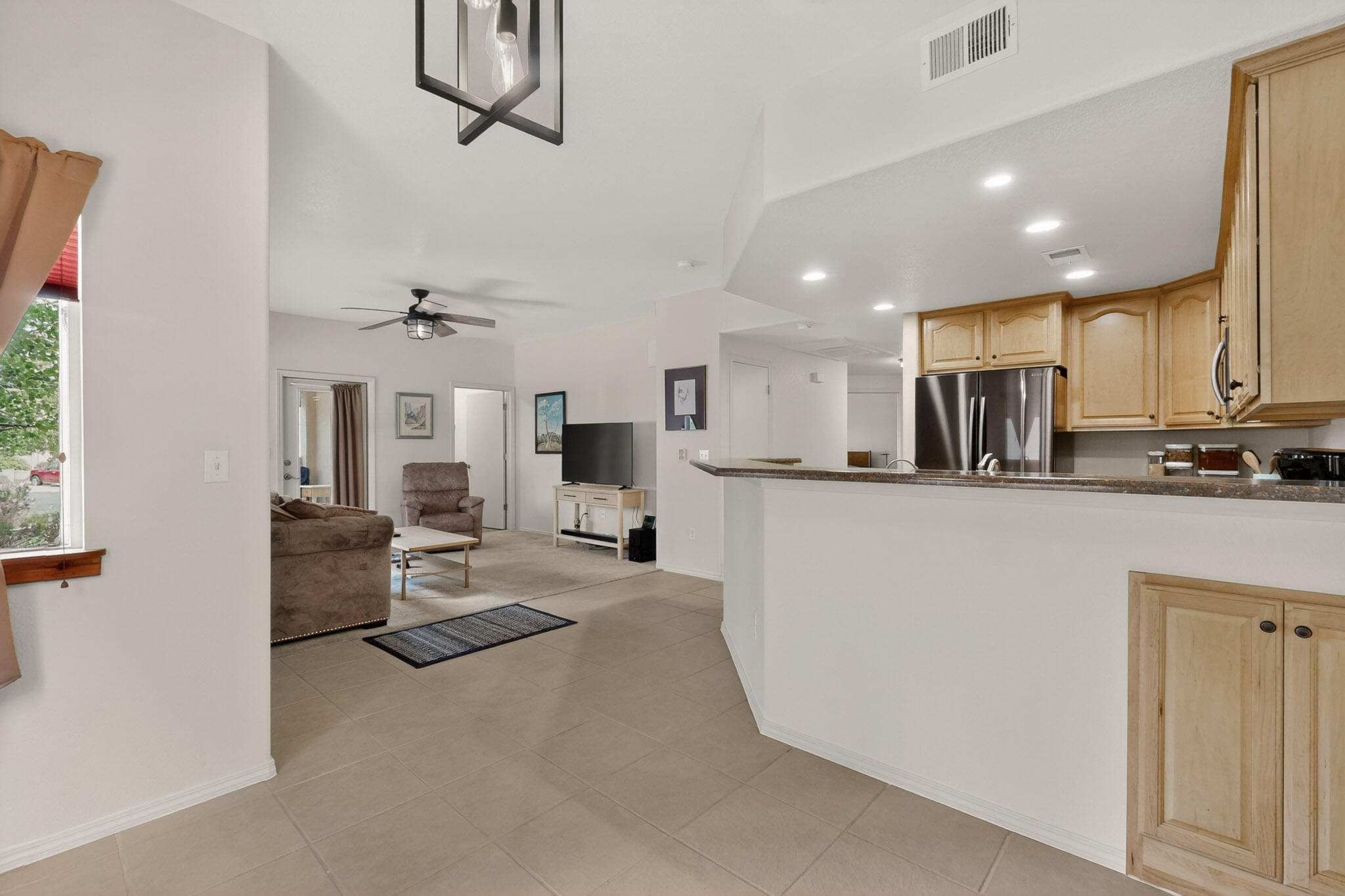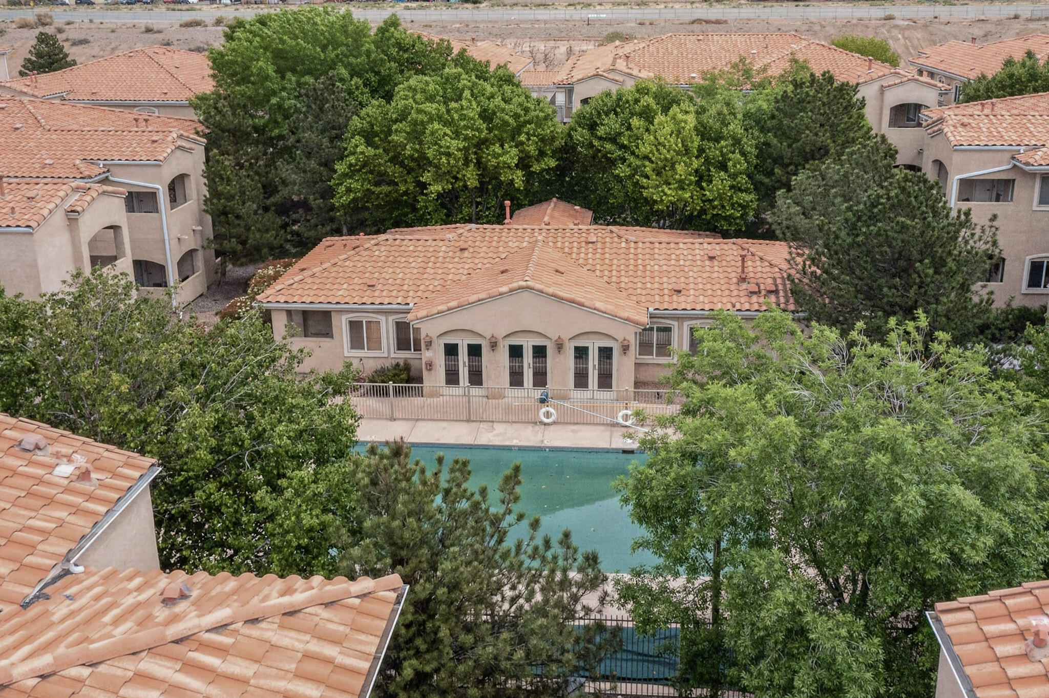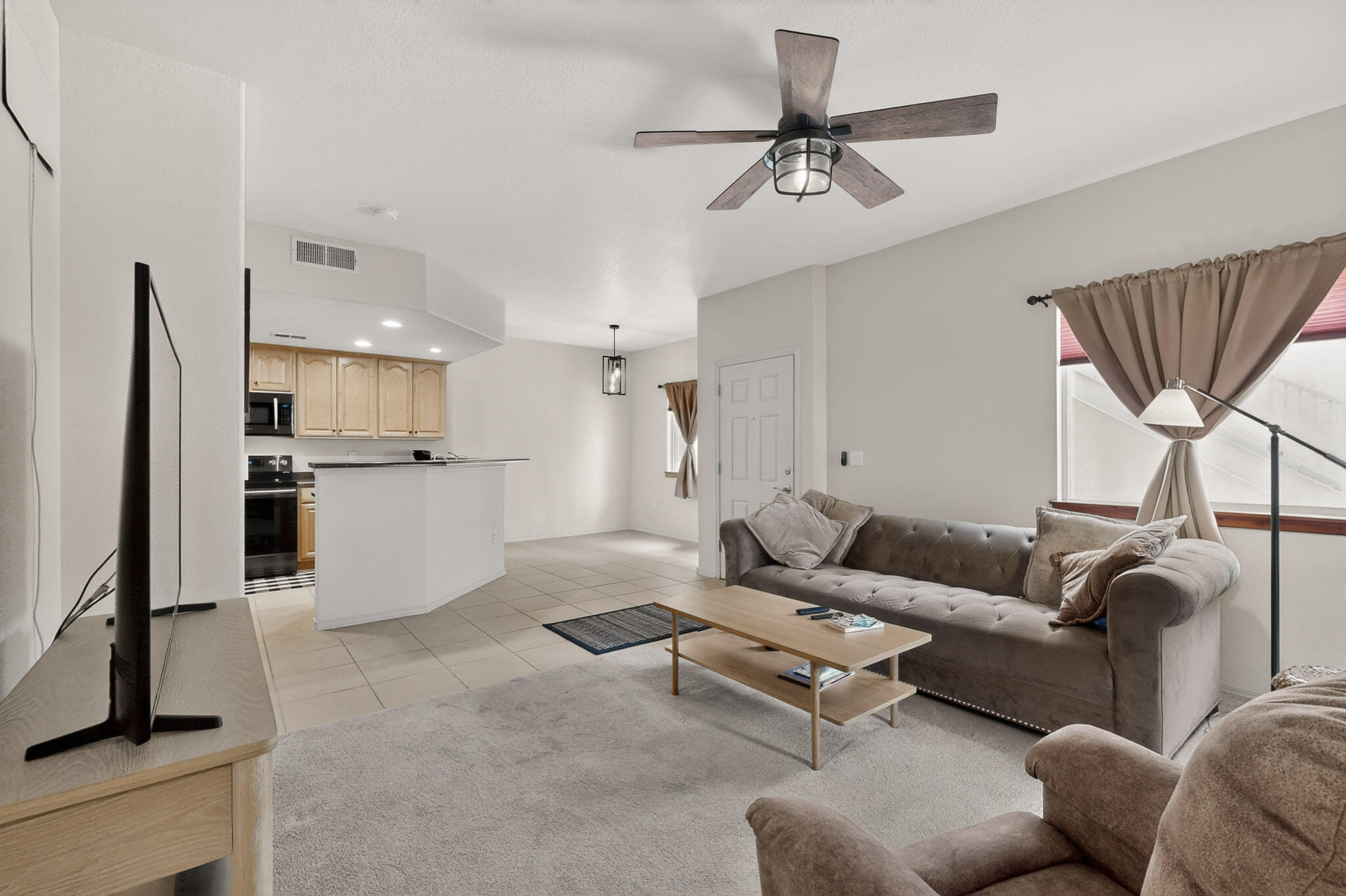 Charming GROUND FLOOR 2 bedroom, 2 bathroom condo located in the desirable Vista del Norte community. This well-maintained home offers easy access and comfortable living, along with fantastic amenities including a community pool and clubhouse. Perfectly positioned between two beautiful parks, you'll enjoy scenic surroundings, outdoor recreation, and a peaceful atmosphere, all while being conveniently close to everything Albuquerque has to offer. The kitchen sink is equipped with a reverse osmosis system, providing clean, high-quality drinking water right at your fingertips.