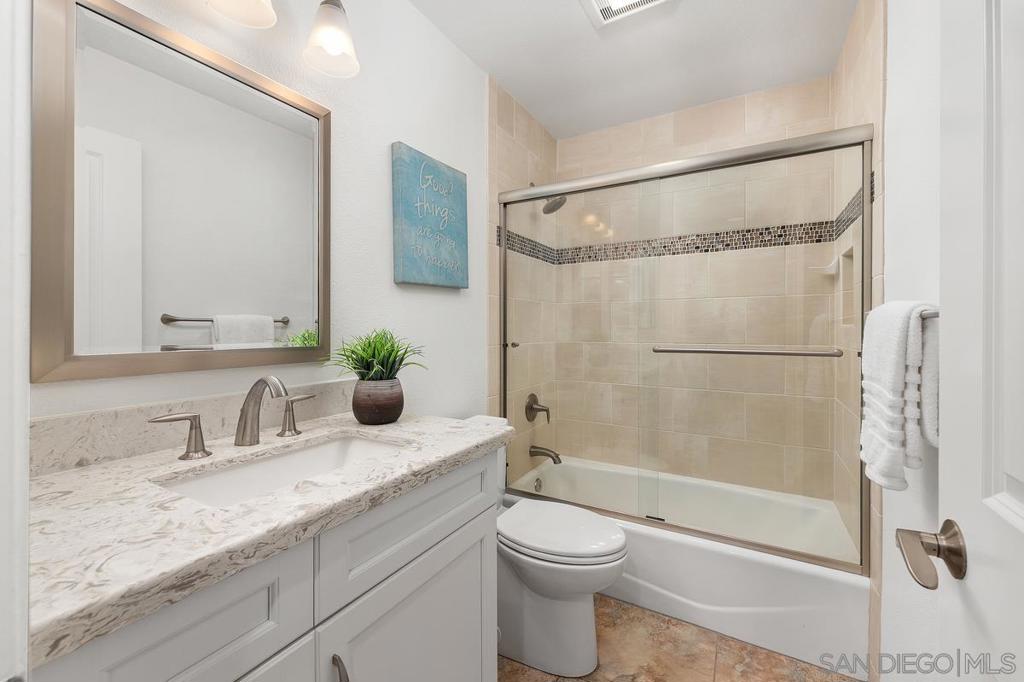 Beautifully updated 3BR/2.5BA townhome in the highly desirable Sunstream community of Carmel Valley. This move-in ready two-story home features a remodeled kitchen and bathrooms, freshly painted interior, tile flooring on the main level, and newer carpet upstairs. The thoughtfully designed kitchen includes KitchenAid appliances, gas range, pull-out drawers, Lazy Susan, soft-close cabinetry, and abundant storage. Additional upgrades include custom wood plantation shutters throughout, newer windows, tankless water heater, upgraded fireplace, updated interior doors, upgraded railings and posts, and attached 2-car garage. All bedrooms are located upstairs, including a spacious primary suite. The home offers a larger, more usable patio than many comparable townhomes, ideal for outdoor dining and relaxing. Sunstream is prized for its quiet setting tucked away from freeway noise while still offering exceptional convenience. Community amenities include pools, spas, tennis courts, clubhouse, workout room, BBQ areas, and greenbelt surroundings. HOA includes water and trash. No Mello-Roos. Ideally located near Carmel Grove Park, One Paseo, Del Mar Highlands Town Center, Piazza Carmel, dining, shopping, freeway access, and just minutes to Del Mar beaches. Located in the highly regarded Del Mar Union and San Dieguito school districts. This home has been used as a vacation home and never rented. Recent upgrades include: Kitchen remodel Bathroom updates Tankless water heater Newer windows Popcorn ceilings removed Upgraded railings and posts Updated interior doors Plantation shutters throughout Upgraded fireplace Garage door opener replaced Used as vacation home, never rented Community features: Pools and spas Tennis courts Clubhouse Exercise room BBQ areas Greenbelt walking paths