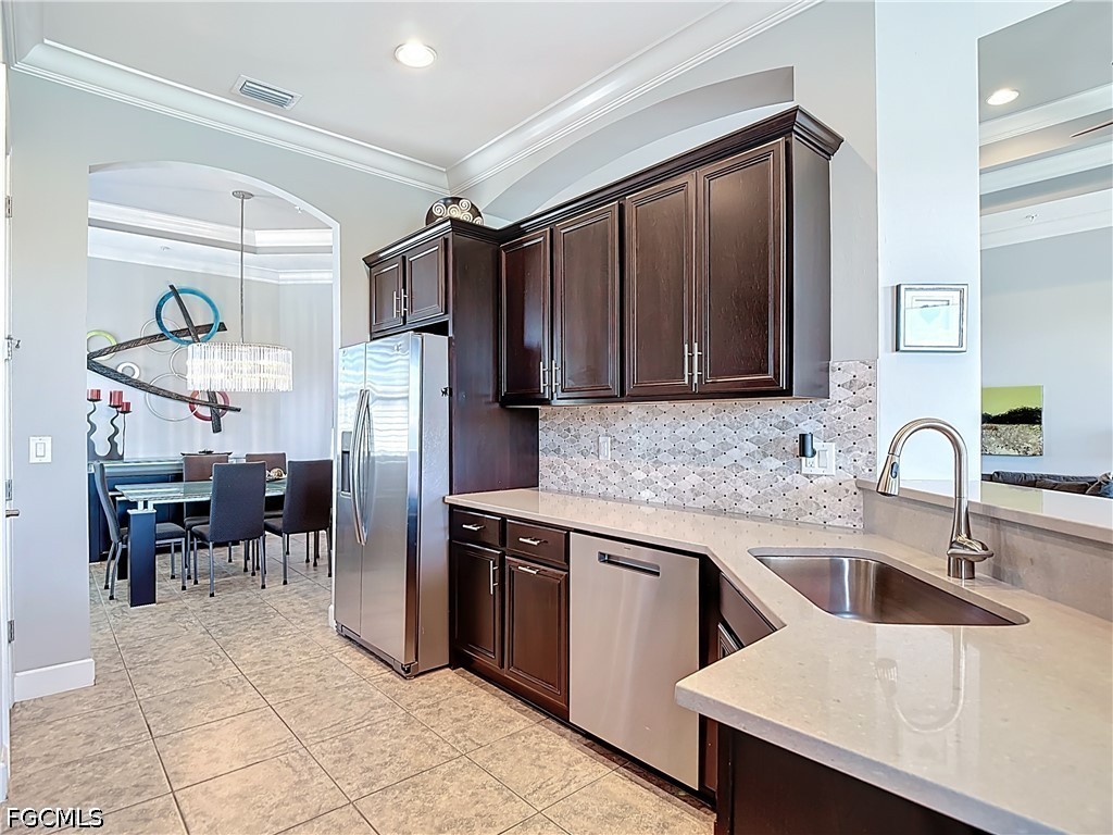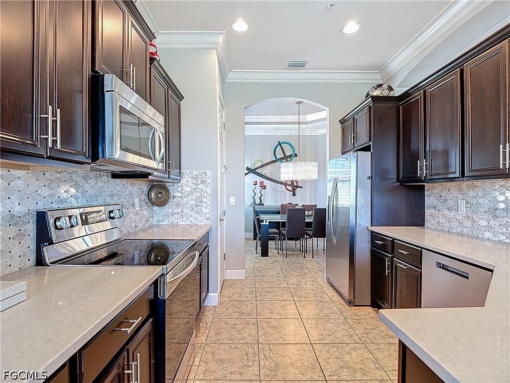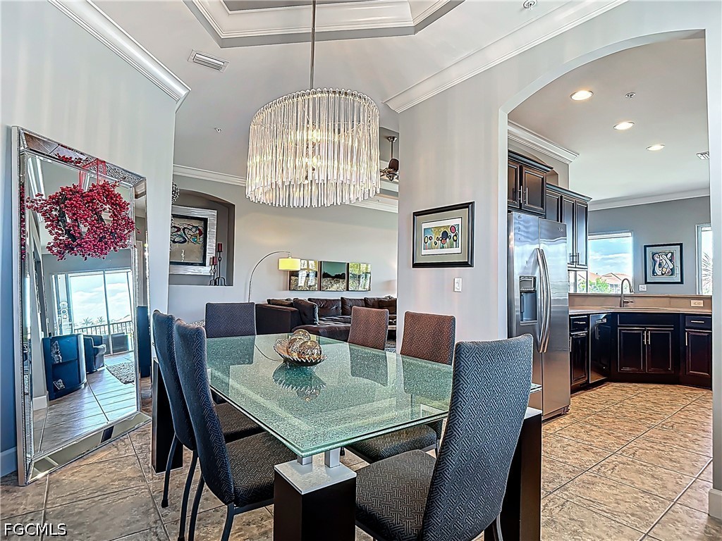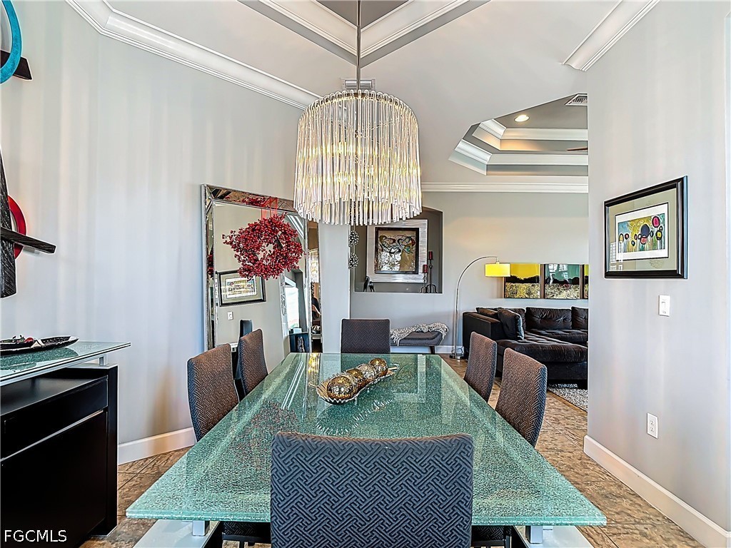Magnificent Coach Home with Stunning Water Views! Wake up each morning to breathtaking sunrises over the lake from your private screened lanai - perfect for enjoying coffee in peaceful surroundings. In the evenings, unwind as the moon rises over the water, creating a truly serene Florida lifestyle. This beautifully designed 3-bedroom + den, 2.5-bath coach home offers a spacious 2-car garage and is filled with high-end upgrades throughout. Plantation shutters adorn every window, enhancing both style and privacy. The gourmet kitchen is a chef's dream, featuring upgraded built-in stainless-steel appliances, quartz countertops, a stylish tile backsplash, cabinetry with soft-close drawers. The open-concept great room impresses with a double tray ceiling, remote-controlled fans, and expansive glass sliding doors that lead seamlessly to the lanai. Enjoy flexible dining options with both a formal dining room - highlighted by a stunning chandelier - and a casual eat-in area with counter bar seating. Tile and wood flooring flow throughout the home for a clean, modern look. The luxurious primary suite offers tranquil lake views, a tray ceiling, and two walk-in closets. The spa-like en-suite bath includes a soaking tub, frameless glass shower, and dual vanities. Guests will appreciate two spacious bedrooms and a well-appointed shared bathroom. Additional conveniences include a dedicated laundry room with a newer washer and dryer, plus a utility sink. Recent upgrades include a new range (2025), dishwasher (2026), and Moen kitchen faucet. Enjoy resort-style living with HOA fees covering cable, high-speed internet, lawn care, pest control, water, exterior insurance, and property maintenance. Optional golf membership is available for the Hurdzan-Fry Championship Course. Community amenities include: A stunning 38,000 sq. ft. clubhouse with formal and casual dining. Two resort-style pools and spa. Six Har-Tru tennis courts. Bocce and six pickleball courts. State-of-the-art fitness center and sauna. Ideally located near the Red Sox and Minnesota Twins spring training stadiums, with convenient access to Southwest Florida International Airport. This exceptional home offers luxury, comfort, and an unbeatable lifestyle - don't miss your opportunity to make it yours.