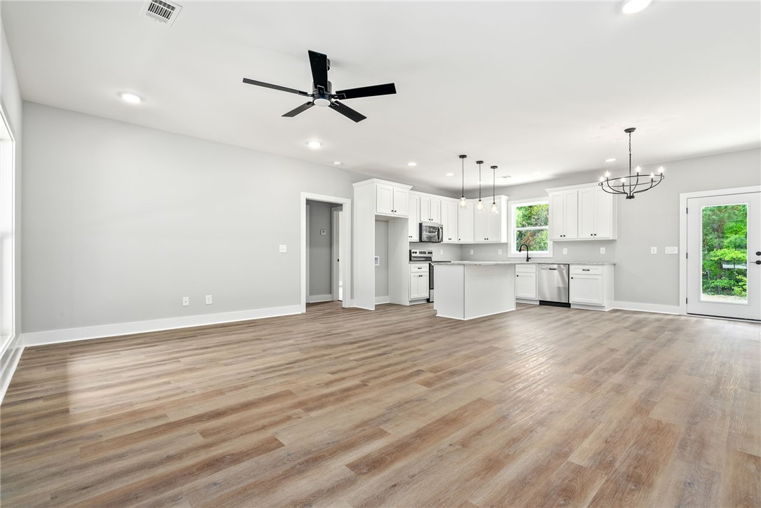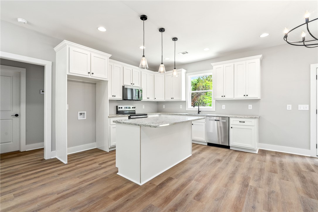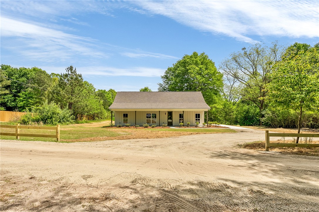 Welcome home to peaceful country living with modern style and comfort! Nestled on a beautiful one-acre lot, this thoughtfully designed 3 bedroom, 2 bath home offers the perfect blend of privacy and functionality. Upon stepping inside you are greeted with an open floor plan featuring a seamless flow between the living, dining and kitchen areas. The kitchen is a standout with custom cabinetry, granite countertops, and a spacious eat-in island, perfect for gathering with family and friends. The split bedroom layout provides added privacy with the guest bedrooms tucked away on the opposite side of the home from the primary suite. The primary bath features a custom tile shower and double vanities, creating a spa-like retreat. Enjoy the outdoors with a large front porch to sit and unwind from the day on as well as a huge front and backyard for entertaining. Plenty of space to add a storage building or build a workshop if desired. Don't miss this home that checks all the boxes!!