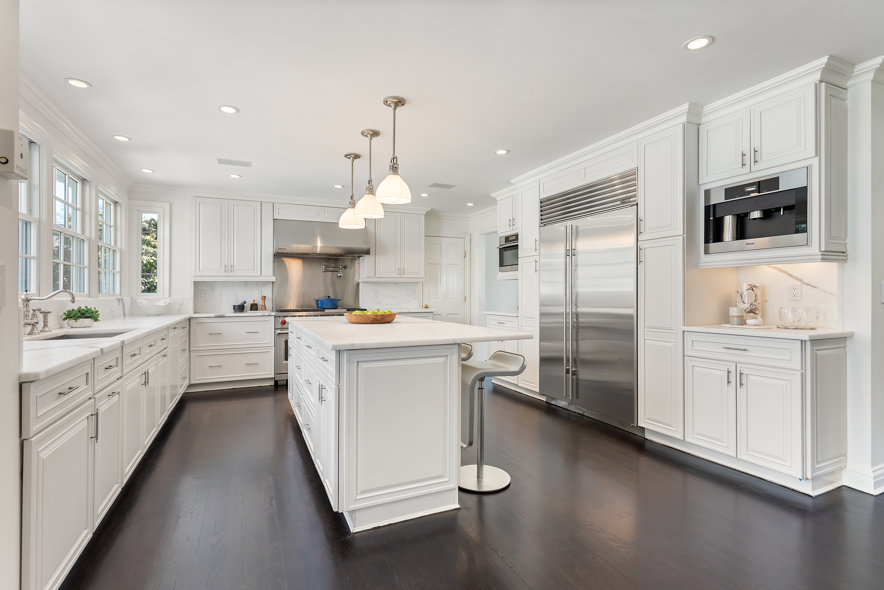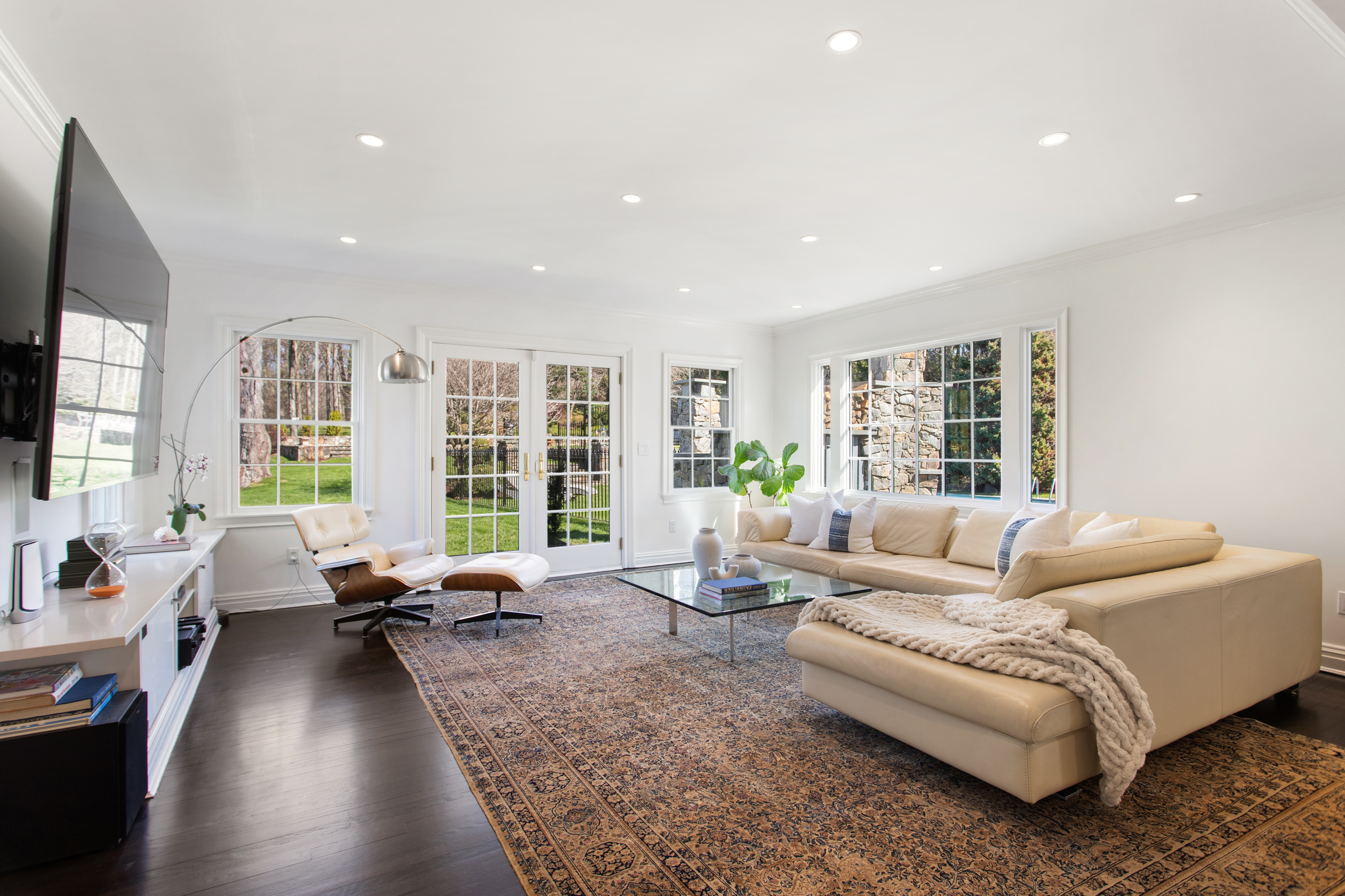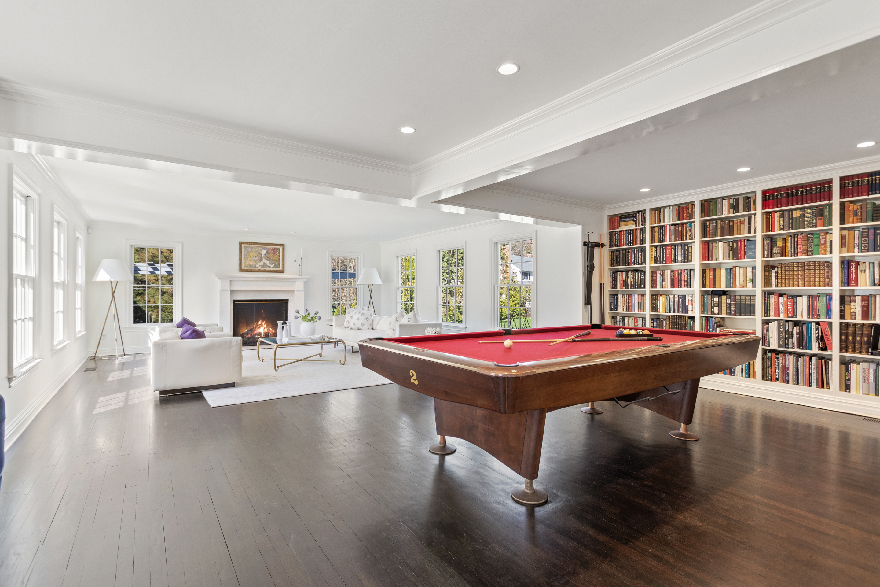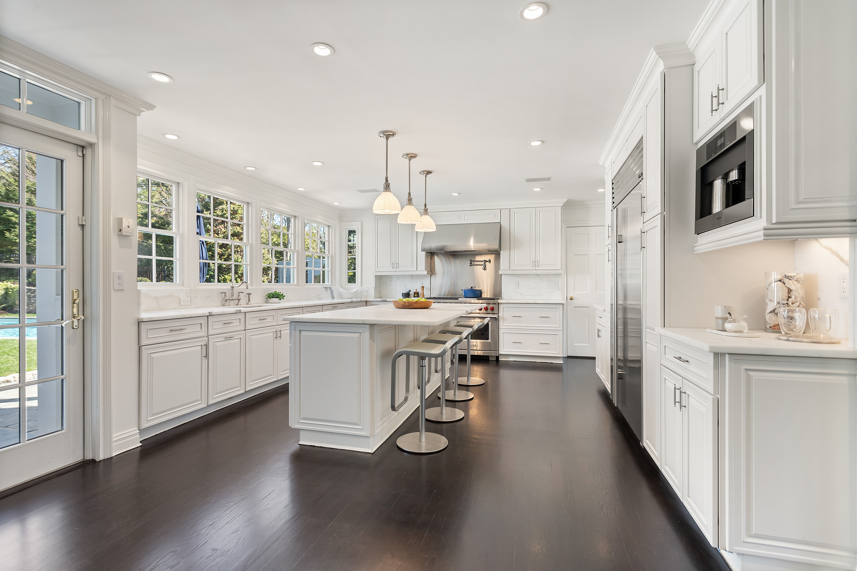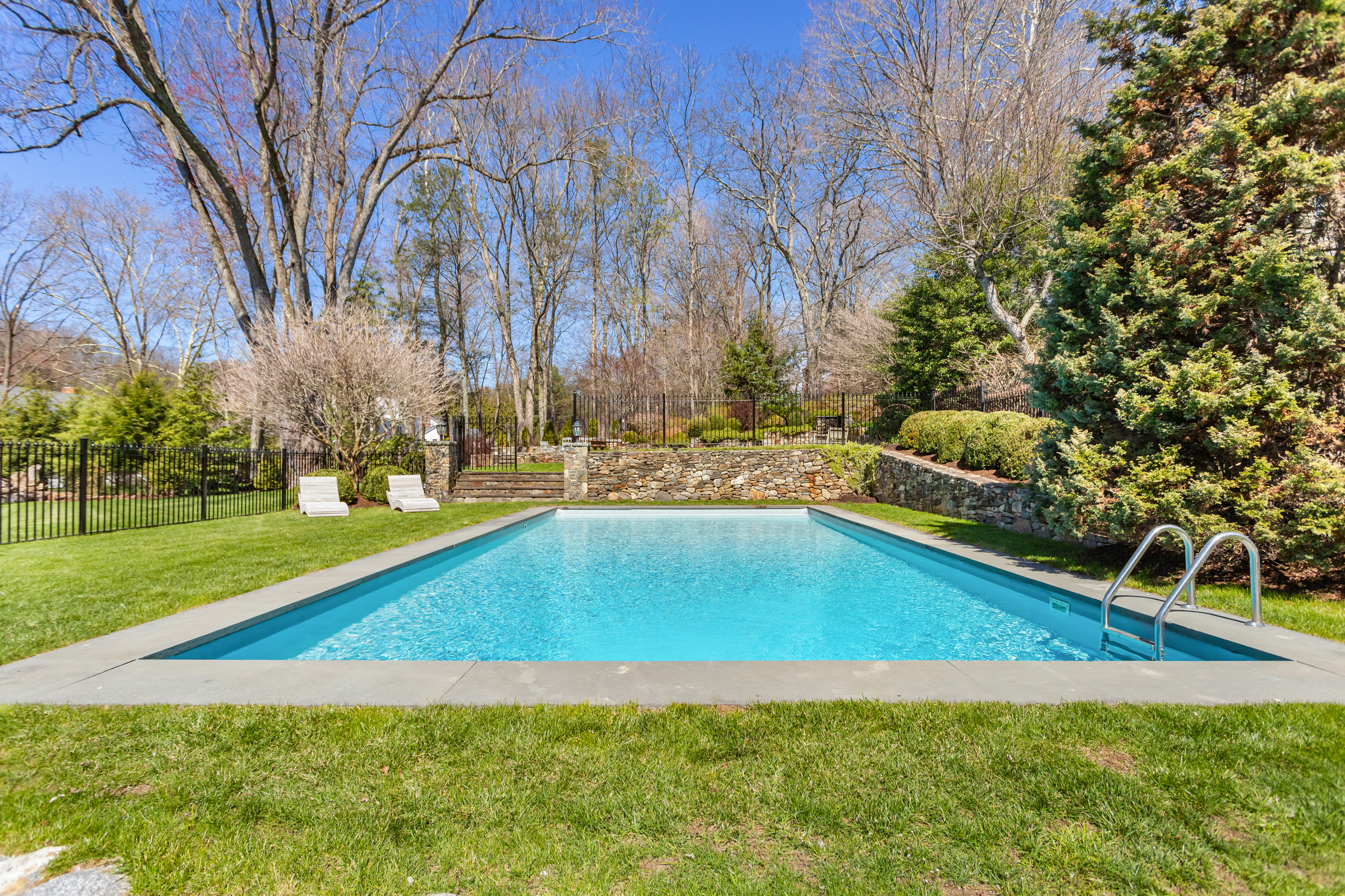In Westport's coveted Long Lots neighborhood, this gracious and stately residence makes a striking first impression, set back from the road behind mature privacy trees and professionally landscaped grounds. Reimagined and expanded in 2010, the home offers sunlit rooms of impressive scale ideal for both memorable entertaining and everyday luxury, with high-end amenities at every turn. A sophisticated first-floor lounge with pool table provides room to gather, while the gourmet chef's kitchen showcases premium appliances, an oversized island and countertops of statuary marble, and generous prep and entertaining areas. A private bonus suite above a 3-car garage includes gathering room with fireplace, bedroom and full bath with room for guests and home office. The park-like property unfolds as a resort-style retreat featuring a sparkling pool, patio with pizza oven, expansive sunny lawn, outdoor fireplace and beautifully terraced gardens. A tranquil koi pond and greenhouse add to the rare, estate setting, and a hot tub offers year-round enjoyment. 5 bedrooms include a sumptuous primary suite with fireplace, spa bath with heated floors, steam shower, and luxe statuary marble and nickel vanity, offering a private sanctuary. Enjoy property views from the 2nd floor deck. With stately curb appeal, privacy, spacious living spaces and curated outdoor living, this exceptional residence delivers elevated living 2 minutes to schools and 5 minutes to NYC train and Westport's lively downtown