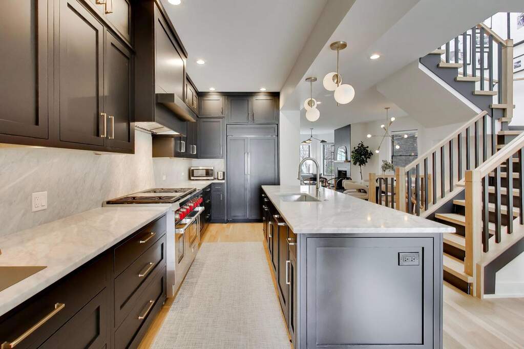 Greystone dreams are met on perfect block in prime Logan Square location. 4 bed 3 1/2 bath home sits proudly on wide lot. You will feel the extra width throughout as it offers space for stunning central stair, full laundry room on 2nd floor, and bold butler's pantry and hidden powder room. White oak flooring throughout 1st and 2nd floors. Gas fireplace. Custom cabinetry, 48" Wolf range w/griddle & double ovens, paneled Sub Zero, marble counters and full backsplash, and walk in pantry make for ideal kitchen. Mudroom with loads of storage. King sized primary with gorgeous bath includes steam shower, soaking tub, and walk in closet. Secondary bedrooms are both large light filled rooms with huge closets. 2nd floor shared bath has dual vanity and separate room for tub and lavatory. Lower level has loads of recreation space, dedicated office, full bath and guest bedroom as well as workout space. Lower level is filled with natural light, has high ceilings, and radiant heated floors. Professional mature landscape, bluestone pavers and garage wall with integrated fire round out this special home.