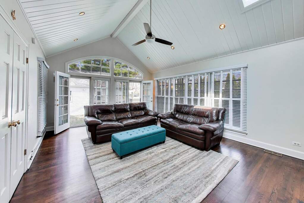 Set in the heart of coveted Kenilworth Gardens, this beautifully appointed center-entry Colonial features 3 bedrooms, 2 full and 2 half bathrooms and blends timeless architecture with refined modern living. With exceptional curb appeal and a thoughtfully designed floor plan, the home offers an effortless balance of elegance and comfort. A gracious foyer introduces sophisticated formal spaces, including a sunlit living room with bay window, fireplace, and custom millwork, and an inviting dining room designed for both intimate gatherings and larger-scale entertaining. French doors open to a spectacular family room where vaulted ceilings, skylights, and walls of windows create a light-filled retreat overlooking the lush, landscaped grounds. The crisp white kitchen is both stylish and functional, featuring granite countertops, an inviting breakfast area, and seamless access to the home's main living spaces-ideal for everyday living and entertaining alike. Upstairs, the serene primary suite offers a walk-in closet and private bath, while two additional bedrooms and an updated hall bath provide comfortable accommodations. The finished lower level enhances the home's livability with a bright recreation room, fireplace, built-in workspace, powder room, and abundant storage. Rich hardwood floors, custom closets, updated baths, and a two-car garage further elevate the home. Ideally located near Harper Elementary School, Mallinckrodt & Thornwood parks, and the train, this residence presents a rare opportunity to enjoy classic North Shore living in one of its most desirable neighborhoods.