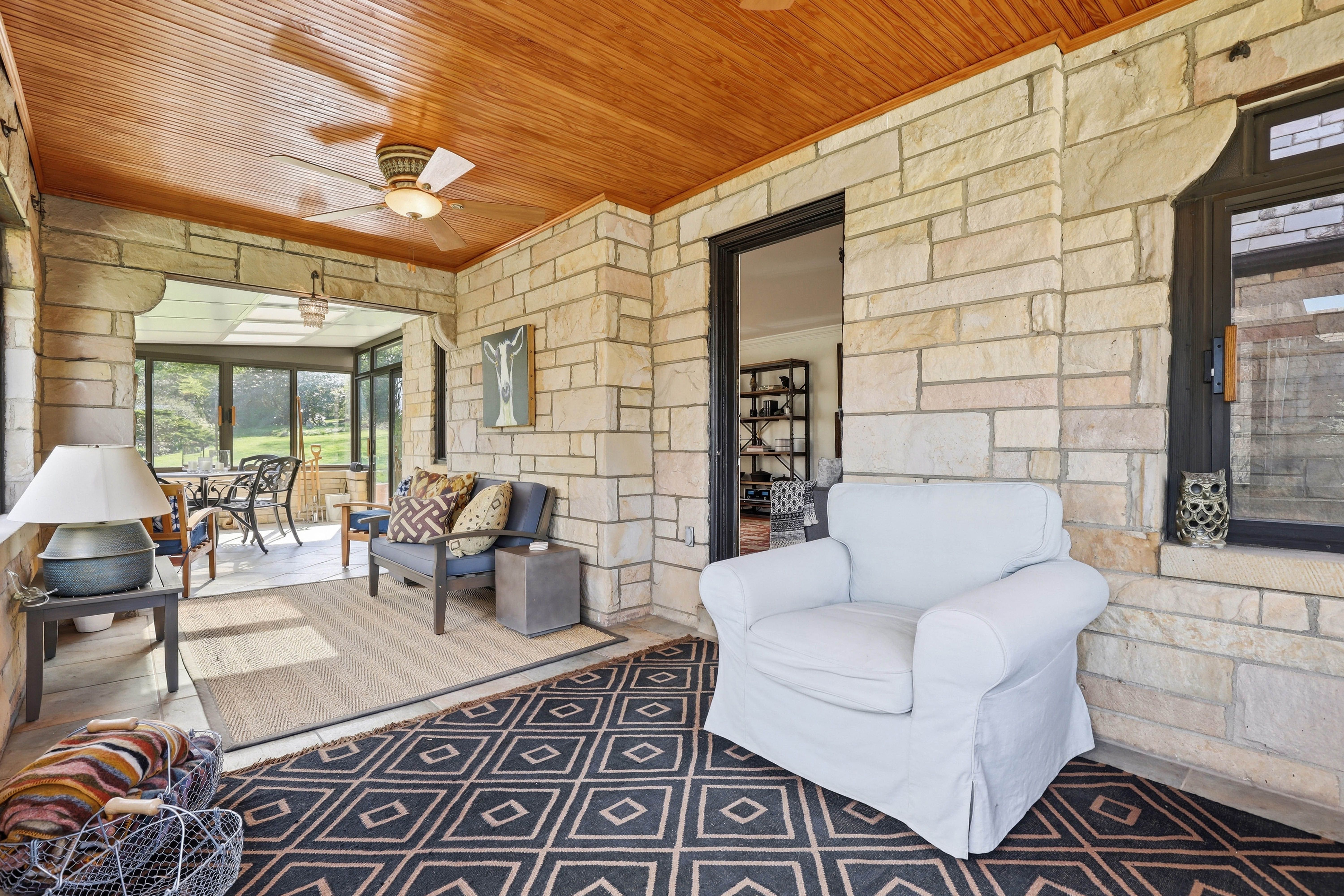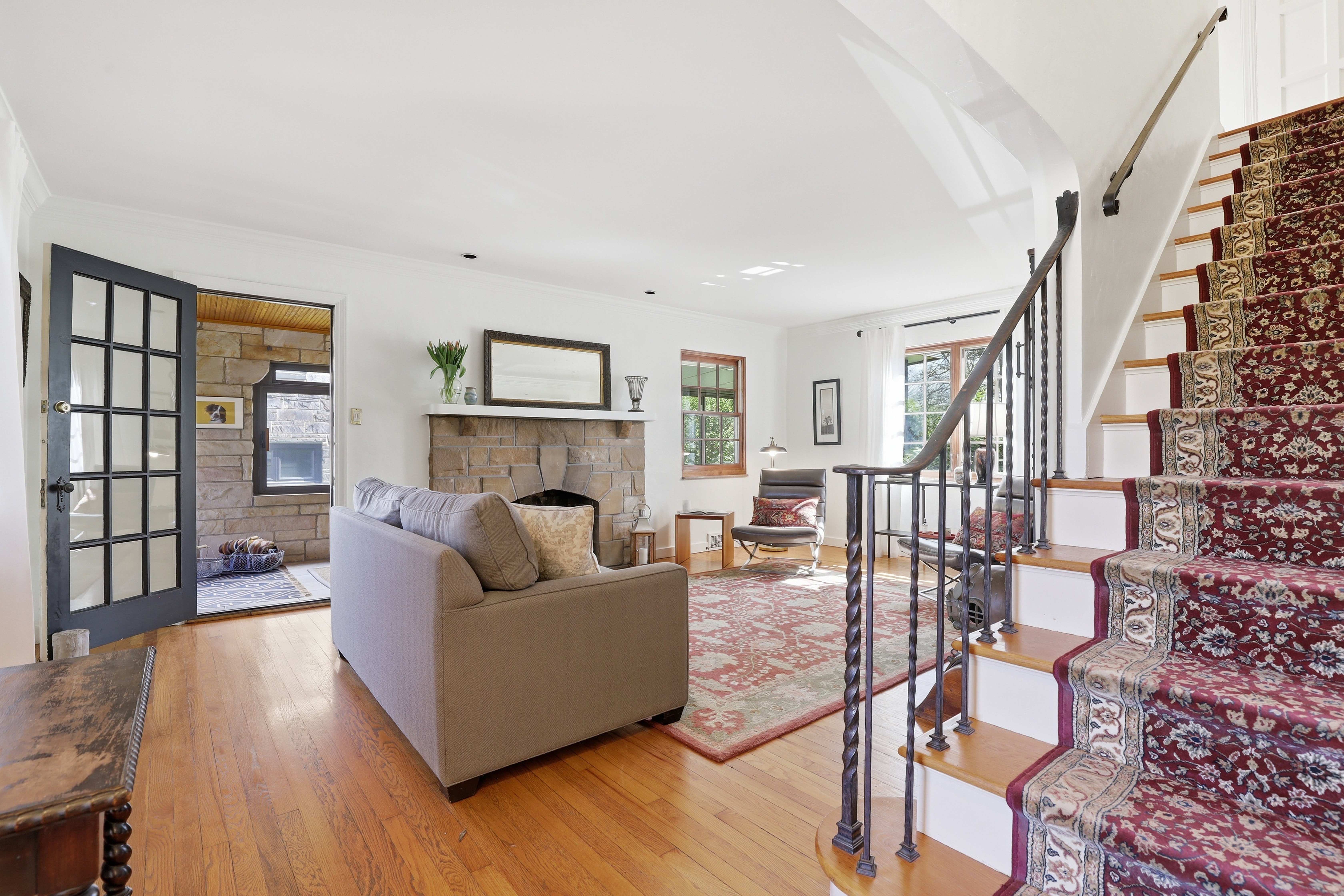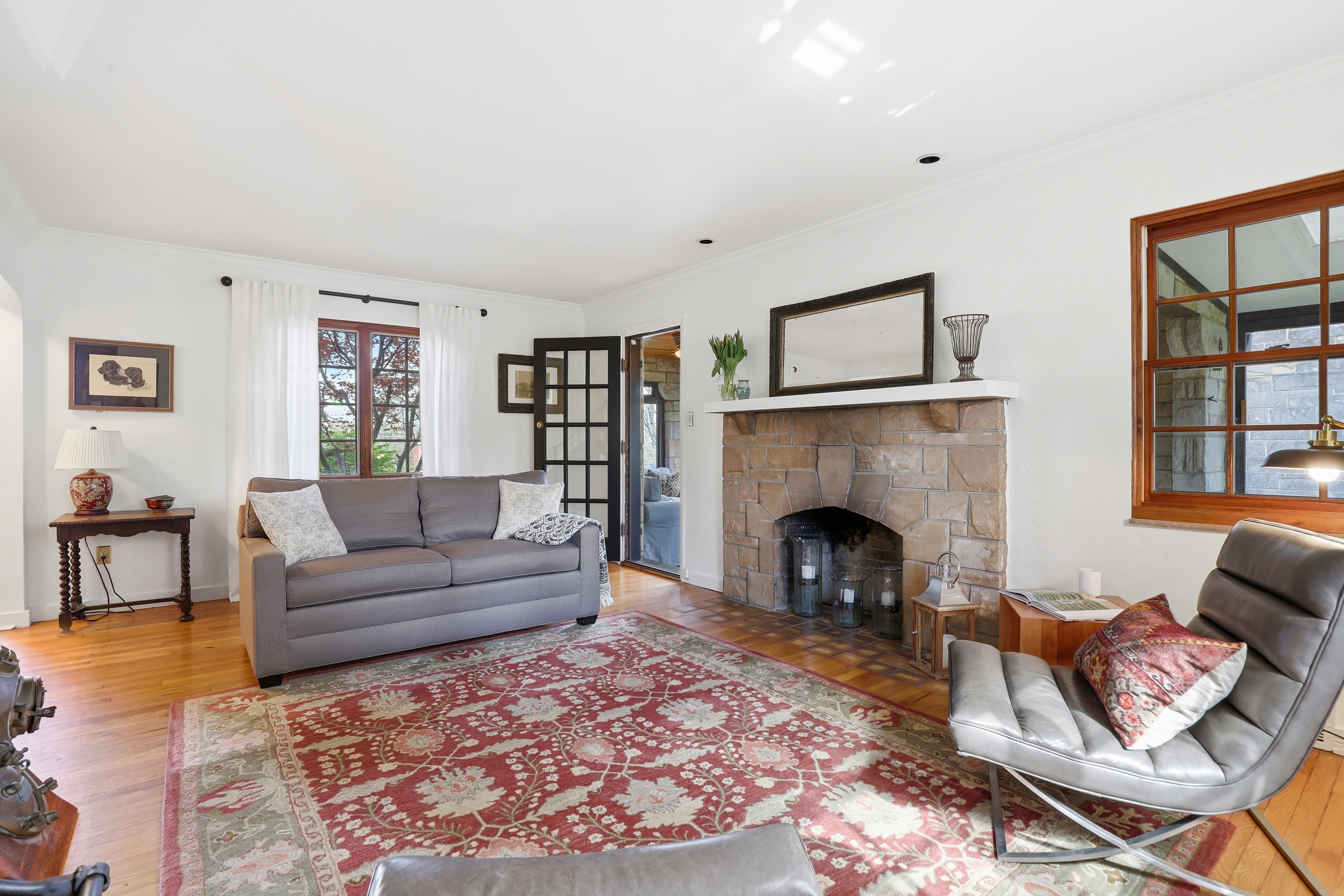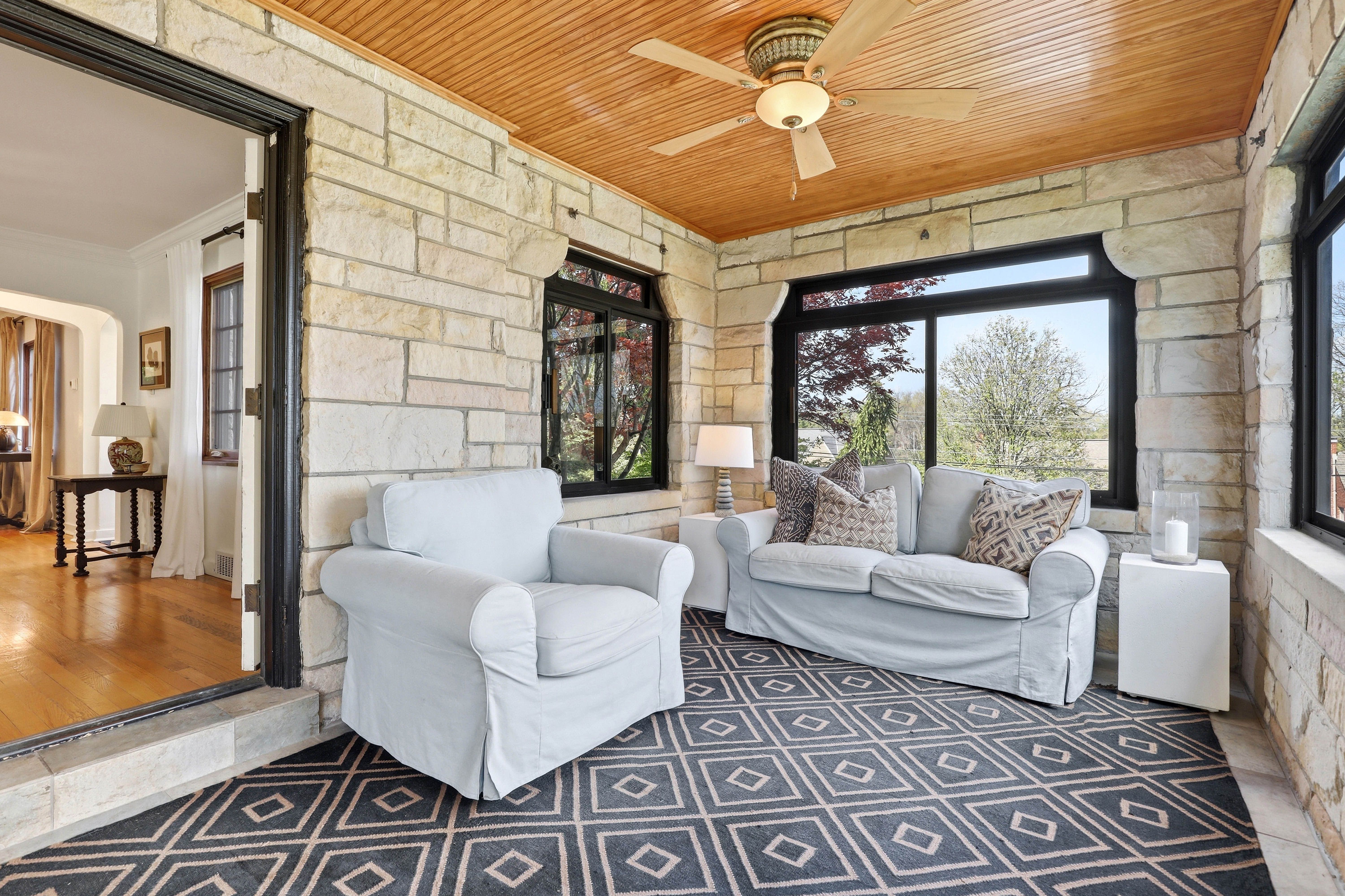 A classic stone home in Mt. Lebanon with timeless character, great natural light, and an oversized yard that offers a rare sense of space.Hardwood floors run throughout the main living areas, adding warmth and continuity from room to room. The living room is anchored by a stone fireplace, creating a cozy and welcoming focal point for everyday living and gatherings. Natural light fills the home through architectural wood windows, adding both charm and craftsmanship. The eat-in kitchen offers updated countertops, added cabinetry, and newer appliances, blending function into the home’s natural flow. Just beyond, the stone sunroom stands out as a favorite space, ideal for a home office, reading room, or quiet retreat.Upstairs, the primary suite is a true highlight, featuring a full bath and a spacious walk-in closet with ample storage, functioning as a dressing room. Two additional bedrooms and a second full bath complete the level.The finished lower level provides valuable additional living space, well-suited for a media room, work-from-home setup, gym, or play space. An unfinished attic offers future potential for additional finished space.Outside, the stone exterior is complemented by thoughtful landscaping that enhances curb appeal. The expansive yard and patio create a flexible outdoor setting, ideal for play, pets, entertaining, gardening, or simply enjoying a peaceful green space.