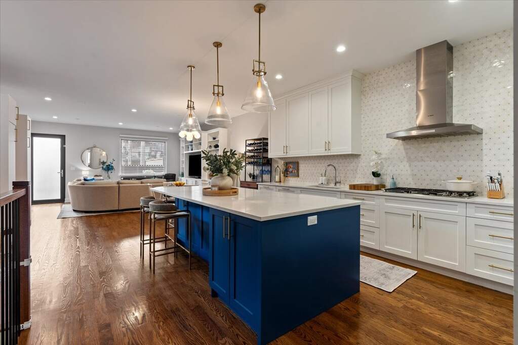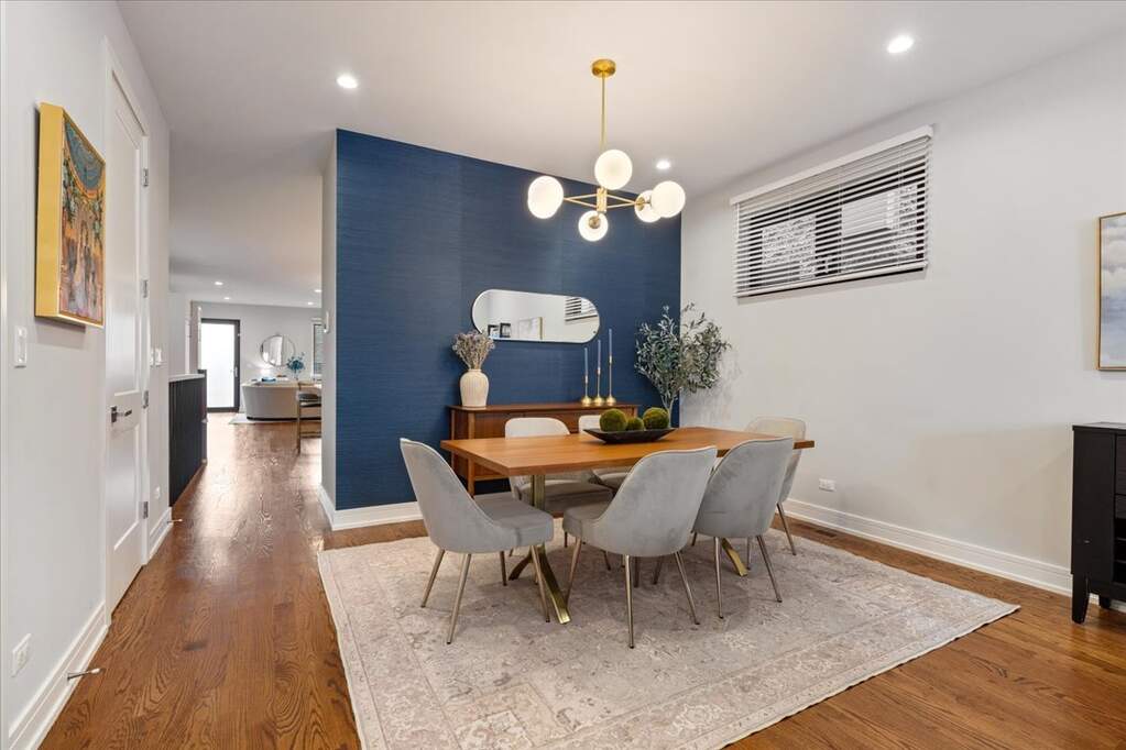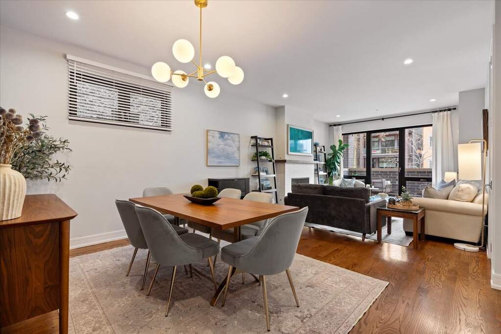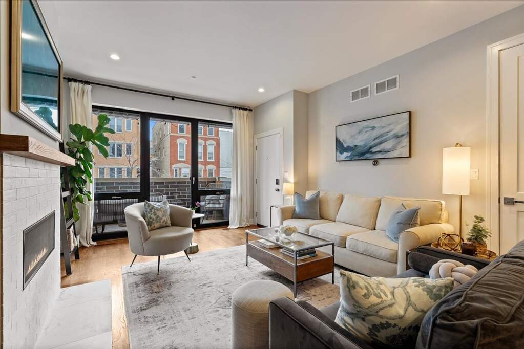 A design forward newer construction 4-bedroom, 2.1 bath duplex down, offering the space of a single-family home with the ease of turnkey city living, set on a quiet, tree lined street just steps from Wicker Park's vibrant Division Street. From the moment you step inside, you are greeted by 10-foot ceilings, rich oak hardwood floors, and oversized west facing windows that flood the home with natural light, creating an immediate sense of openness and warmth. The front living room is anchored by a gas fireplace and offers ample space for a formal dining setup, seamlessly extending to a fully enclosed front patio, ideal for indoor outdoor living. The luxury kitchen is designed for both style and function, featuring quartz countertops, marble backsplash, and a premium Bosch and Dacor appliance package. Just off the kitchen, a large family room provides an additional living area along with space for a dining table, creating a natural second gathering space. From here, an additional rear deck offers the perfect setting for grilling or relaxing, adding another layer of functional outdoor living. The lower-level lives as a seamless extension of the home, with 10-foot ceiling height and a thoughtfully designed layout that includes well-proportioned additional bedrooms, ideal for guests or a home office, along with flexible living space to suit a variety of needs. The primary suite is a true oasis, complete with two walk in closets and a spa inspired ensuite bath featuring heated floors, a dual vanity, a walk in rain shower, and a soaking tub designed for relaxation. Throughout the home, there is an abundance of storage, a rare and valuable feature for city living, and an enclosed covered parking space adds everyday convenience. Perfectly positioned just steps from Division Street's top restaurants, coffee shops, and boutique shopping, with easy access to the Blue Line and nearby expressways, this is a home that feels elevated, functional, and effortless from the moment you walk in, offering a rare combination of design, location, and livability in one of Chicago's most sought after neighborhoods.