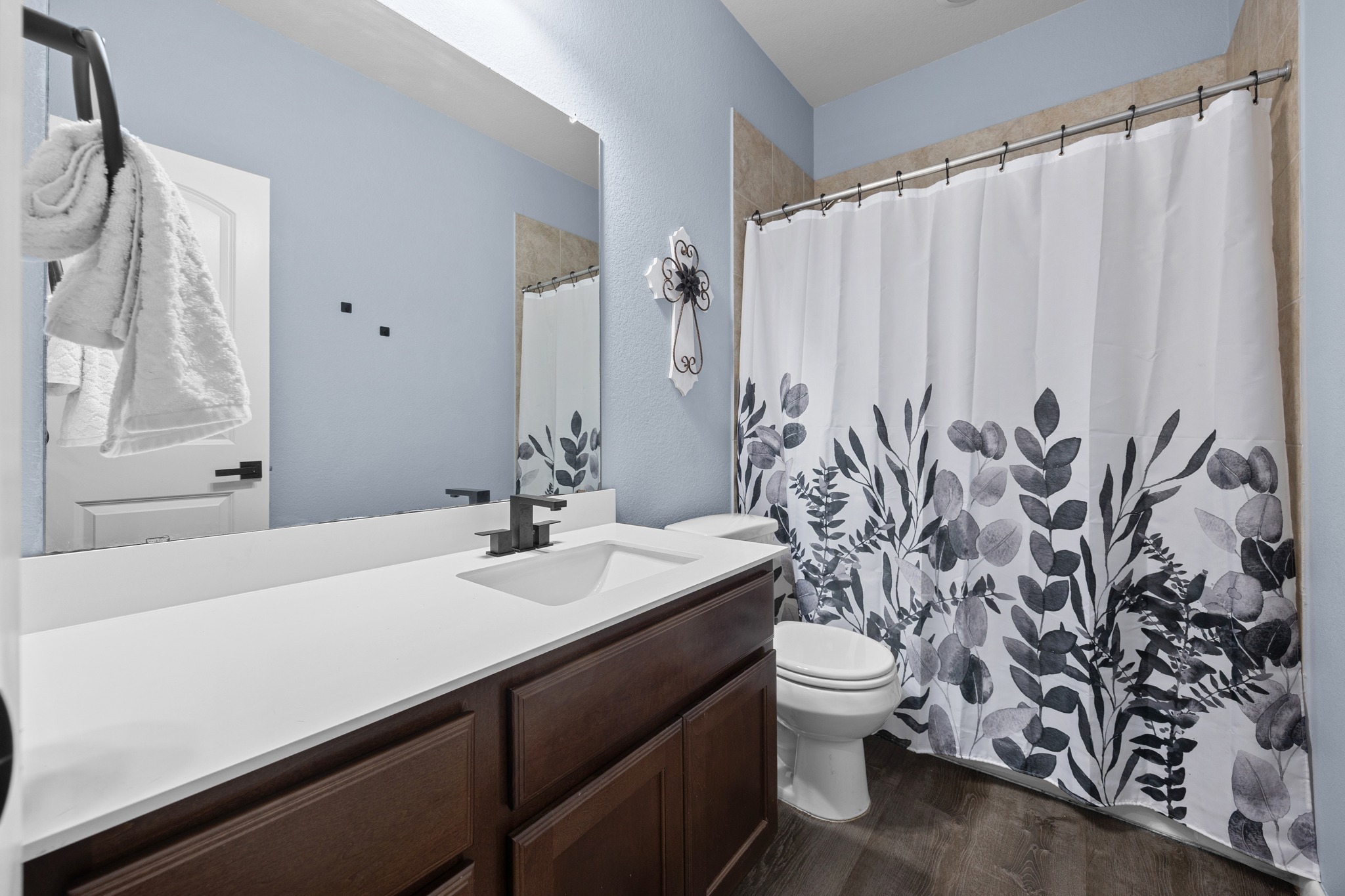 If you've been looking for a home in Lago Vista that's actually turn-key, this is it. At 1,554 square feet with 3 bedrooms and 2 bathrooms on a .21 acre corner lot, it's got a great setup — open layout, spacious living room, and a backyard full of beautiful trees that make it feel like you're tucked away even though you're right in the neighborhood. Built in 2017 and sitting at the end of a cul-de-sac, the currently empty lot next door is a nice bonus too. The sellers have done a great job keeping up with maintenance. New fence in 2021, paint in 2021, updated fixtures in 2024, new dishwasher in 2023, new microwave and range recently added. Both the kitchen fridge and the garage fridge stay with the house. The Lago Vista POA is one of the better ones — fitness center, pool, sports courts, marina, boat ramps, trails, campground, and more. The workout and activity center is an easy walk from this street.It lives comfortably and the lake life perks are right outside your door.