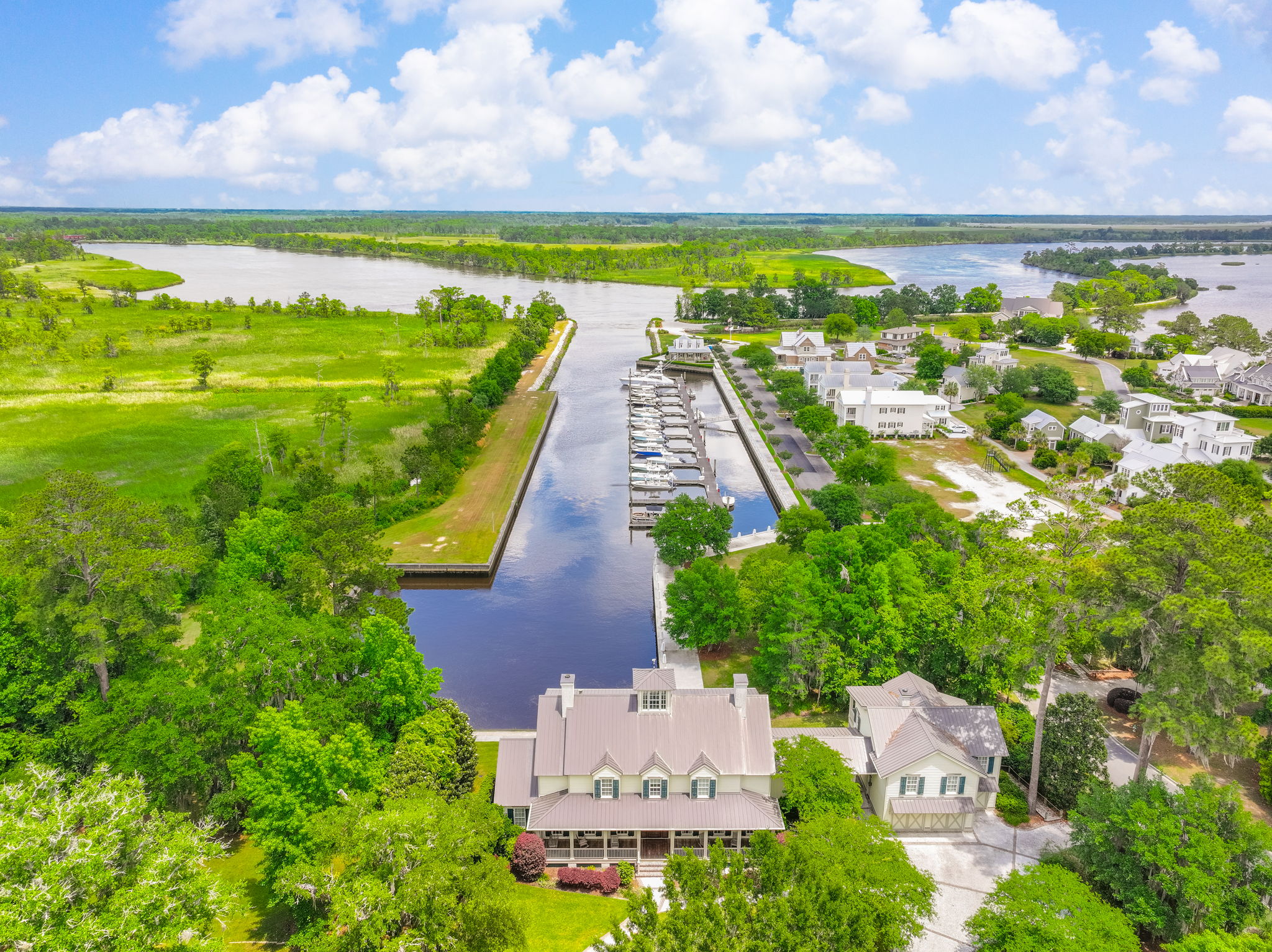 Positioned along the storied banks of Silk Hope Harbour Marina, this exceptional deep water estate within The Ford Field and River Club offers timeless Lowcountry architecture and panoramic views of the Ogeechee River. Built in 2007 and encompassing 5,958 square feet, the main residence features 4 bedrooms and 4.5 baths, with a separate carriage house offering an additional bedroom, bath, full kitchen, an living area - ideal for guests or extended family. Expansive multi-level porches overlook the marina, creating seamless indoor-outdoor living and capturing breathtaking sunsets. Inside, refined craftsmanship defines the home, from soaring ceilings and custom millwork to a gourmet kitchen with double ovens, gas range, island, and wine chiller. Gracious formal and casual living spaces, three gas fireplaces, elevator access, and abundant natural light enhance both comfort and elegance. Situated on a .64 acre full-size lot, the property offers privacy while remaining moments from world-class amenities including Pete Dye golf, marina access, clubhouse, fitness, tennis, equestrian facilities, and more. A rare opportunity to own a deep-water legacy property in one of the Southeast's most distinguished private communities.
