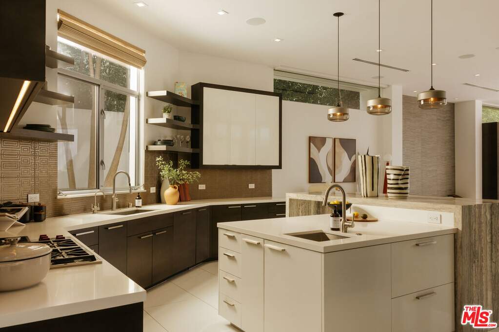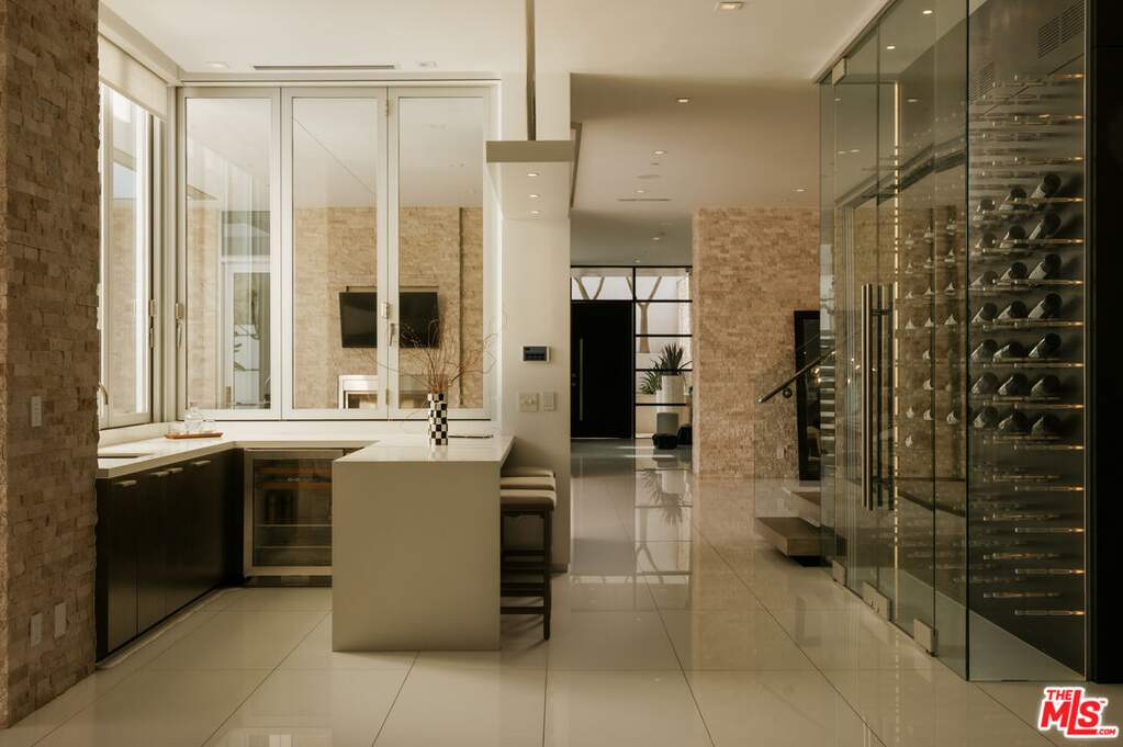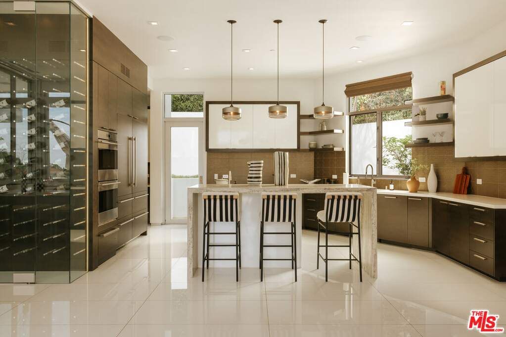 Tucked behind gates in the sought-after Beverly Hills Post Office, this striking modern estate sits on a peaceful hillside with expansive canyon and city views from almost every angle. Created for elevated everyday living and effortless entertaining, the home is filled with natural light and offers seamless indoor-outdoor flow throughout a highly functional floor plan. Spanning nearly 7,200 square feet, the residence includes six bedrooms and seven bathrooms, providing ample space for family, guests, work, and relaxation. Thoughtfully selected features enhance the experience at every turn, including an elevator, fully automated Crestron system, temperature-controlled wine refrigerator, floating glass and wood staircase, gourmet kitchen with custom cabinetry and premium appliances, multiple skylights, and numerous patios and balconies designed to showcase the incredible views. The primary suite serves as a private escape with a fireplace, walk-in closet, spa-inspired bathroom, and its own terrace overlooking panoramic city vistas. Outdoors, the property is equally impressive with a spacious patio, pool and spa, outdoor grill, indoor-outdoor bar area, and expansive Fleetwood sliding glass doors that effortlessly connect the living spaces to the surrounding landscape. A grand gated driveway creates a memorable arrival while highlighting the estate's sense of privacy and distinction. Meticulously designed and constructed with exceptional attention to detail, this residence is located in the prestigious Crest Streets and a great opportunity.