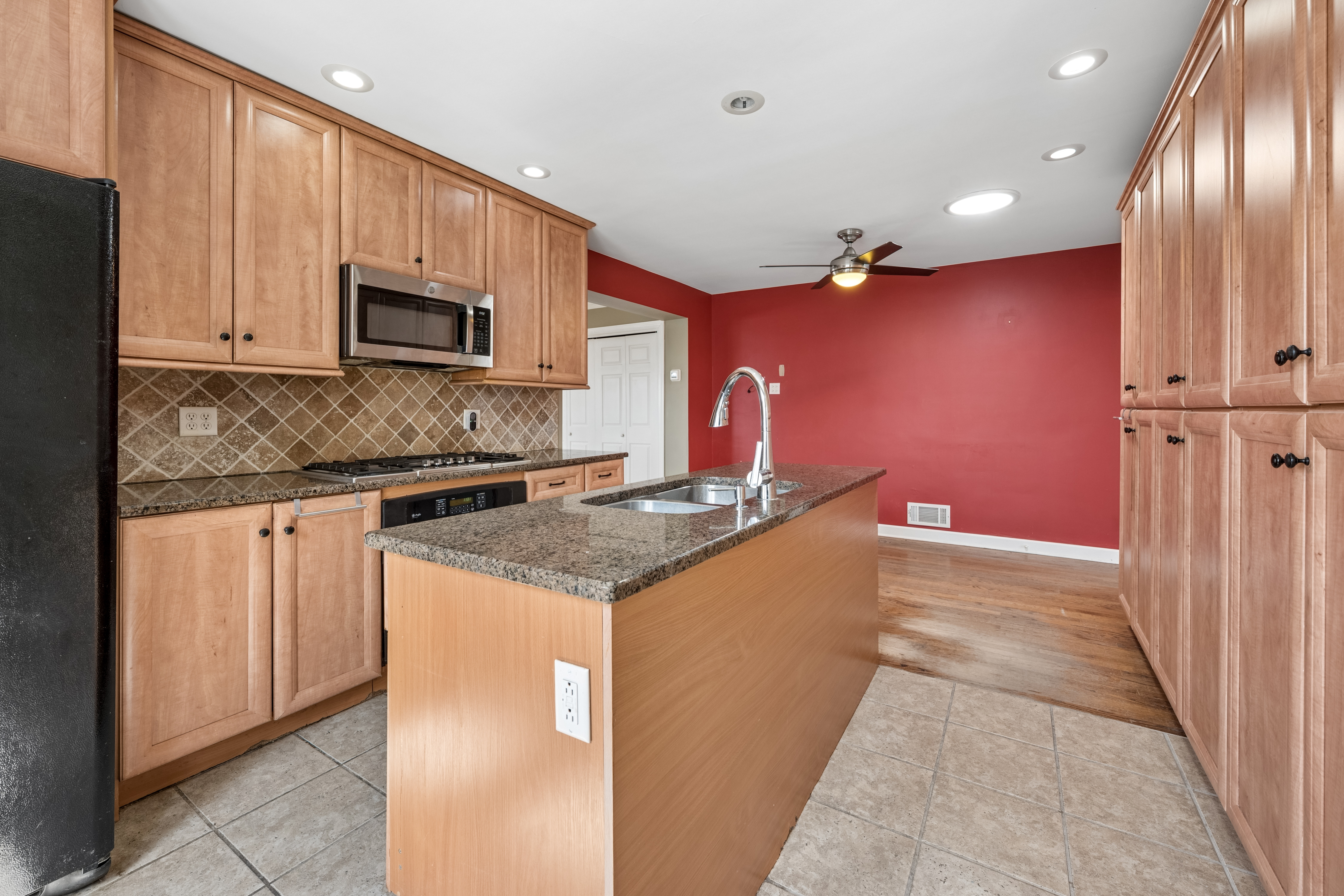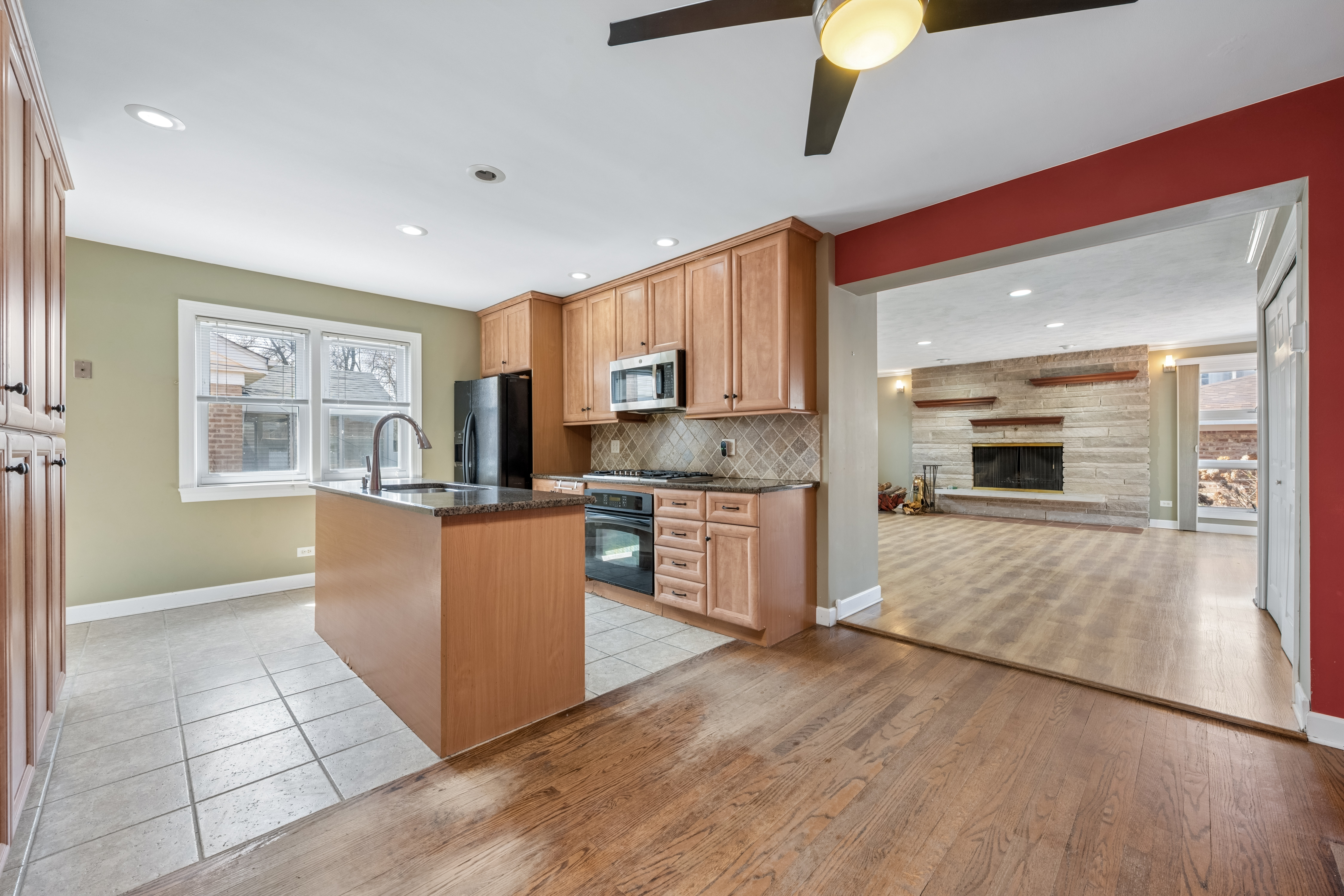 Welcome to this warm and inviting Skokie home full of character and thoughtful details. Step into a sun-filled living room/dining room combination featuring a large picture window and hardwood floors in the living, dining, and bedroom areas. The eat-in kitchen impresses with built-in cabinetry, a granite island with double sink, and a Bosch gas stove, perfect for the home chef. The family room is the heart of the home, complete with a wood-burning fireplace and sliding doors that open to a large deck, ideal for entertaining or relaxing outdoors. Enjoy the privacy of a fully fenced yard with raised bed gardens and south-facing sun all day long. The main floor offers two bedrooms and a full bath, with excellent storage throughout the home. Head downstairs to find a finished basement with a third bedroom, full bathroom with shower, and a bar with mini fridge, a perfect flex space for guests, a rec room, or a home office. Additional highlights include central A/C, a newer roof, gutters, and garage roof, and an attached 2-car garage. Wonderful home being sold in "as-is" condition. Located just minutes from the Skokie Pool, Downtown Skokie, and Metra/CTA train lines.