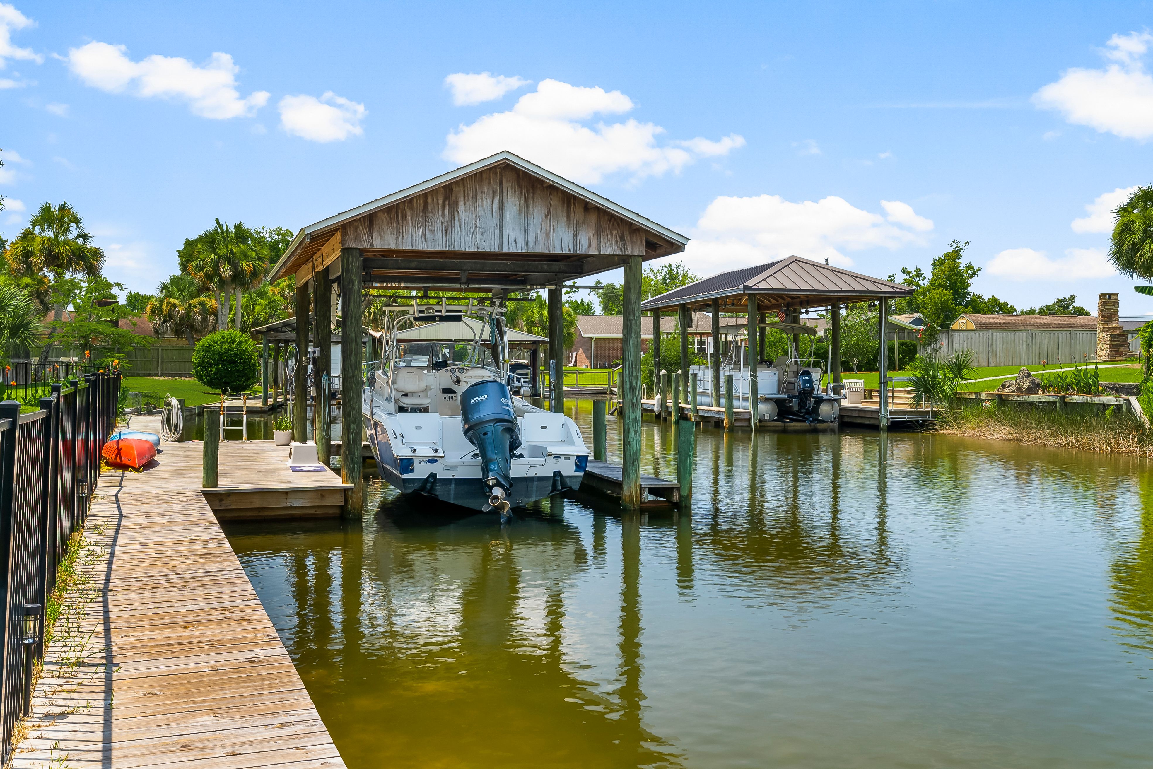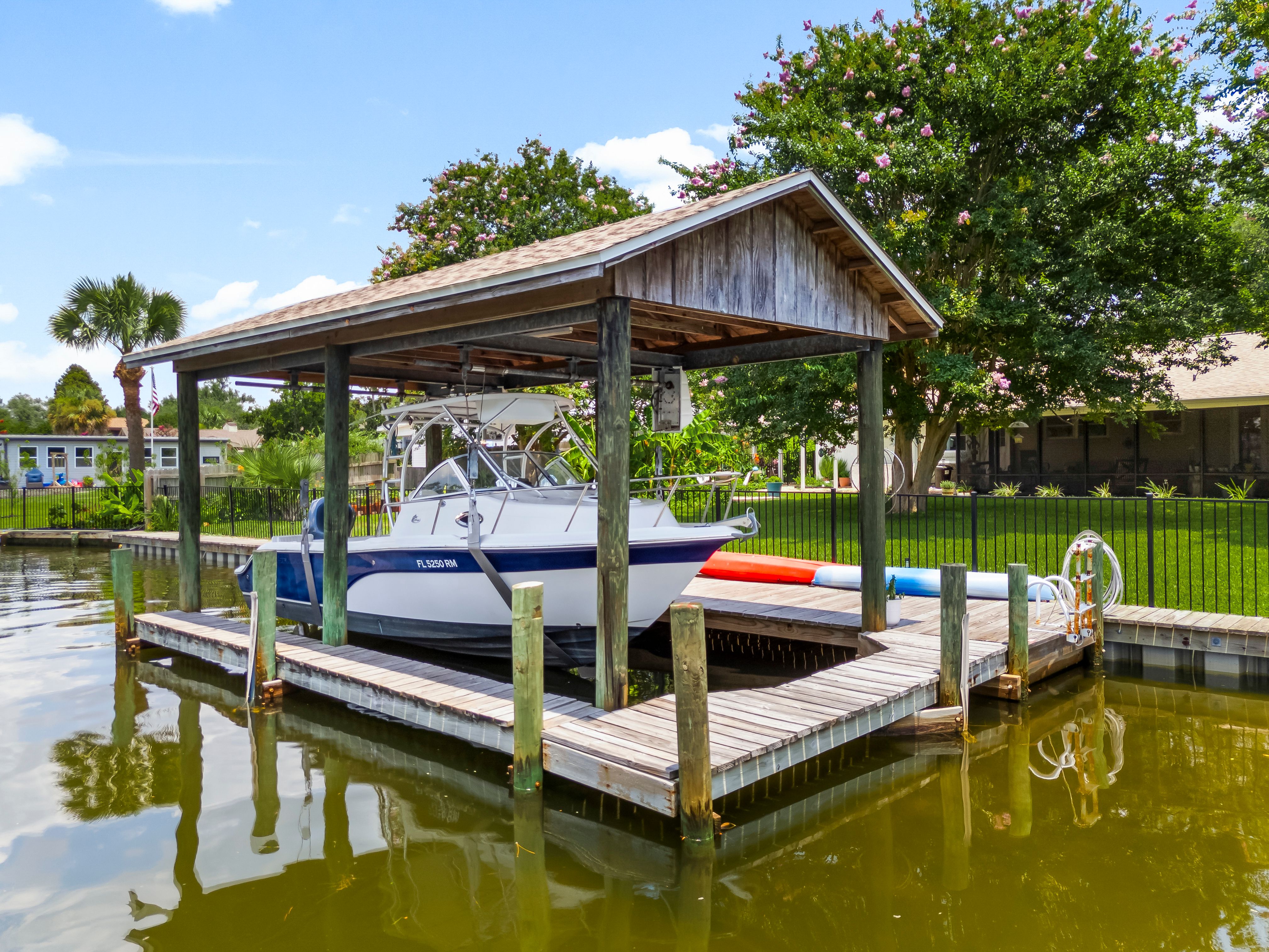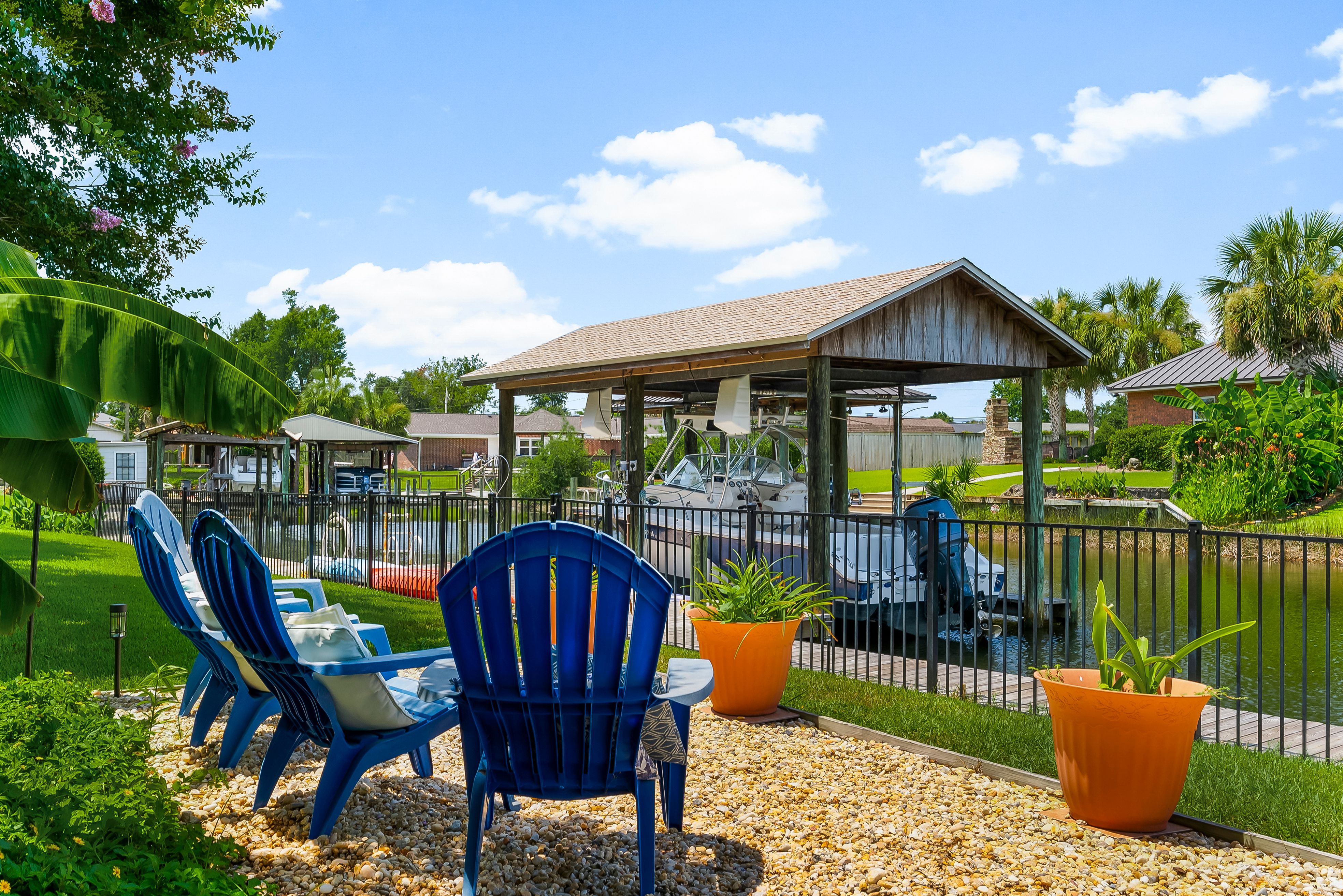 Positioned along a deep-water canal on a quiet dead-end, oak-canopied street, 4439 Vista Lane offers a relaxed waterfront setting designed for both everyday comfort and life on the water. Located in the desirable Northshore area of Lynn Haven, free from HOA restrictions, this three-bedroom, two-bath residence spans approximately 2,505 square feet and offers generous interior living space with direct boating access. The home’s canal frontage is a defining feature, allowing you to step outside and head straight onto the water. A seawall replaced in 2022 and boat lift motors newly installed in 2025 within a covered boathouse enhance the property’s functionality, making it easy to launch a boat and spend the day exploring the surrounding waterways, cruising toward Shell Island, or venturing out into the Gulf. The peaceful canal setting also creates an inviting backdrop for outdoor relaxation, whether enjoying morning coffee by the water or unwinding in the evening with a coastal breeze. A fully fenced backyard adds both privacy and practicality, ideal for pets, gatherings, or simply enjoying the outdoor space. Inside, the residence offers a spacious layout with flexible living areas suited for both quiet evenings and lively gatherings. Multiple living spaces allow for comfortable day-to-day living while providing room to entertain family and friends. Large windows invite natural light throughout the interior, reinforcing the home’s open and airy atmosphere. Several major system improvements add long-term confidence for the next owner. The roof and windows were replaced in 2019, while essential infrastructure, including the septic tank, drain field, lift station, and well, was updated in 2016. These thoughtful updates enhance the home's functionality and durability while supporting a low-maintenance waterfront lifestyle. The property’s location further enhances its appeal. Set within the established Northshore area of Lynn Haven, the home enjoys a sense of privacy while remaining close to everyday conveniences, top-ranking schools, local dining, and shopping. Lynn Haven itself is one of the most sought-after residential communities in Bay County, valued for its strong sense of community, parks, and access to the water. From this location, residents are just a short drive from the white sand beaches of Panama City Beach while still enjoying the quieter pace of a residential coastal town. With nearby marinas, boat ramps, restaurants, and retail centers, the area offers an ideal balance between waterfront recreation and everyday convenience.