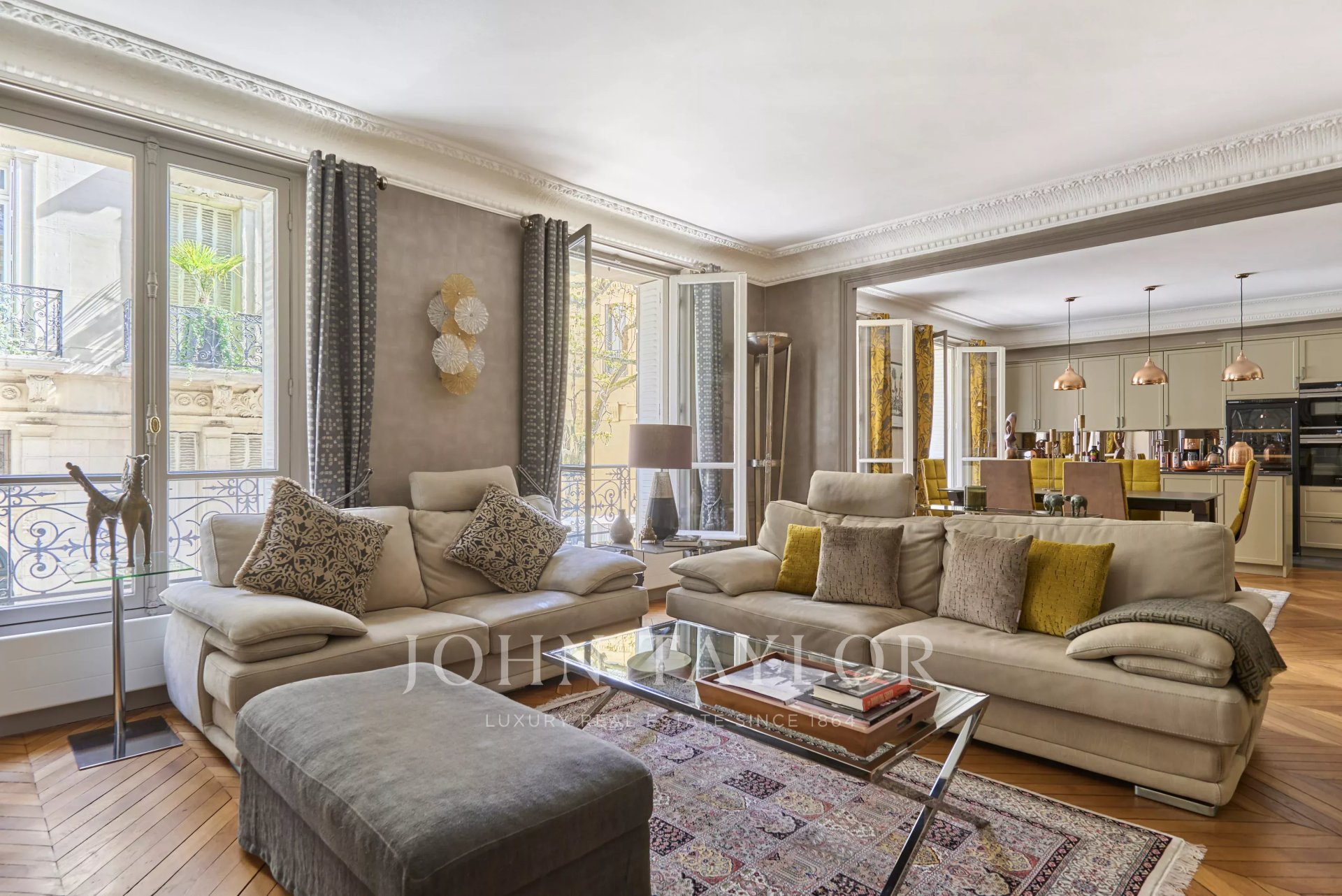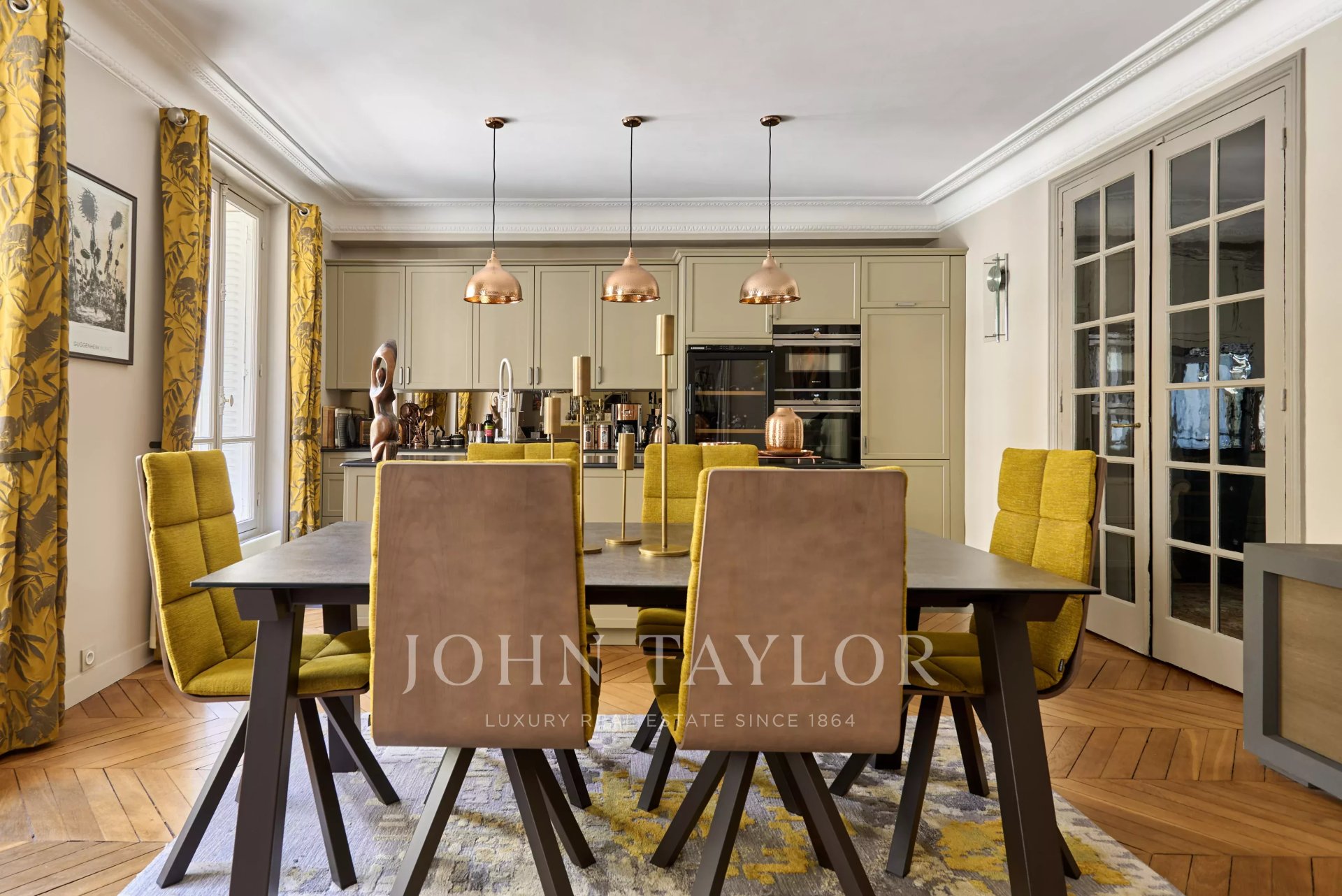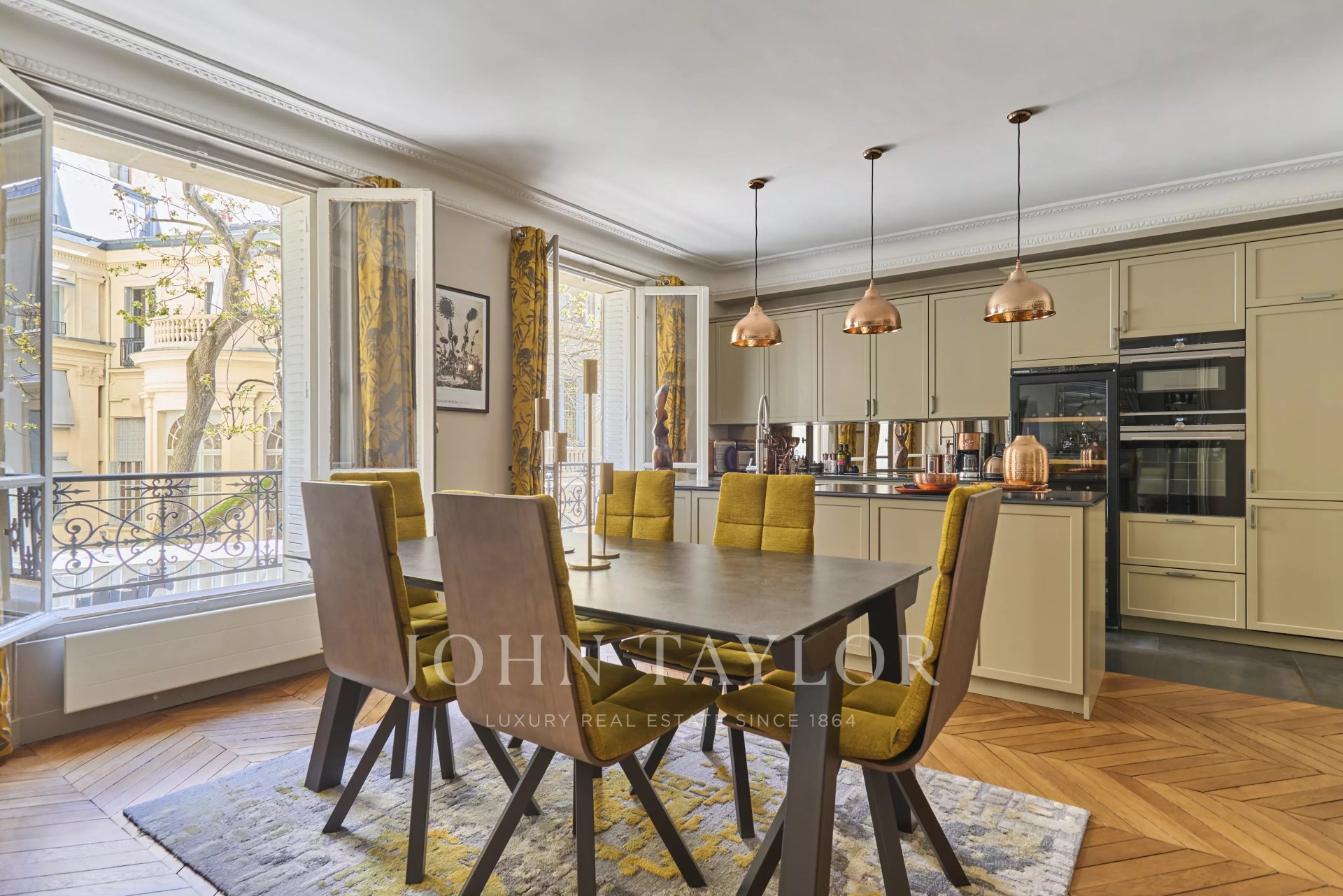 Located in the prestigious Chaillot district of Paris 16ème, this refined 152.4 m² apartment offers generous living spaces and classic Parisian charm. The residence comprises four spacious bedrooms and five rooms, making it ideal for families or those in need of extra space. Beautiful original features such as herringbone parquet flooring and a decorative fireplace add a sense of warmth and sophistication to the living area.The inviting open-plan living and dining area is bathed in natural light, thanks to large windows overlooking charming Parisian architecture. The fully-equipped modern kitchen seamlessly integrates with the dining space, creating a welcoming environment for both entertaining and daily life. Elegant details, such as contemporary lighting and stylish furnishings, provide a perfect balance between classic and modern aesthetics.Enjoy the tranquil views of the tree-lined street and the architectural beauty that surrounds the property. With its prime location, this apartment grants easy access to Paris’s finest shops, restaurants, and cultural attractions. Experience luxury, comfort, and timeless elegance in one of Paris’ most sought-after neighborhoods.