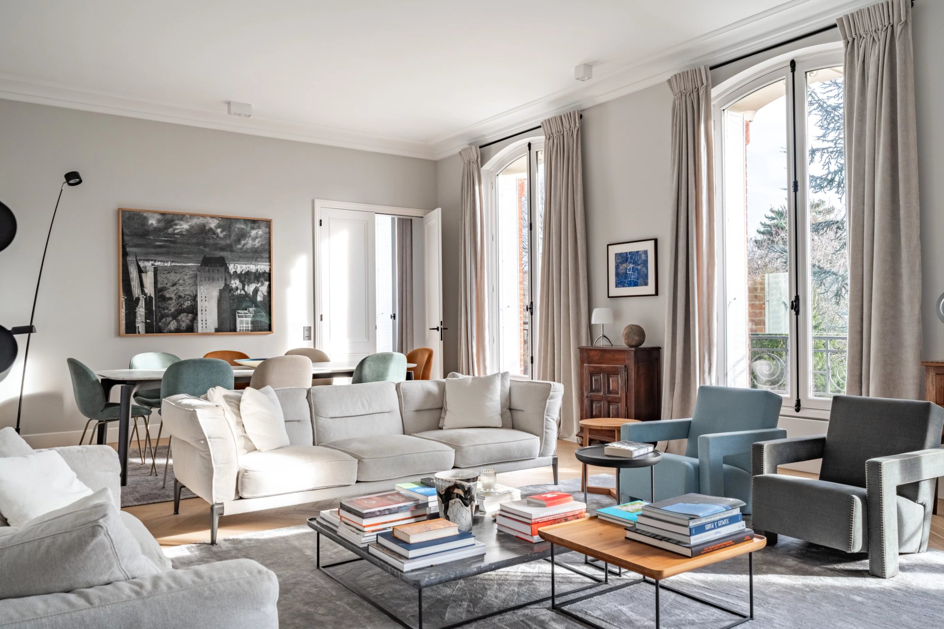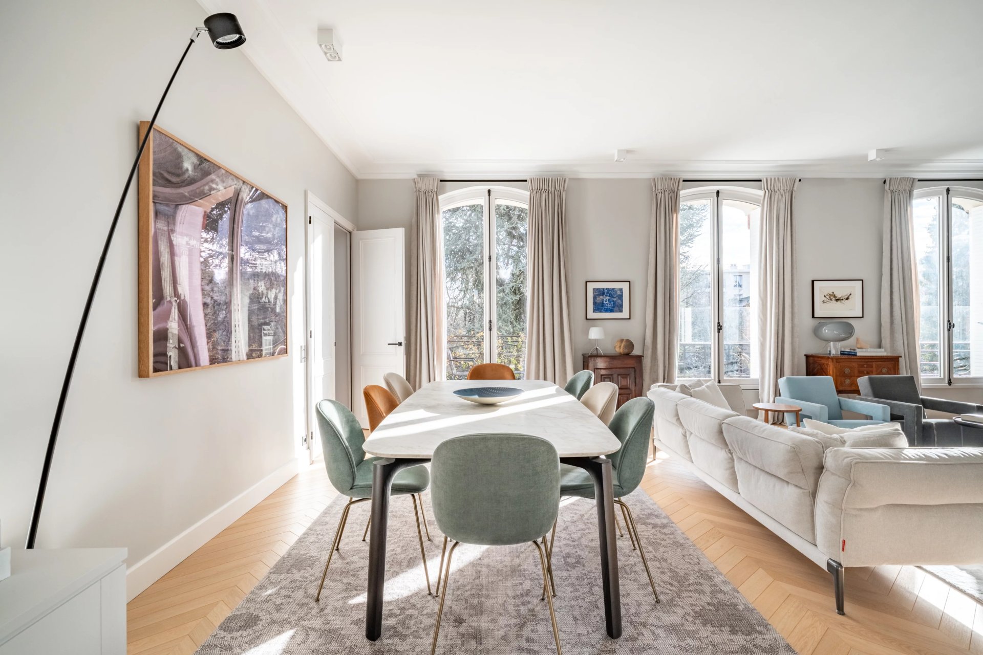 Boulevard Inkermann. This exceptional 410 sqm triplex apartment with the feel of a private house is on the top floors of a luxurious 1930s co-ownership.