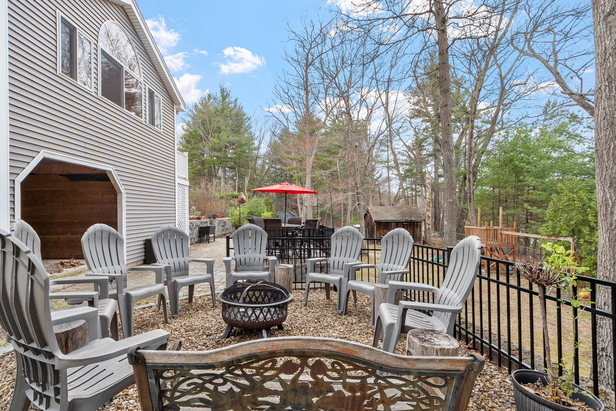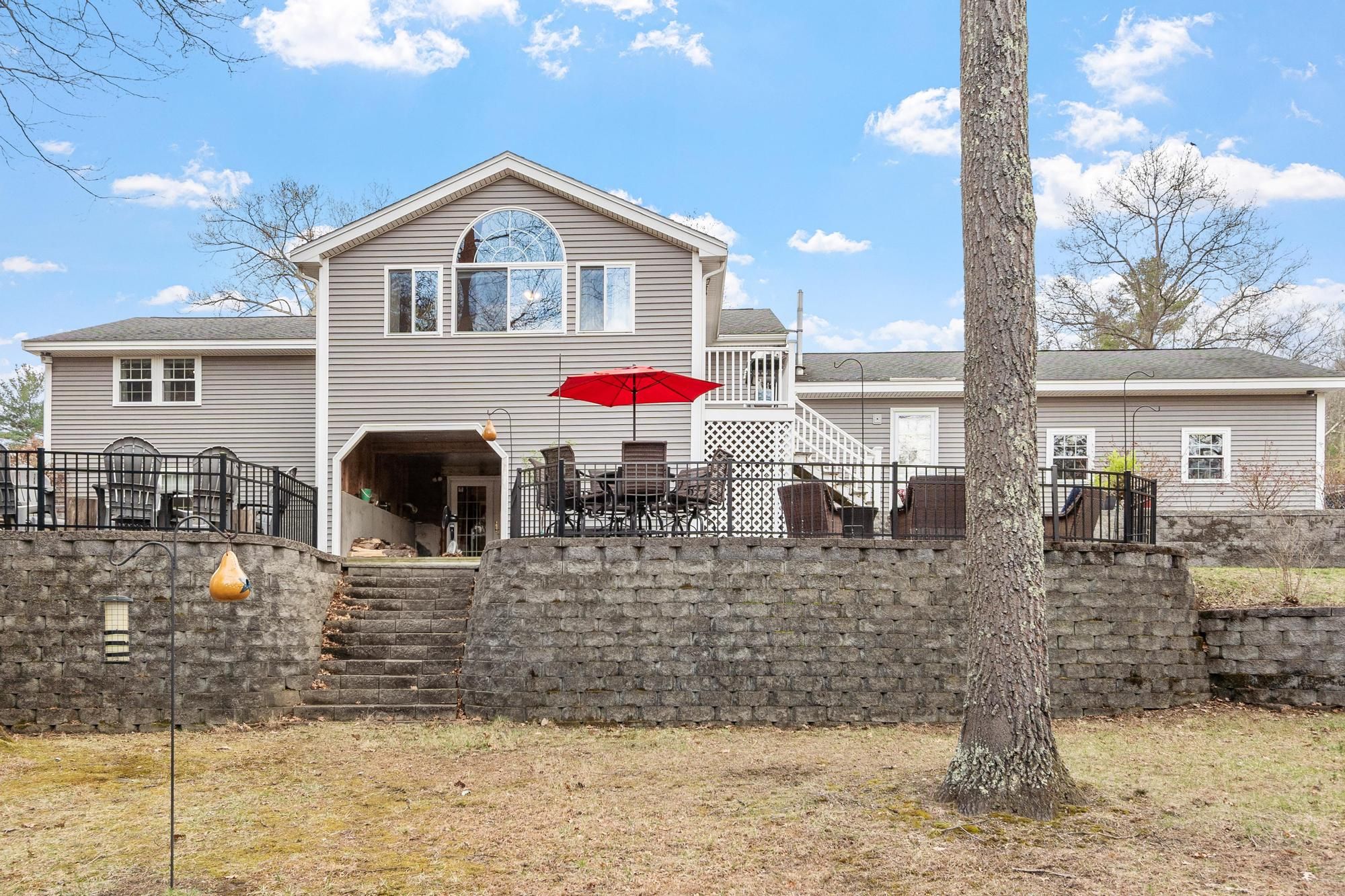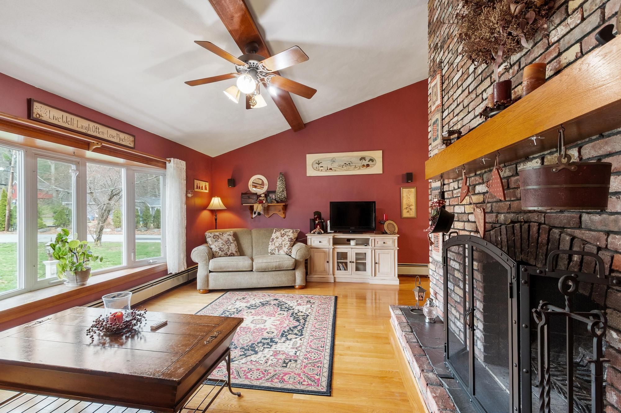 Nicely maintained home on a large lot in a peaceful neighborhood in desirable Tewksbury. Large open living areas: Inviting living room with fireplace. The stunning sunroom has radiant heat and soaring ceilings. Terrific family room with fireplaces on two sides and exterior access leads to an enclosed storage room and covered storage area. Deck and extraordinary patio with multiple areas for entertaining overlooking a spacious, grassy and wooded backyard. Beautiful primary bedroom with bath and three (!) closets. Cozy country kitchen with stainless steel appliances, island and charcoal grill! Spacious two car garage with storage and work area. There is a shed at the back of the lot for more storage and the play gym stays. Easy access to highways for commuters and plenty of shopping nearby.