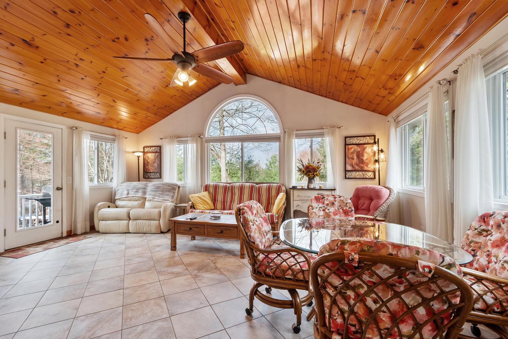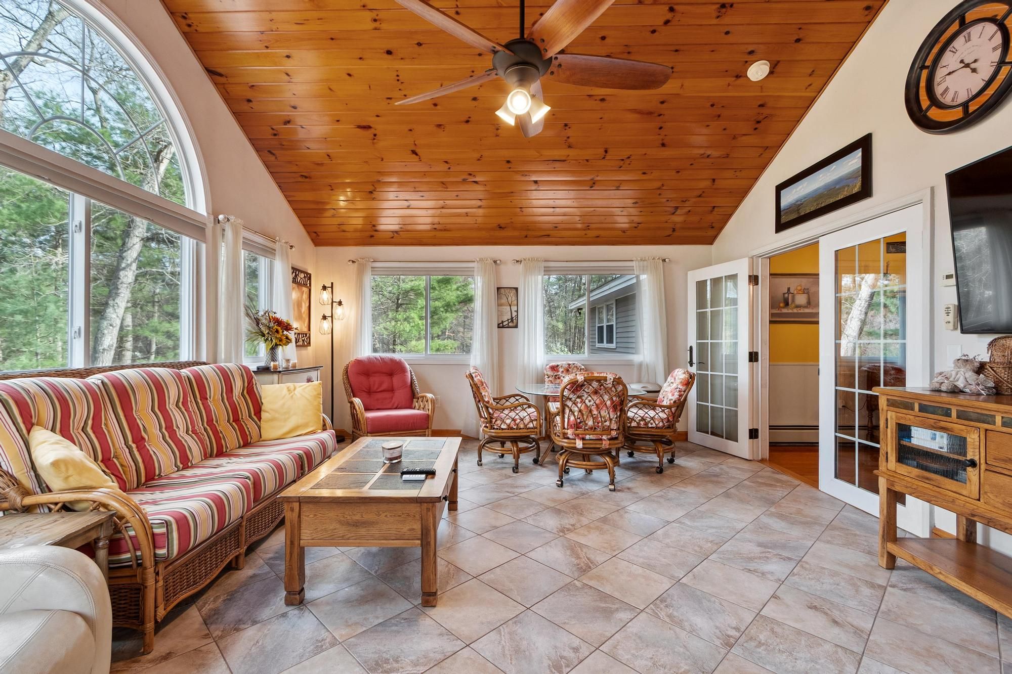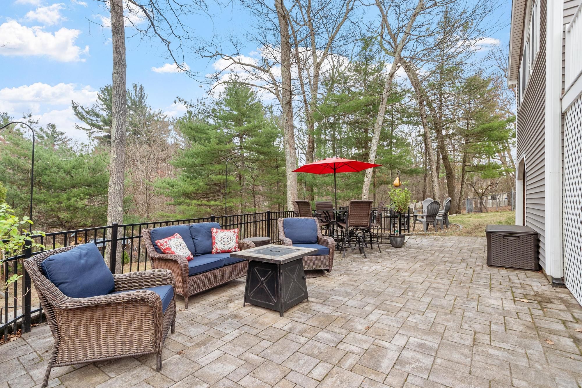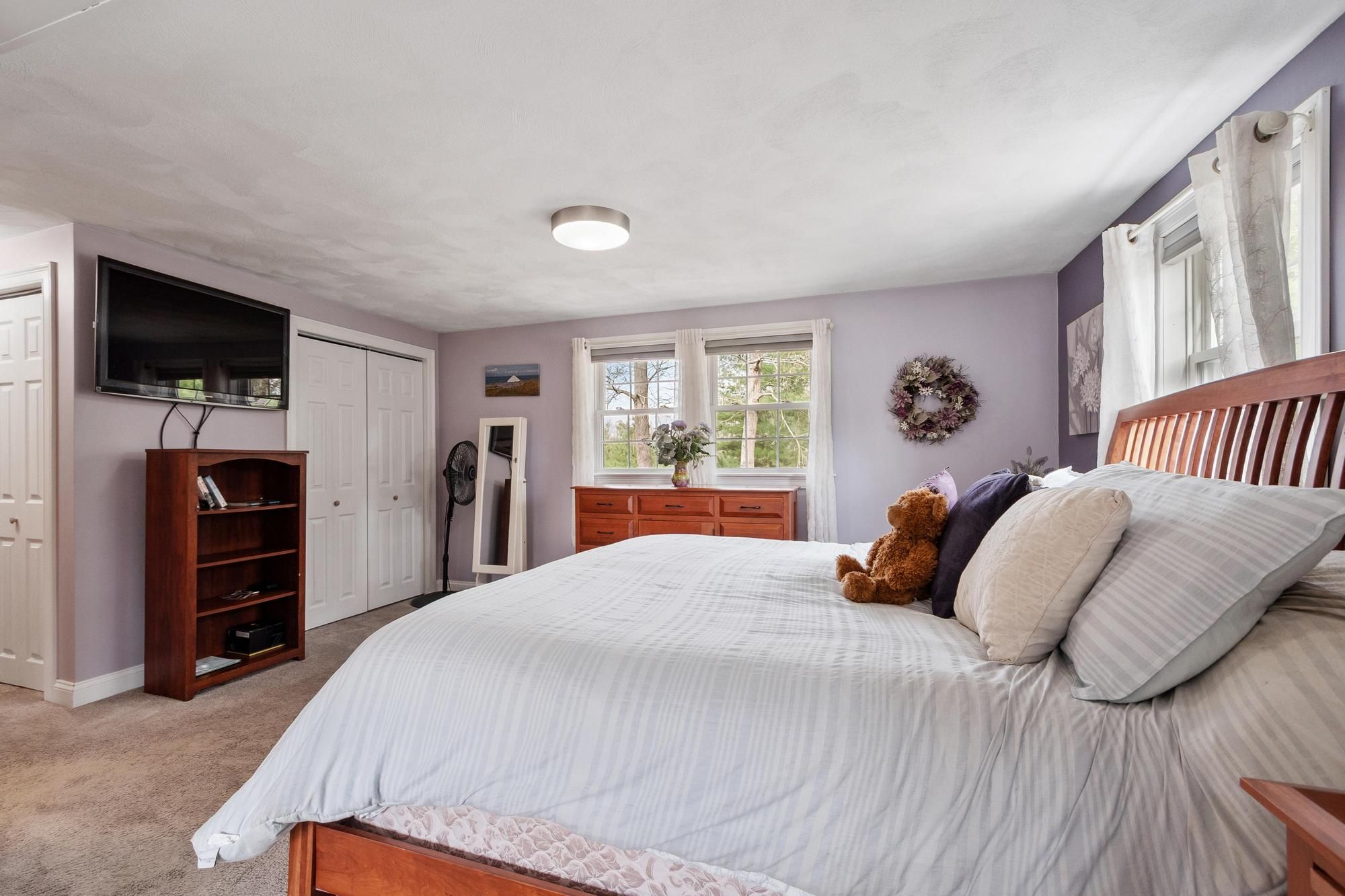 Nicely maintained home on a large lot in a peaceful neighborhood in desirable Tewksbury. Large open living areas: Inviting living room with fireplace. The stunning sunroom has radiant heat and soaring ceilings. Terrific family room with fireplaces on two sides and exterior access leads to an enclosed storage room and covered storage area. Deck and extraordinary patio with multiple areas for entertaining overlooking a spacious, grassy and wooded backyard. Beautiful primary bedroom with bath and three (!) closets. Cozy country kitchen with stainless steel appliances, island and charcoal grill! Spacious two car garage with storage and work area. There is a shed at the back of the lot for more storage and the play gym stays. Easy access to highways for commuters and plenty of shopping nearby.