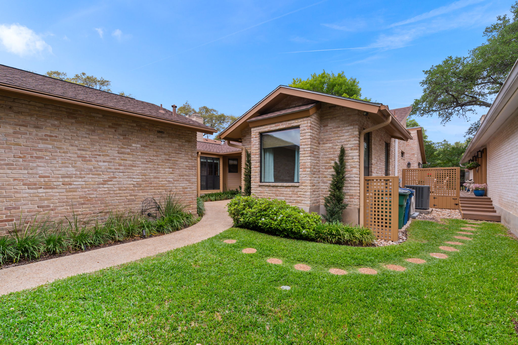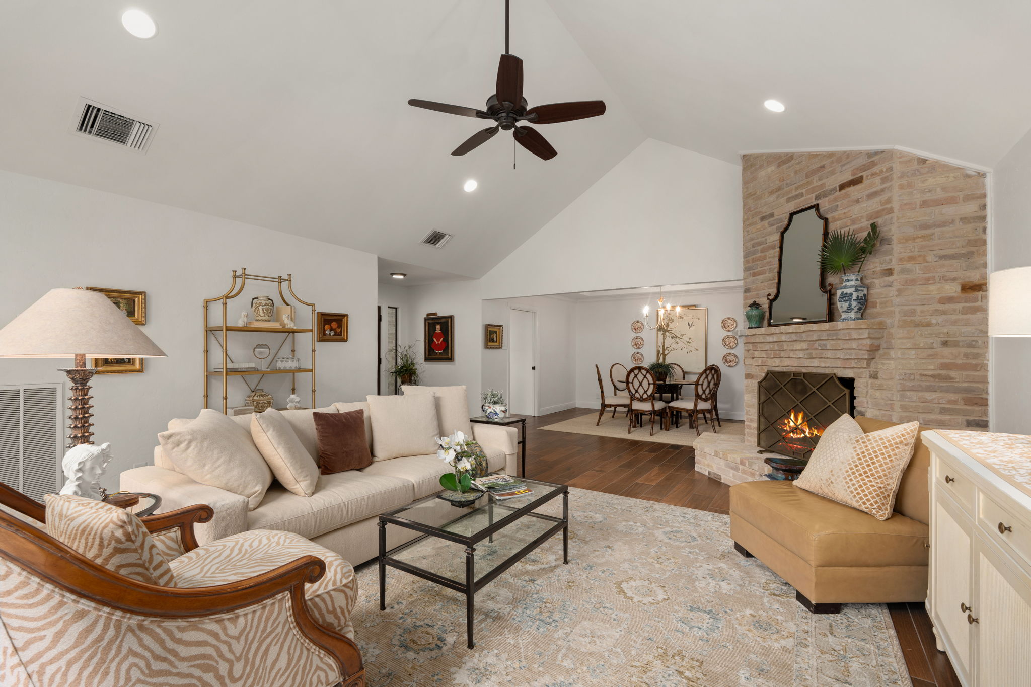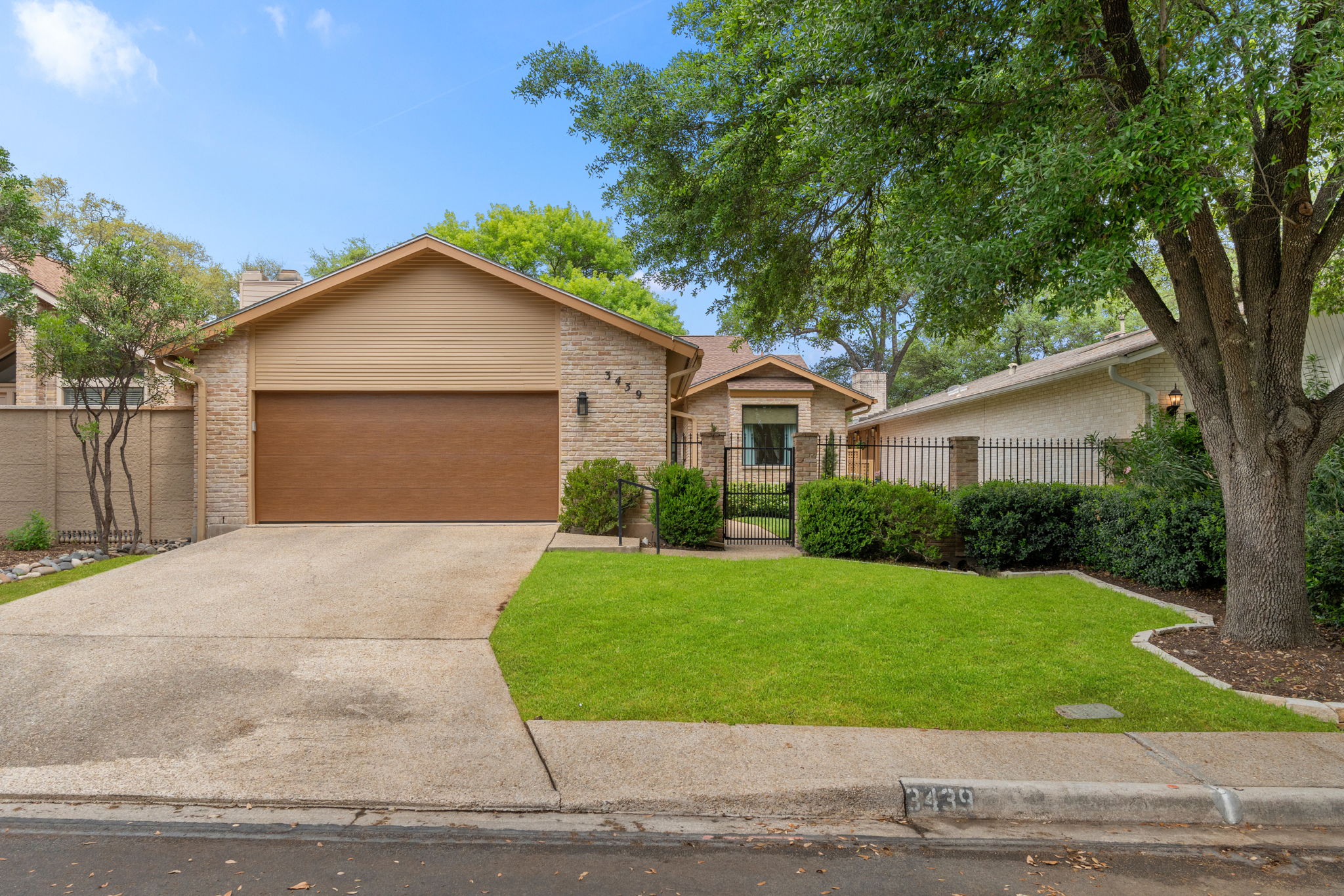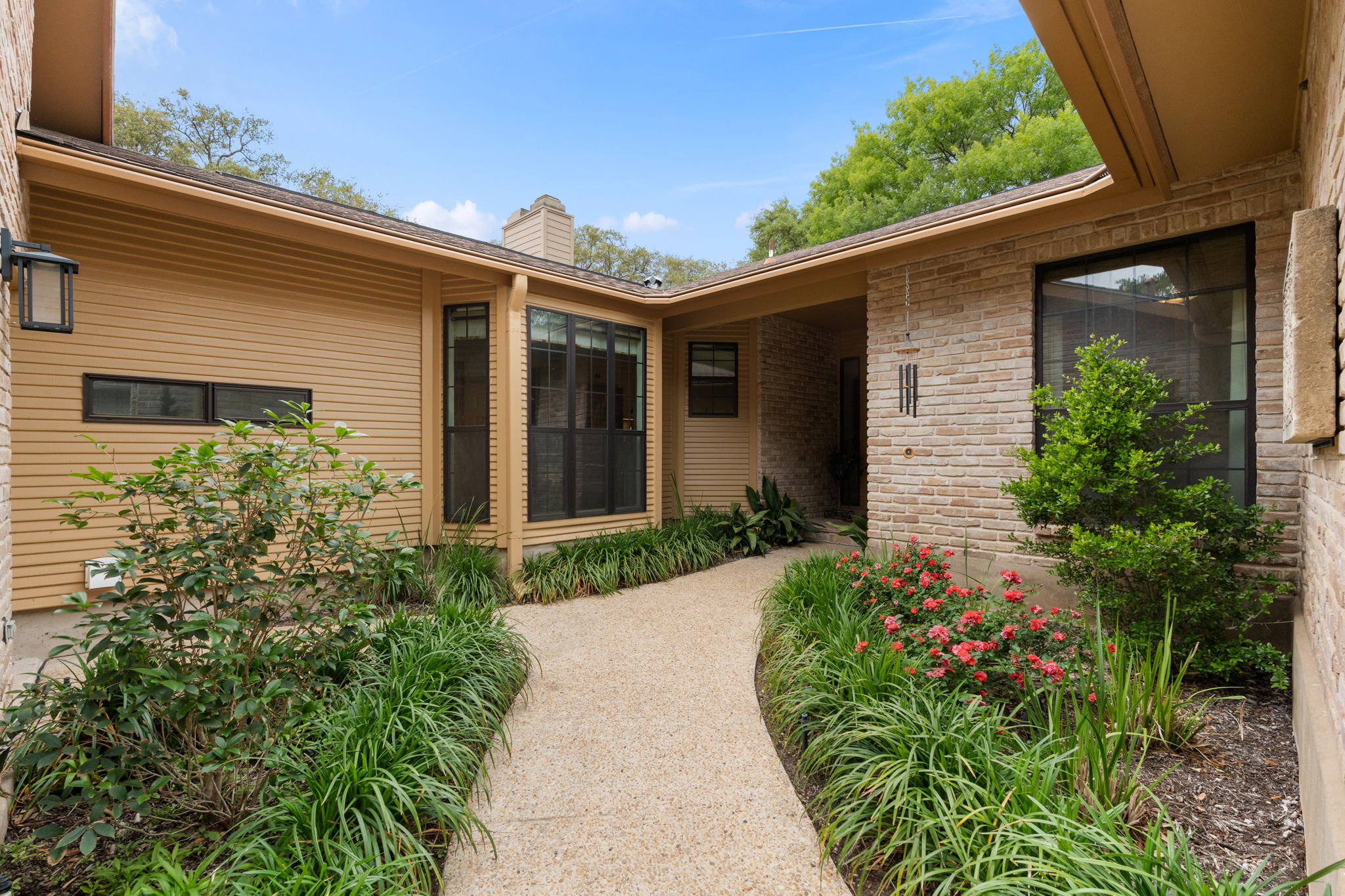 The JEWEL of Hunters Creek - this beautifully updated one-story home blends timeless charm with extensive modern upgrades. A picturesque courtyard entrance and lush landscaping create a warm welcome, while inside, vaulted ceilings enhance the light-filled interior-a desirable feature for a garden home. The inviting family room with vaulted ceiling centers around a stunning brick fireplace features double French doors that open to the deck enhanced with custom Shading Texas shades for the French doors creating seamless indoor-outdoor living. The kitchen is thoughtfully redesigned with custom cabinetry, granite, upgraded appliances, an induction cooktop, and convenient drawer storage throughout. Ceramic tile flooring extends throughout the home along with replaced baseboards and door trim for a crisp, modern finish. The spacious primary suite offers a true retreat with its own double French doors leading outside, along with a fully remodeled bath complete with a soaking tub, oversized walk-in shower, dual closets, quartz countertops, and a versatile flex space perfect for a sitting area, exercise room, office, or additional storage. Secondary bedrooms are spacious and equally light filled with guest remodeled guest bath adorned with storage and Taj Mahal countertops. Outdoor living is equally impressive with a spacious lushly landscaped backyard, Trex deck, cedar fencing, and beautifully stained cedar latticework with lighting. Significant mechanical and efficiency upgrades include, Foam insulation (2025), the climate-controlled two-car garage, insulated garage door, all ductwork replaced (2025) with UV air purification added to HVAC, dedicated water heater for the primary bath, automated shades. This is a rare opportunity to own a meticulously upgraded, move-in ready gem in highly sought-after Hunters Creek.