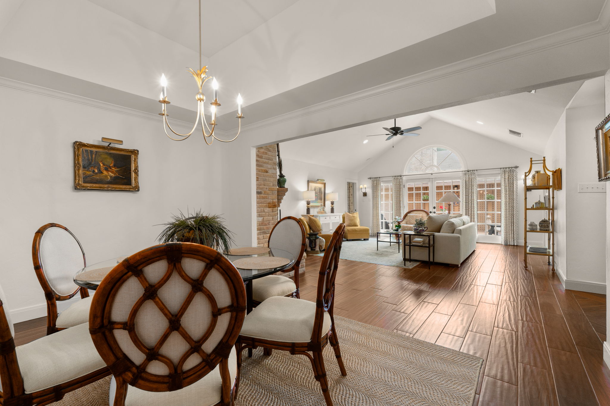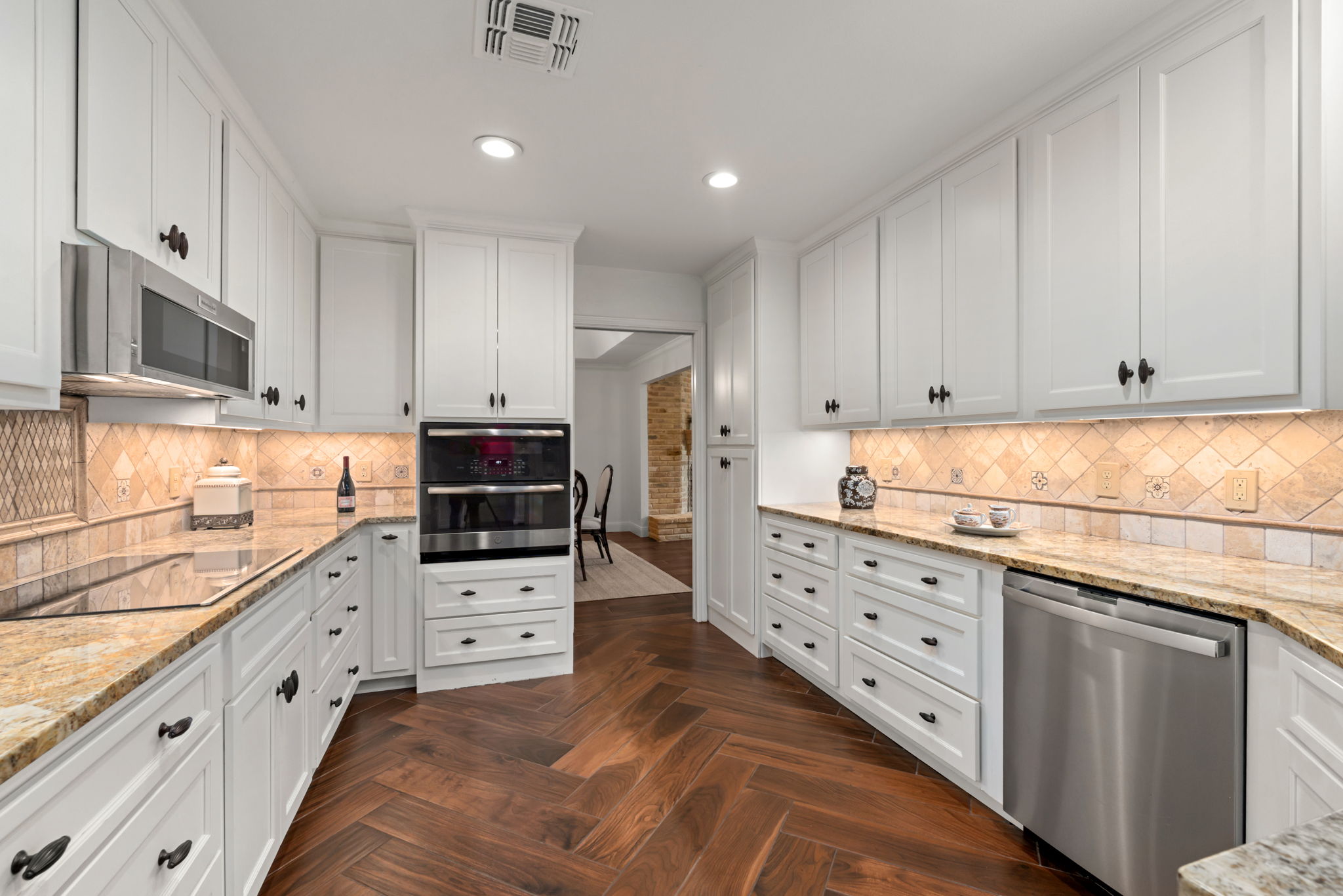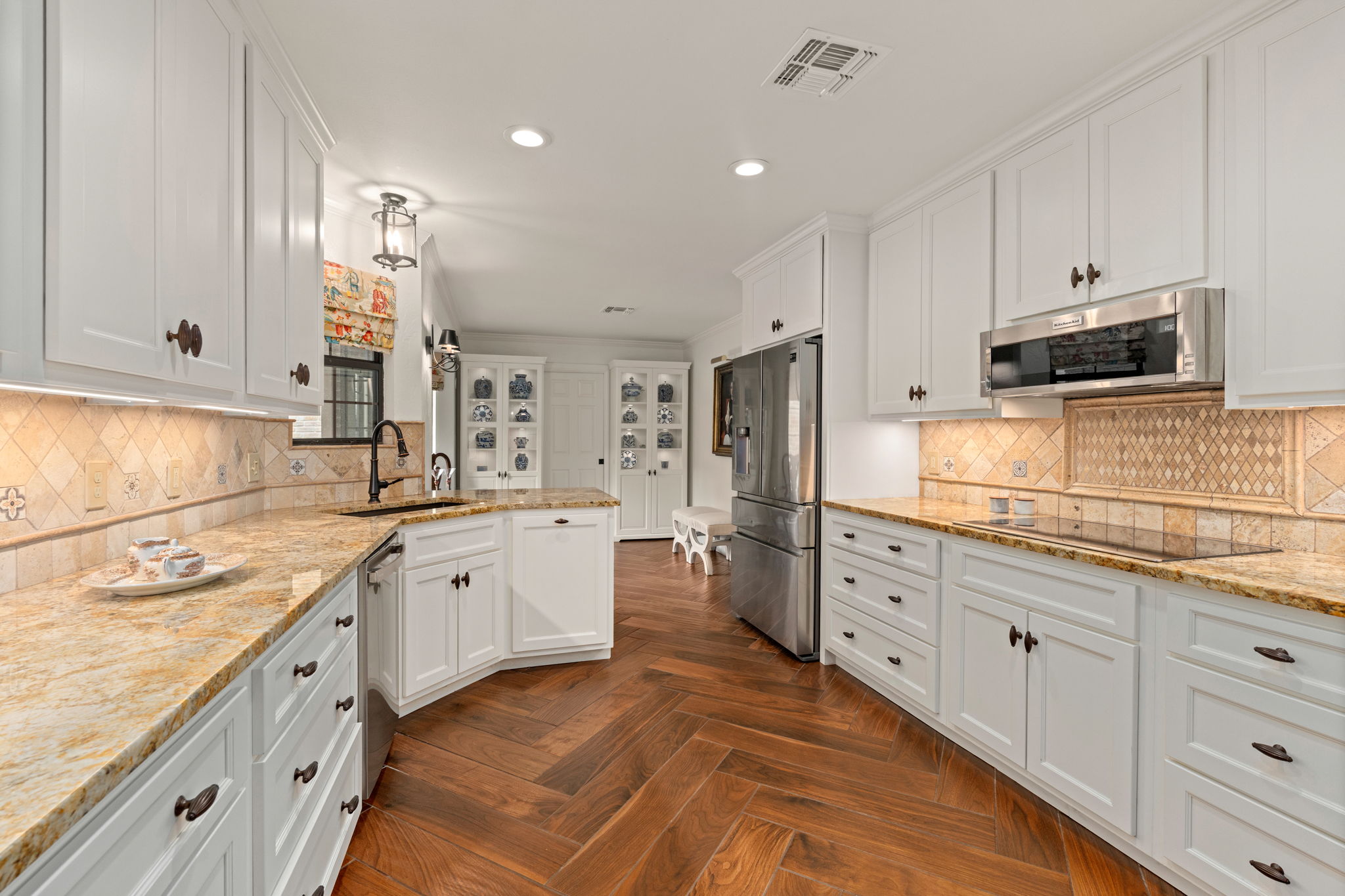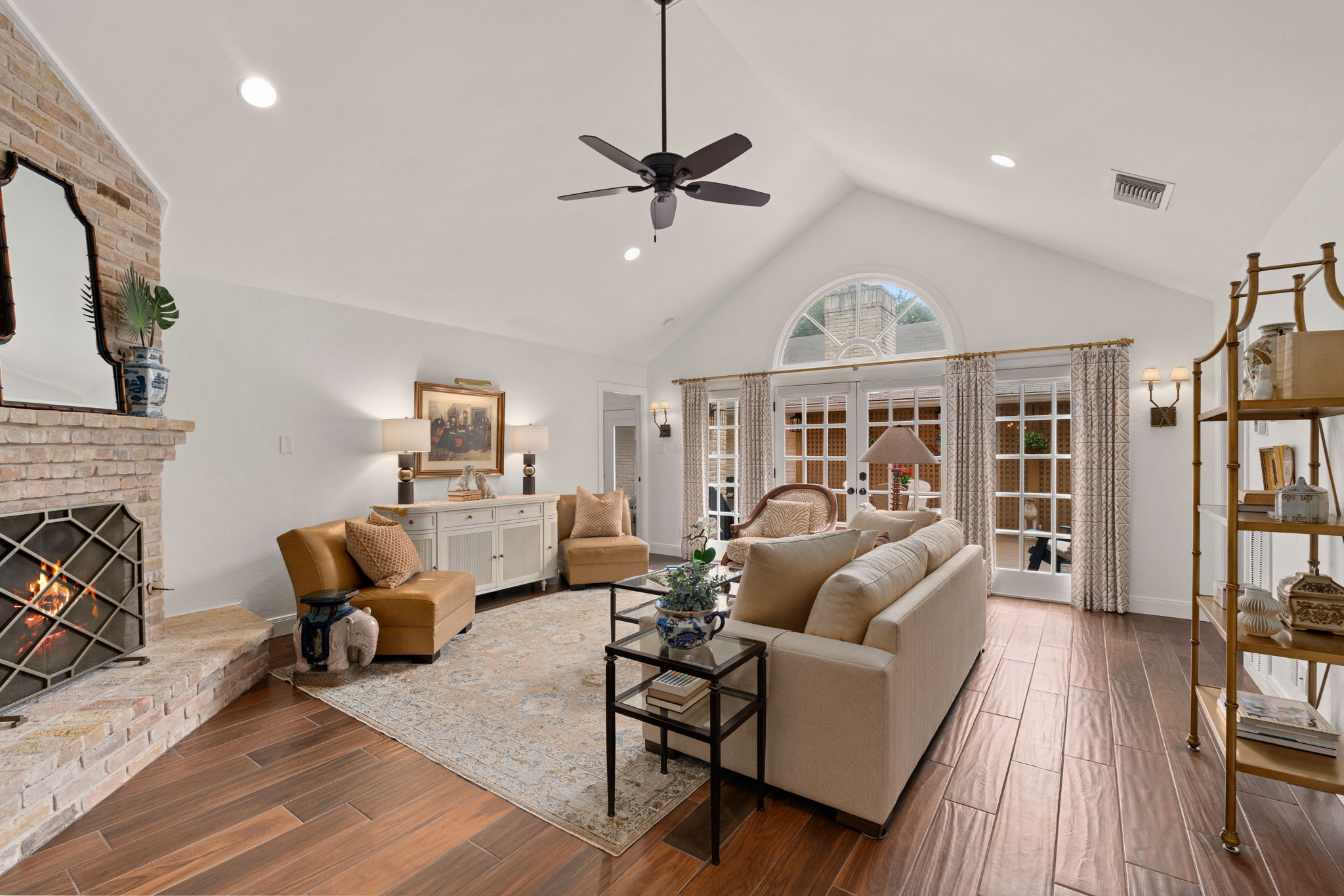 The JEWEL of Hunters Creek - this beautifully updated one-story home blends timeless charm with extensive modern upgrades. A picturesque courtyard entrance and lush landscaping create a warm welcome, while inside, vaulted ceilings enhance the light-filled interior-a desirable feature for a garden home. The inviting family room with vaulted ceiling centers around a stunning brick fireplace features double French doors that open to the deck enhanced with custom Shading Texas shades for the French doors creating seamless indoor-outdoor living. The kitchen is thoughtfully redesigned with custom cabinetry, granite, upgraded appliances, an induction cooktop, and convenient drawer storage throughout. Ceramic tile flooring extends throughout the home along with replaced baseboards and door trim for a crisp, modern finish. The spacious primary suite offers a true retreat with its own double French doors leading outside, along with a fully remodeled bath complete with a soaking tub, oversized walk-in shower, dual closets, quartz countertops, and a versatile flex space perfect for a sitting area, exercise room, office, or additional storage. Secondary bedrooms are spacious and equally light filled with guest remodeled guest bath adorned with storage and Taj Mahal countertops. Outdoor living is equally impressive with a spacious lushly landscaped backyard, Trex deck, cedar fencing, and beautifully stained cedar latticework with lighting. Significant mechanical and efficiency upgrades include, Foam insulation (2025), the climate-controlled two-car garage, insulated garage door, all ductwork replaced (2025) with UV air purification added to HVAC, dedicated water heater for the primary bath, automated shades. This is a rare opportunity to own a meticulously upgraded, move-in ready gem in highly sought-after Hunters Creek.