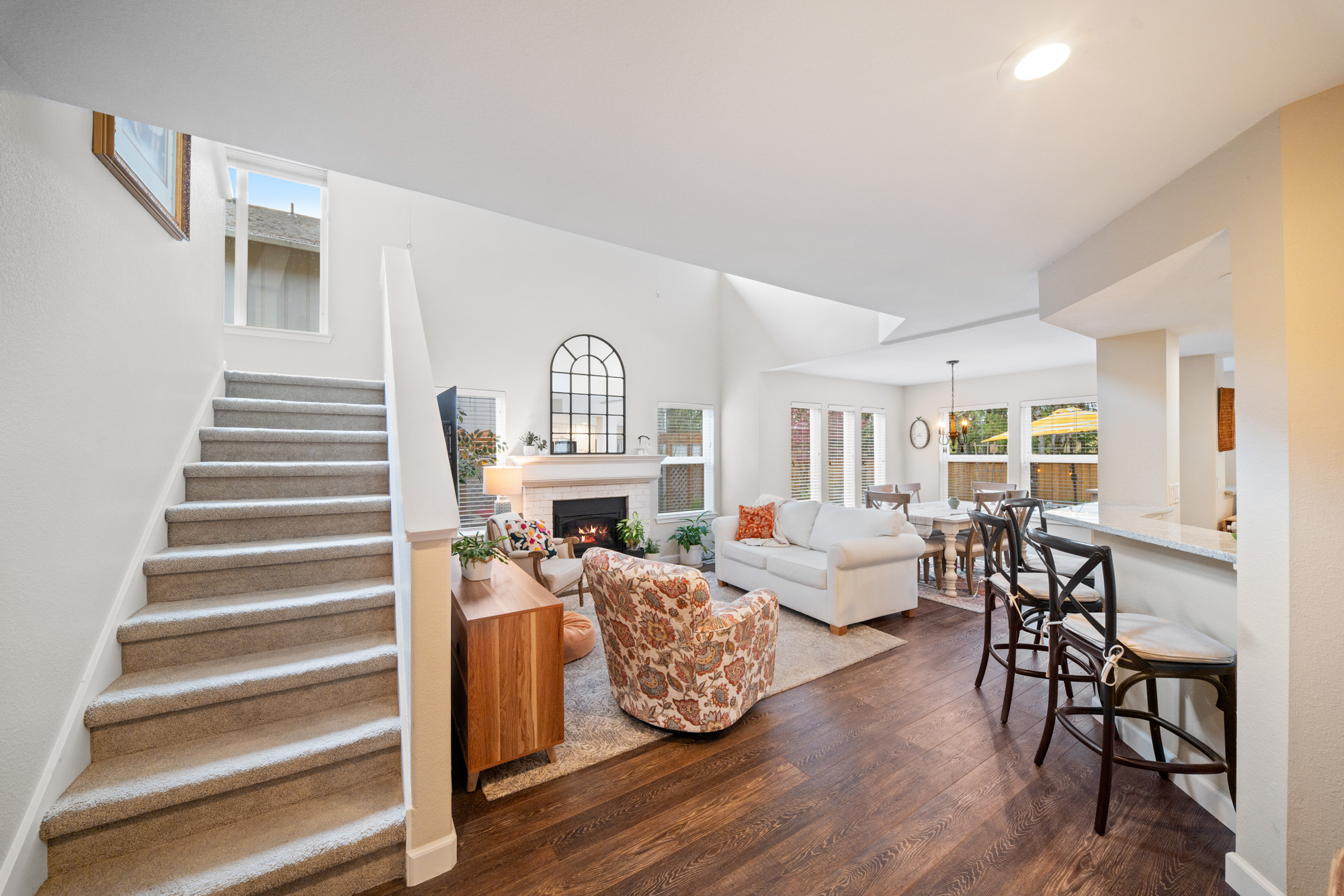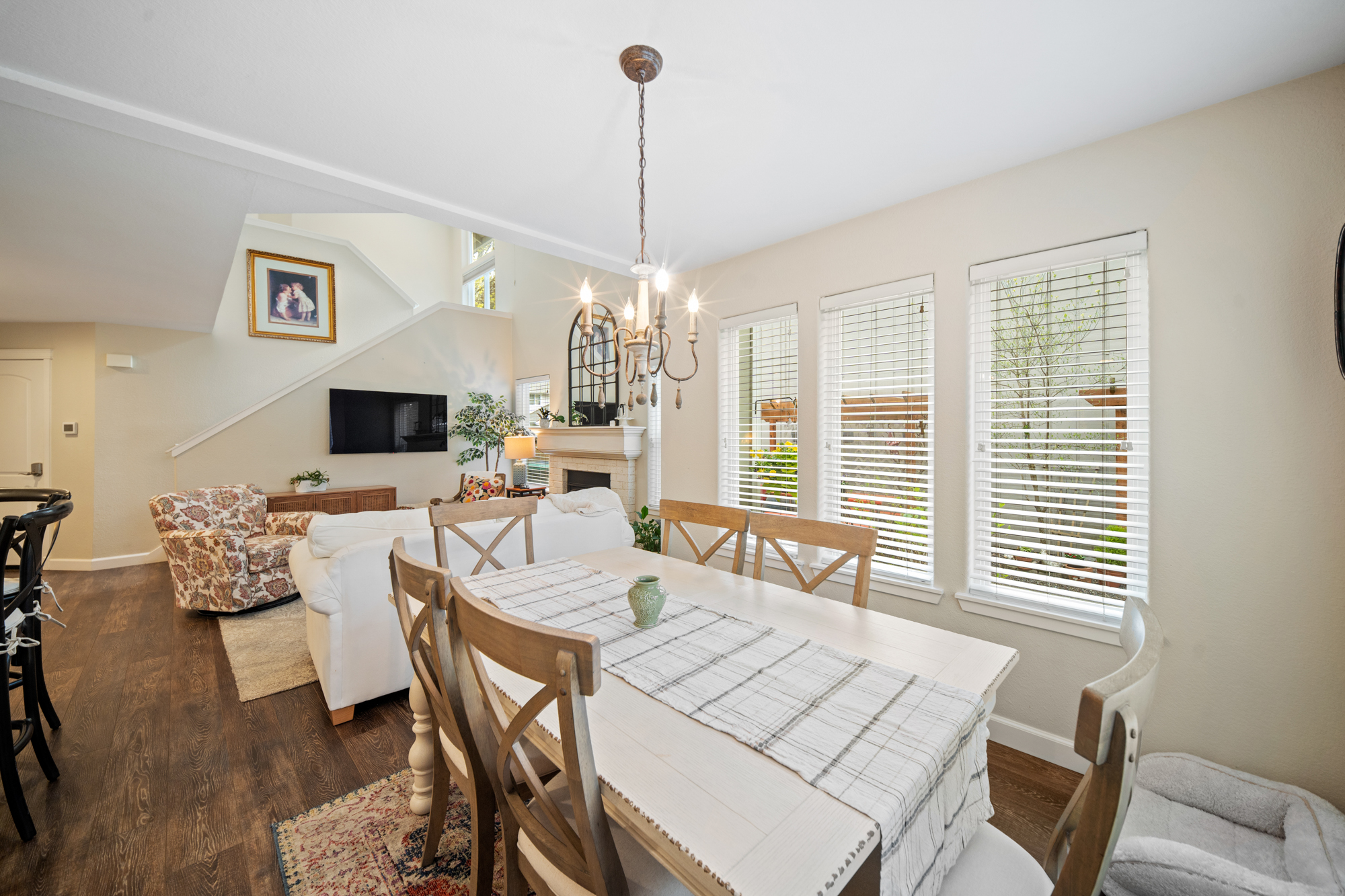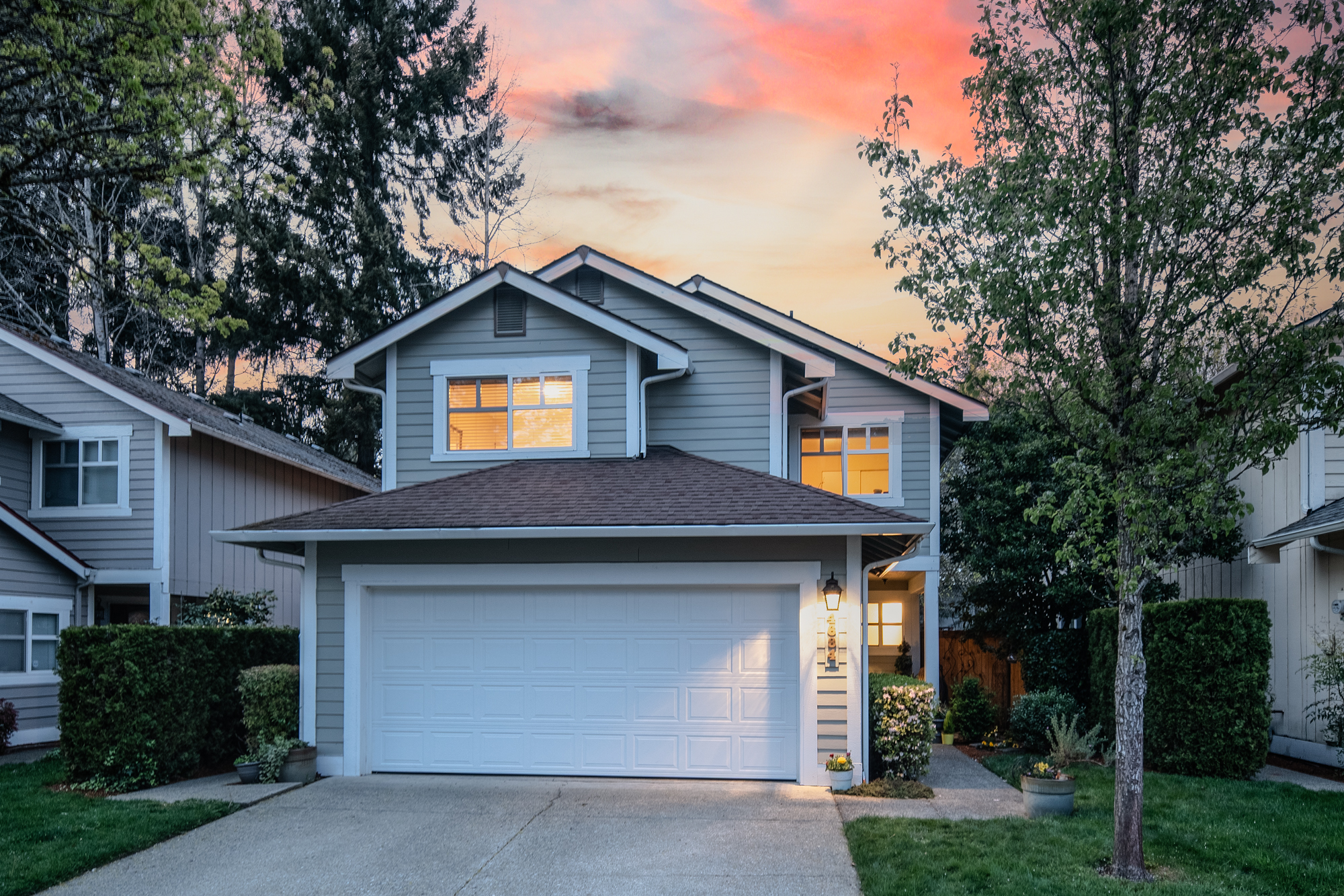 Tucked within the sought-after Beckonridge community, this thoughtfully designed 3-bedroom, 2.5-bathroom residence blends timeless style with effortless Northwest living. Bathed in natural light, the home offers an open and welcoming layout that feels both refined and comfortably spacious. Dark laminate flooring extends throughout the main level, complemented by crown molding and solid core doors that enhance craftsmanship while providing added privacy and quiet. A natural gas fireplace, installed in 2023, creates a warm focal point in the living area, while the seamless connection between kitchen, dining, and living spaces lends itself beautifully to both everyday living and entertaining. Upstairs, plush carpeting adds comfort underfoot, and the functional floor plan features a conveniently located laundry room along with two full bathrooms, while a powder room serves the main level. The backyard offers mature landscaping, raised garden beds, and a newly installed fence in 2024, creating a private outdoor retreat with minimal upkeep. HOA-maintained front landscaping and snow removal further support an easy-care lifestyle. Set back from main roads, Beckonridge offers a peaceful neighborhood atmosphere just moments from parks, golf courses, shopping, dining, fitness studios, and the Chehalis Western Trail.