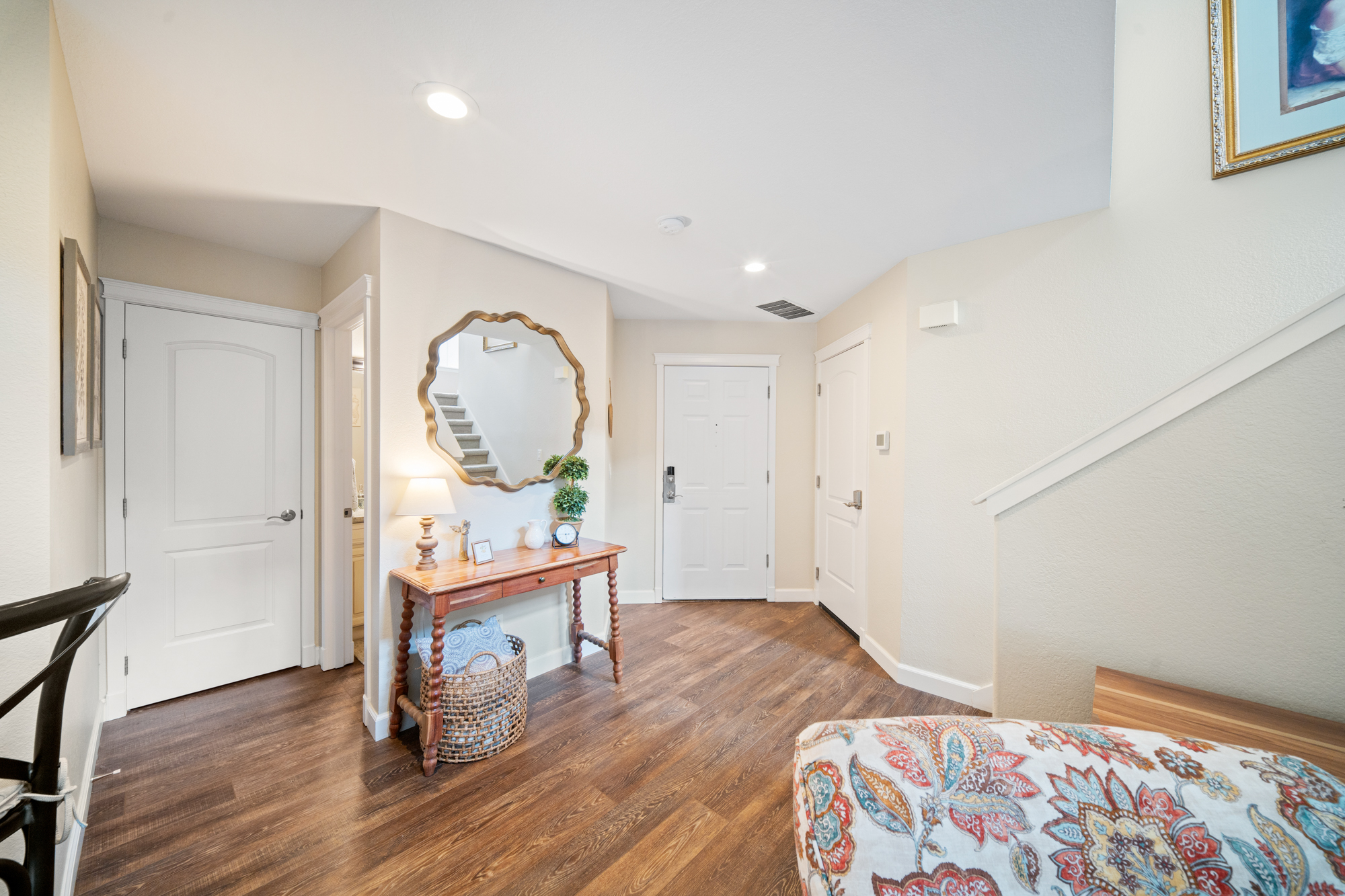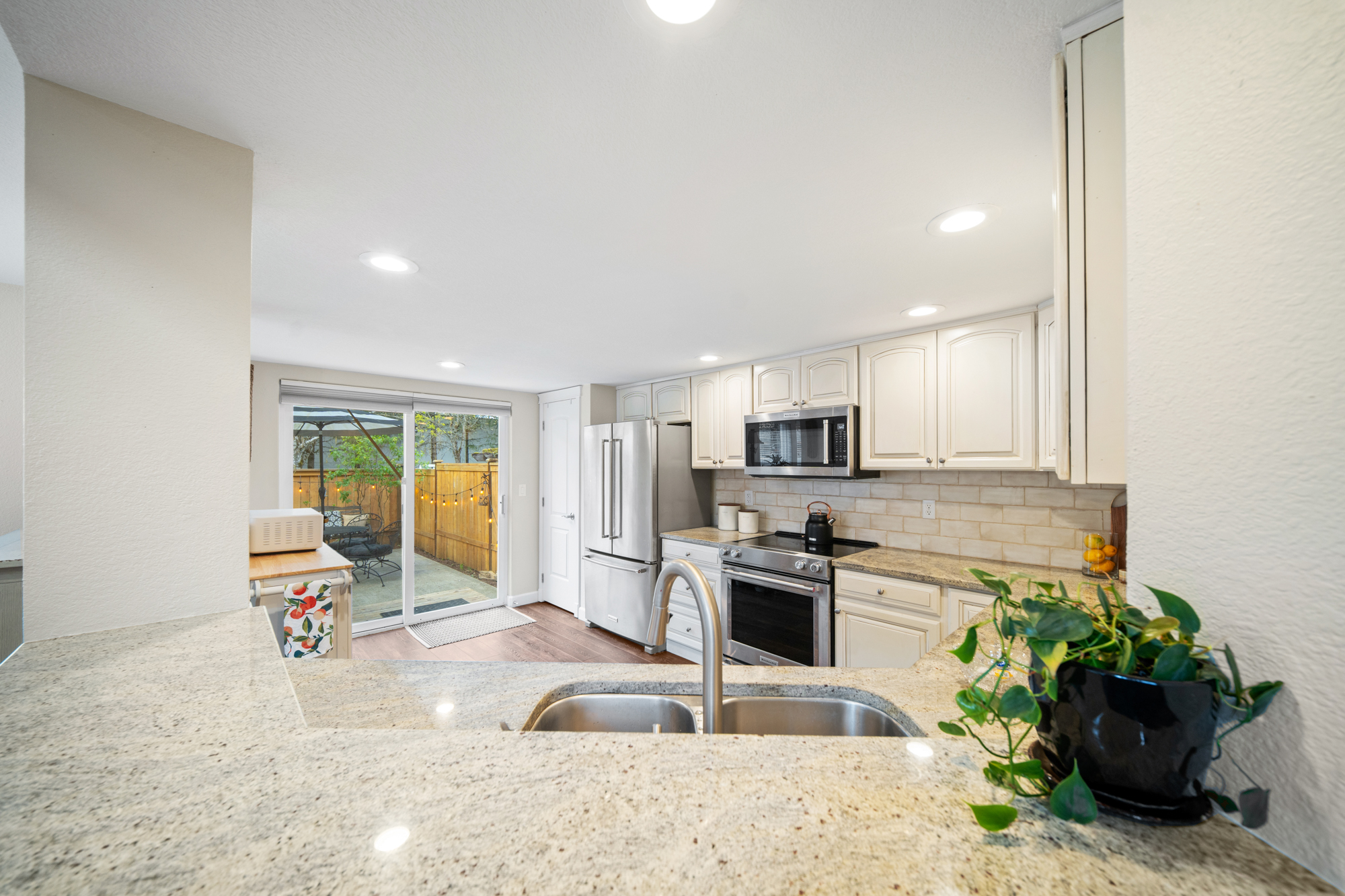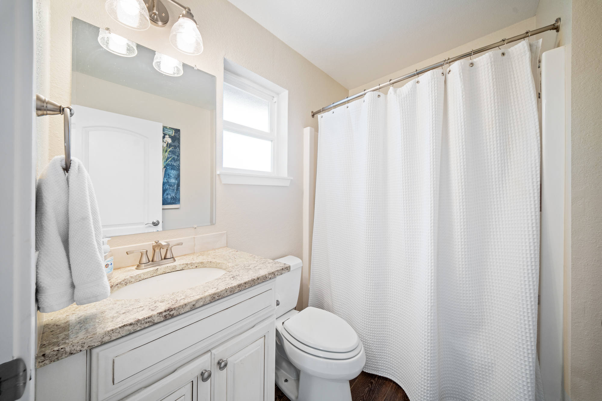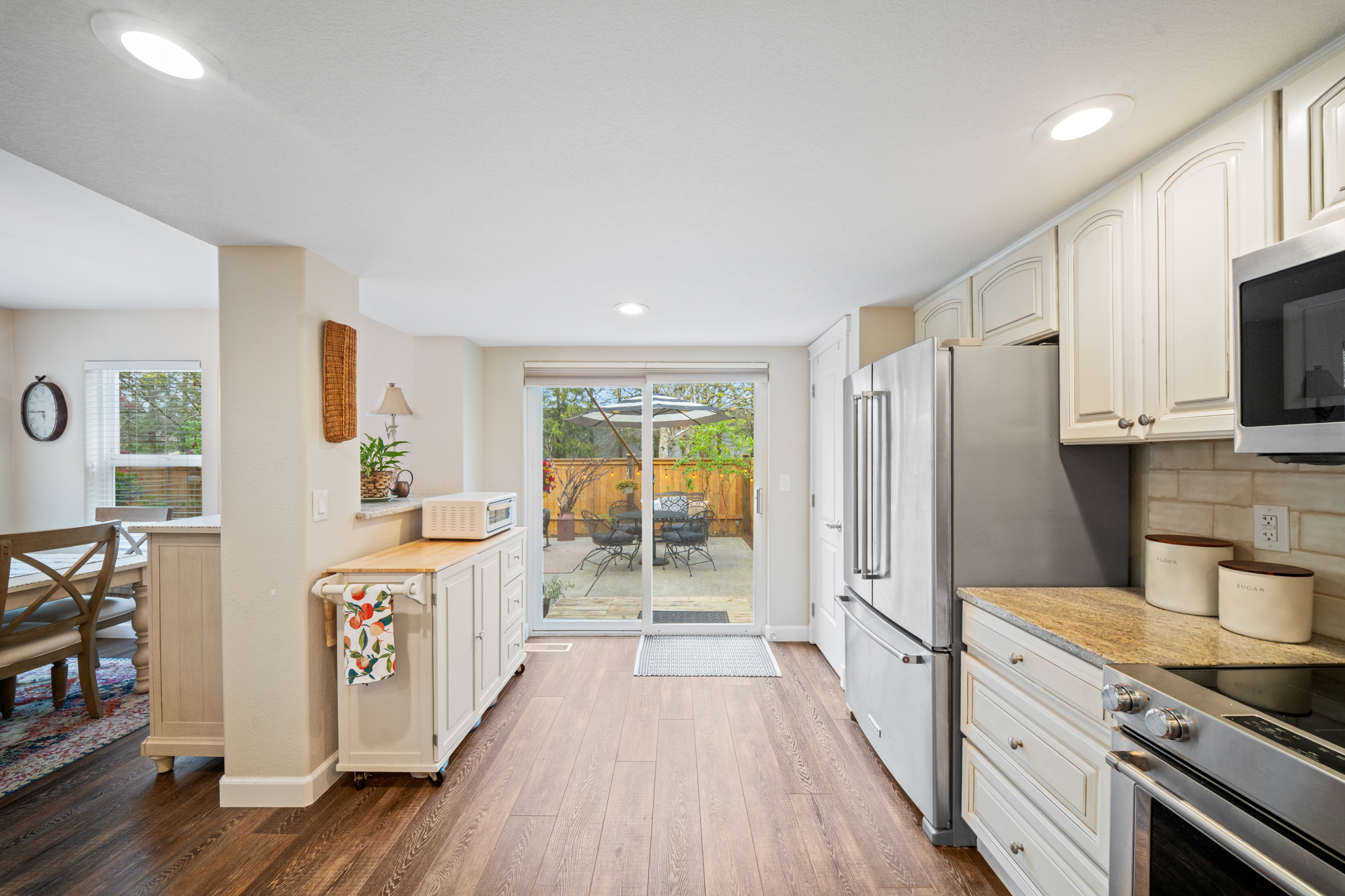Tucked within the sought-after Beckonridge community, this thoughtfully designed 3-bedroom, 2.5-bathroom residence blends timeless style with effortless Northwest living. Bathed in natural light, the home offers an open and welcoming layout that feels both refined and comfortably spacious. Dark laminate flooring extends throughout the main level, complemented by crown molding and solid core doors that enhance craftsmanship while providing added privacy and quiet. A natural gas fireplace, installed in 2023, creates a warm focal point in the living area, while the seamless connection between kitchen, dining, and living spaces lends itself beautifully to both everyday living and entertaining. Upstairs, plush carpeting adds comfort underfoot, and the functional floor plan features a conveniently located laundry room along with two full bathrooms, while a powder room serves the main level. The backyard offers mature landscaping, raised garden beds, and a newly installed fence in 2024, creating a private outdoor retreat with minimal upkeep. HOA-maintained front landscaping and snow removal further support an easy-care lifestyle. Set back from main roads, Beckonridge offers a peaceful neighborhood atmosphere just moments from parks, golf courses, shopping, dining, fitness studios, and the Chehalis Western Trail.