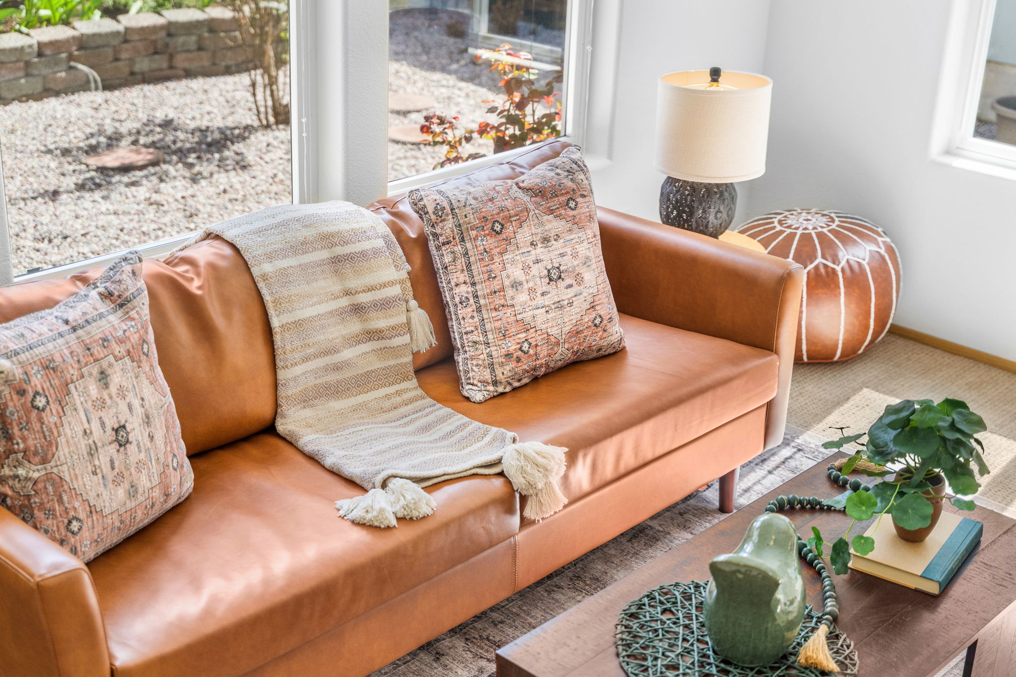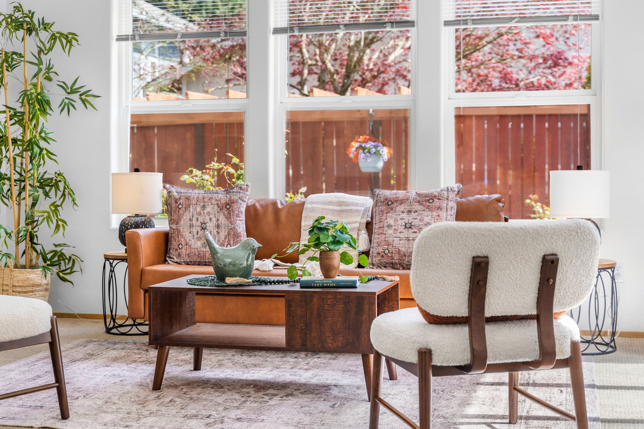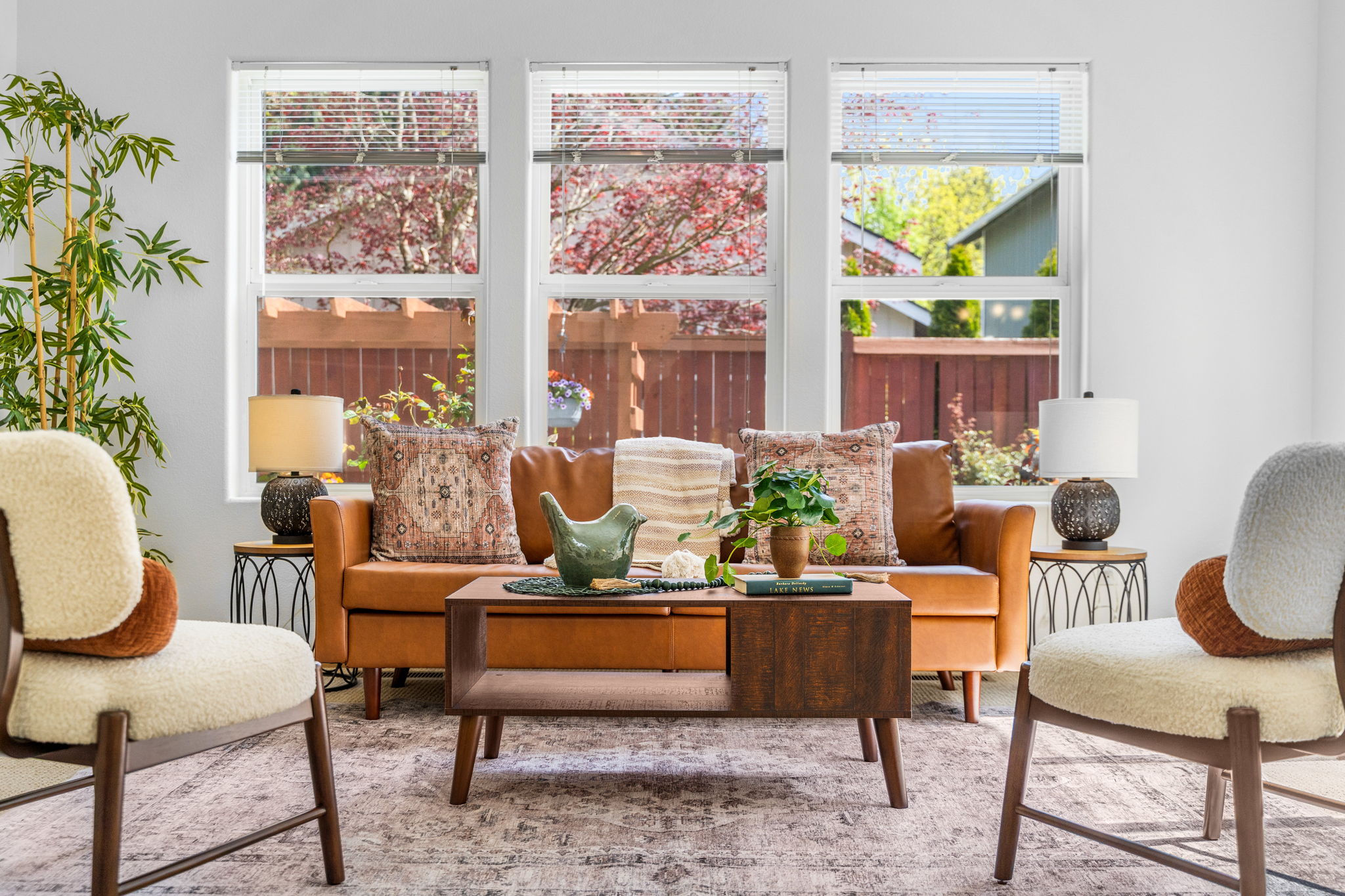Sophisticated one-story, thoughtfully designed with an open-concept layout and minimal upkeep. Bathed in natural light, showcasing expansive windows, vaulted ceilings, skylights, and a sliding glass door that invite the outdoors in while creating a warm, breathable ambiance. Enjoy peace of mind with a newly installed roof in 2024. The inviting gas fireplace serves as a stunning focal point, complemented by exposed shelving throughout that adds both charm and functionality. Enjoy year-round comfort with air conditioning and embrace low-maintenance living with a personalized outdoor living space. HOA contributes to front yard maintenance. Ideally situated just minutes from the community park, neighborhood park, eateries, Chehalis Western trail and golf.