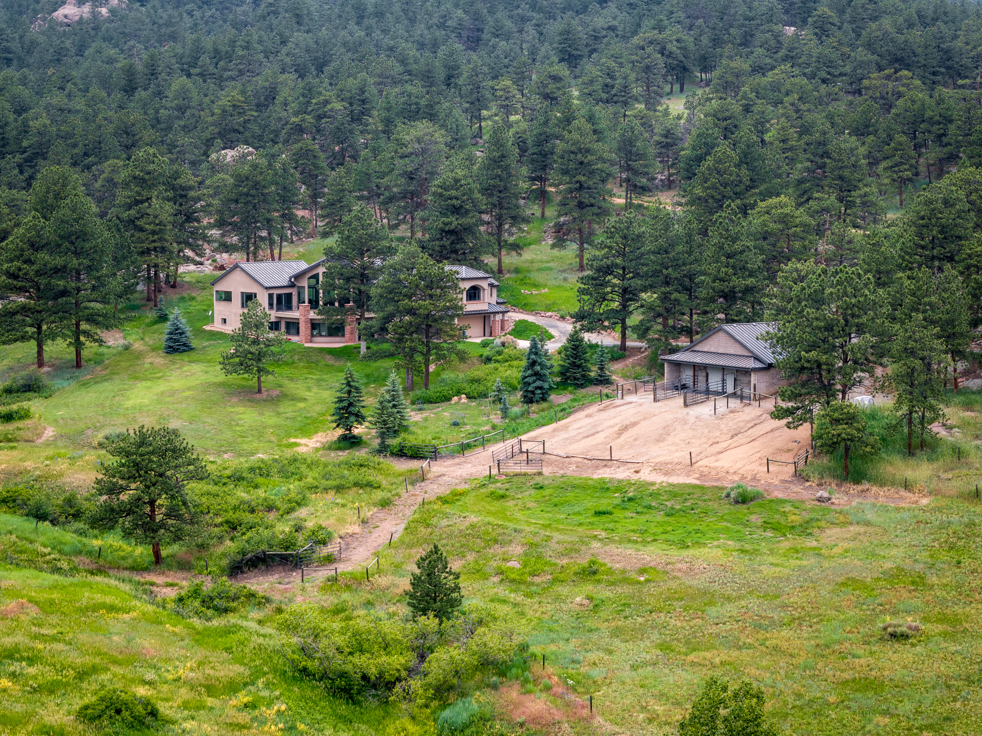 Welcome to Rowell Ranch--- the kind of Colorado place a person settles into and doesn't feel the need to leave. Clean mountain air, wide-open views, rolling meadows, and solid rock outcroppings that remind you you're in real country. It's quiet, private, and honest land - the kind that lets you slow down and breathe a little deeper. The home is built for comfort without fuss. Thoughtfully designed, easy to maintain, and well-suited for year-round living, with features such as an elevator that make it just as practical in the future as it is today. Big views and a strong connection to the outdoors make it feel like a true mountain retreat. If you've got horses, you'll appreciate what this place offers. Ride straight out your gate - no trailer, no hassle. The 36 acres give you a mix of forest and open pasture, with access to miles of scenic roads, nearby National Forest trails, and the historic Estes Park Stage Road. There's a 3-stall barn with tack room, over 10 acres of pasture, and two natural springs - everything you need to keep your horses well. Set at a comfortable foothills elevation, you'll get cooler summers and milder winters, making riding possible most of the year. You're tucked away in a wildlife preserve, with elk, deer, and turkey passing through, yet still just 10 minutes to Lyons and 30 to Boulder. It's a place to ride, to rest, and to enjoy the land the way it was meant to be.