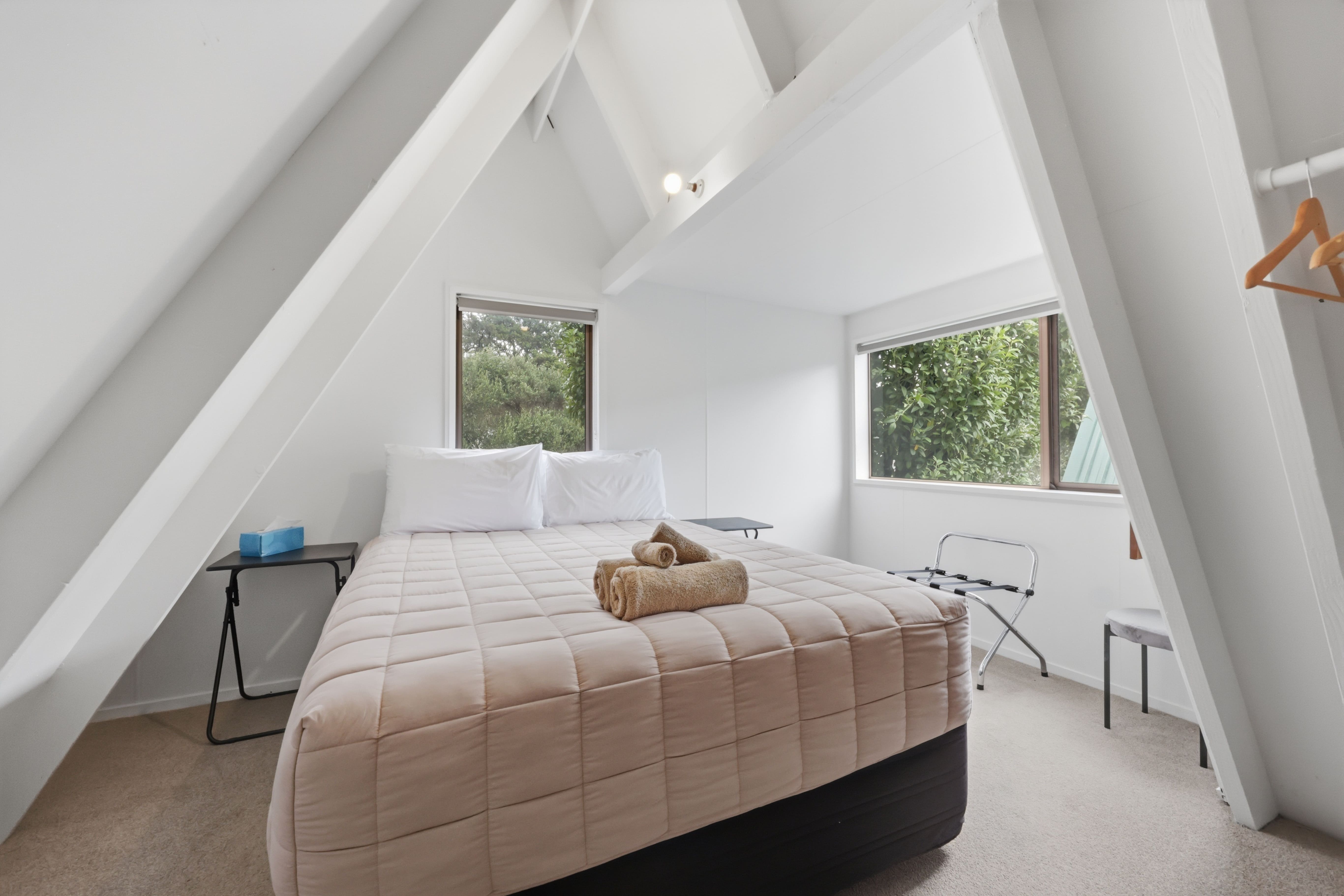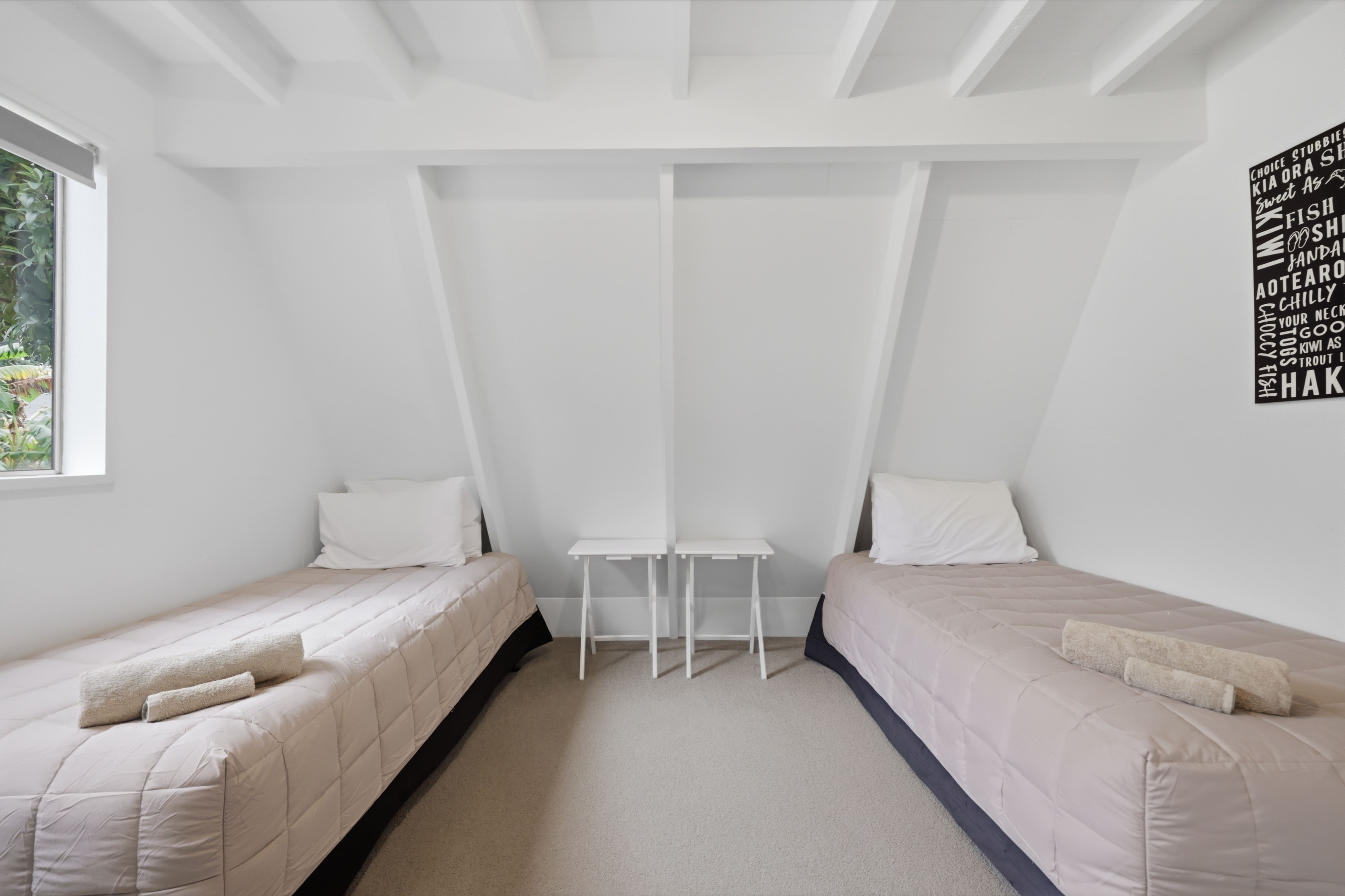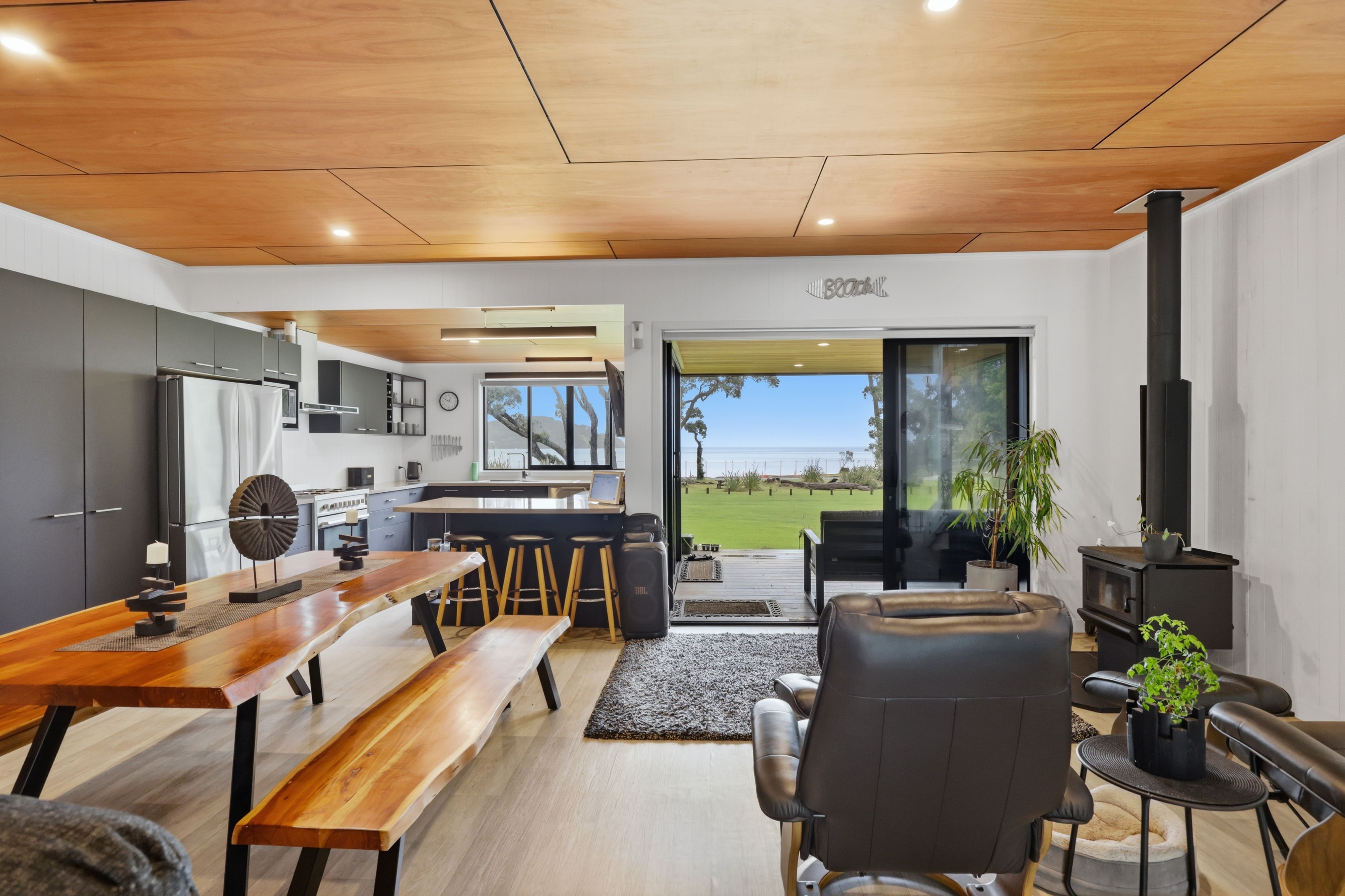 Positioned on a west-facing shoreline in Tryphena, where the sand begins just across the road and the evening sky moves through colours no city could ever name.