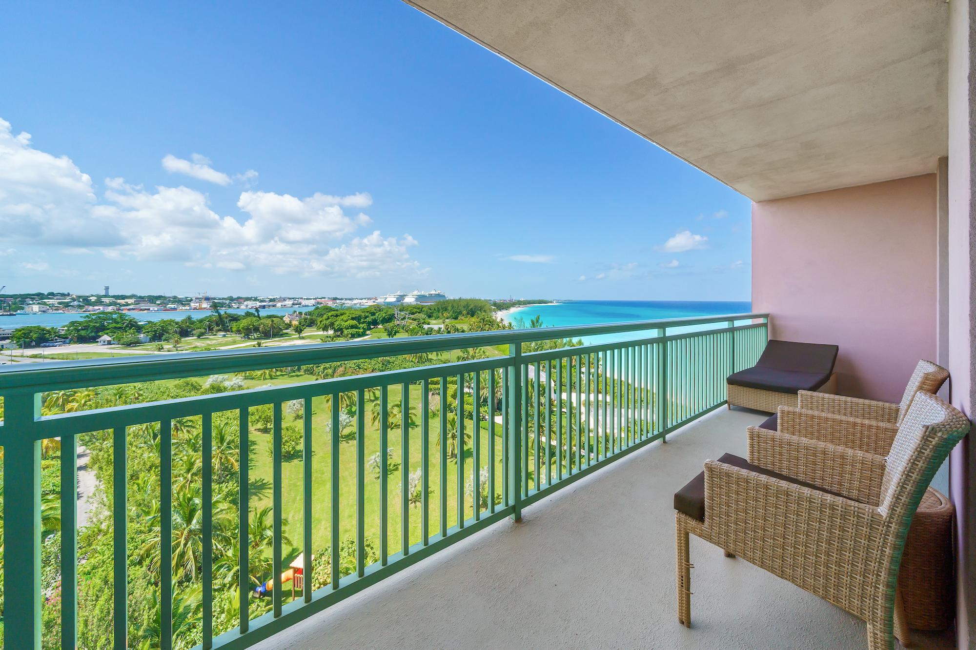 Set on the 8th floor, unit 8-919 of The Reef, this one-bedroom, two-bathroom residence captures sweeping views across the ocean, pristine beach, iconic lighthouse, and Nassau Cruise Port. Thoughtfully designed and fully furnished, the suite offers the ease of turnkey ownership within one of the most coveted beachfront addresses at Atlantis.Signature Features