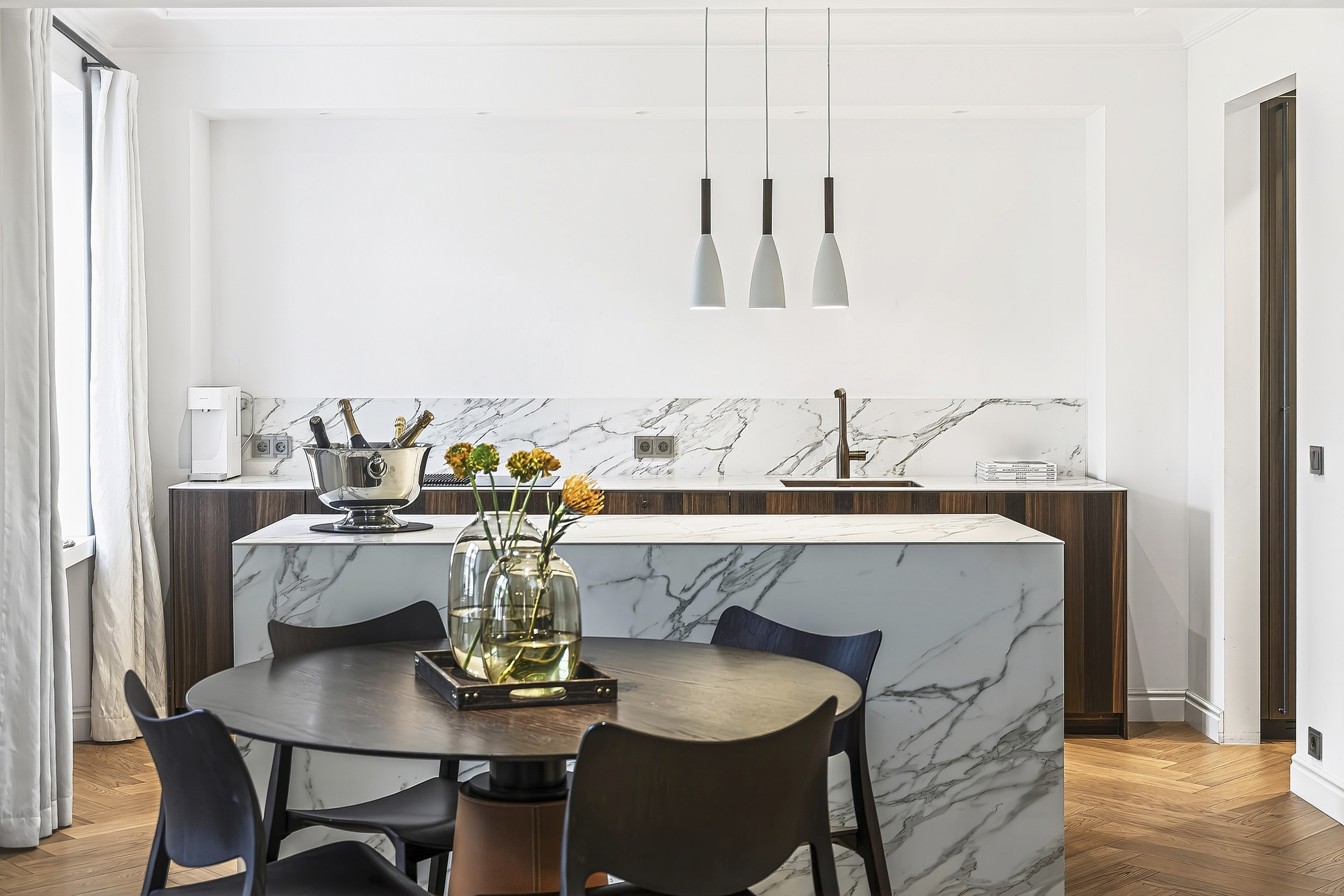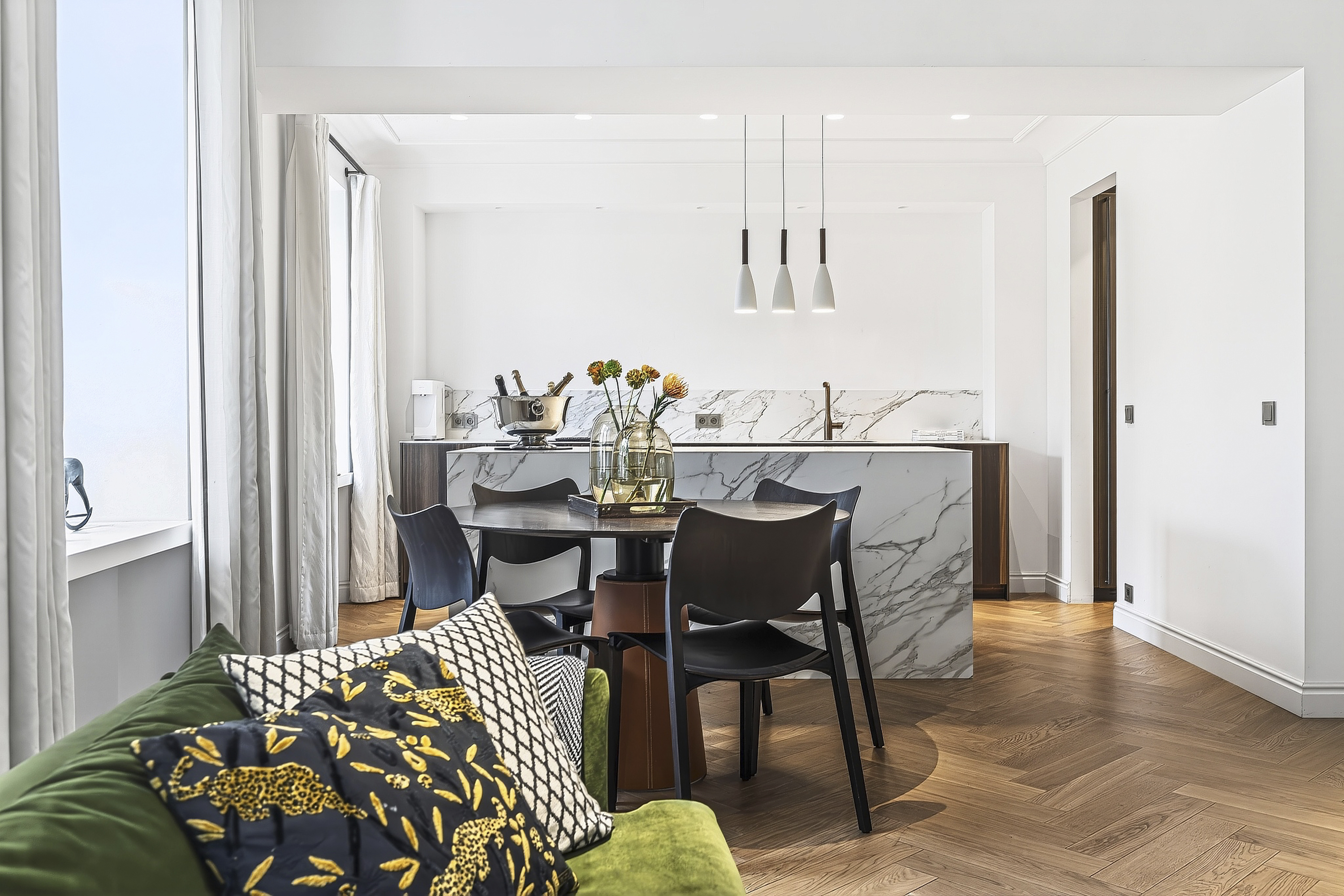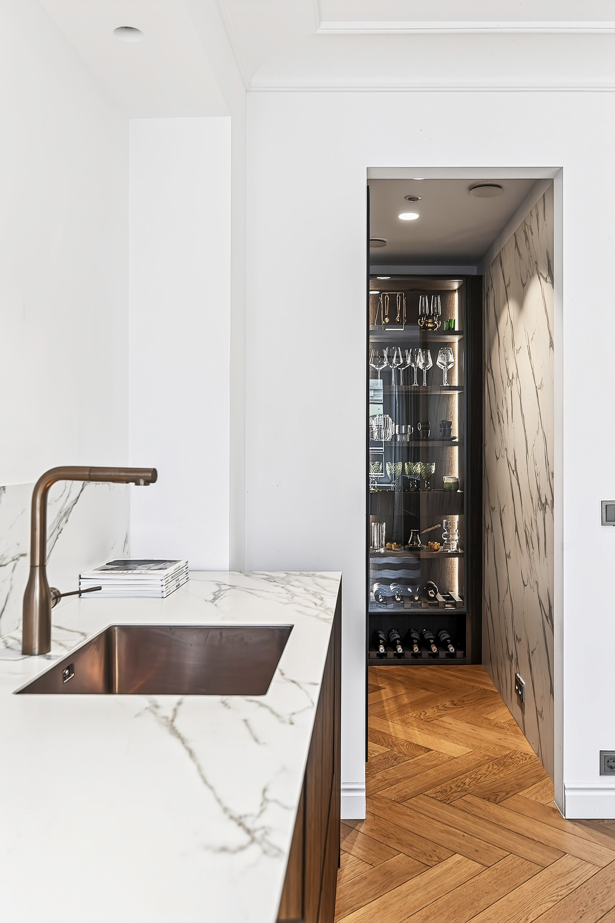 Luxury one-bedroom apartments for sale near Stiklių viešbutis, where space, comfort, and top-quality design come together. Every detail has been carefully crafted to ensure a lifestyle that is convenient, aesthetic, and harmoniously aligned with the rhythm of city living. Reflecting the spirit of the Old Town, the apartments are modernly equipped with underfloor heating, a heat recovery ventilation system, new double-glazed wooden windows, and warm oak floors. The luxurious German SieMatic kitchen comes with built-in appliances, an adjacent storage room, and a wine cooler. Italian furniture and lighting, along with other distinctive interior elements, create an elegant and timeless environment. The spacious bedroom features a private bathroom and a large walk-in closet. These apartments offer not only generous interior space but also an exceptional location: a cozy terrace opens onto an Old Town courtyard, while just steps away you will find prestigious restaurants, Senatorių pasažas, and Stiklių viešbutis. Living here is a unique opportunity to enjoy the charm and character of the Old Town.