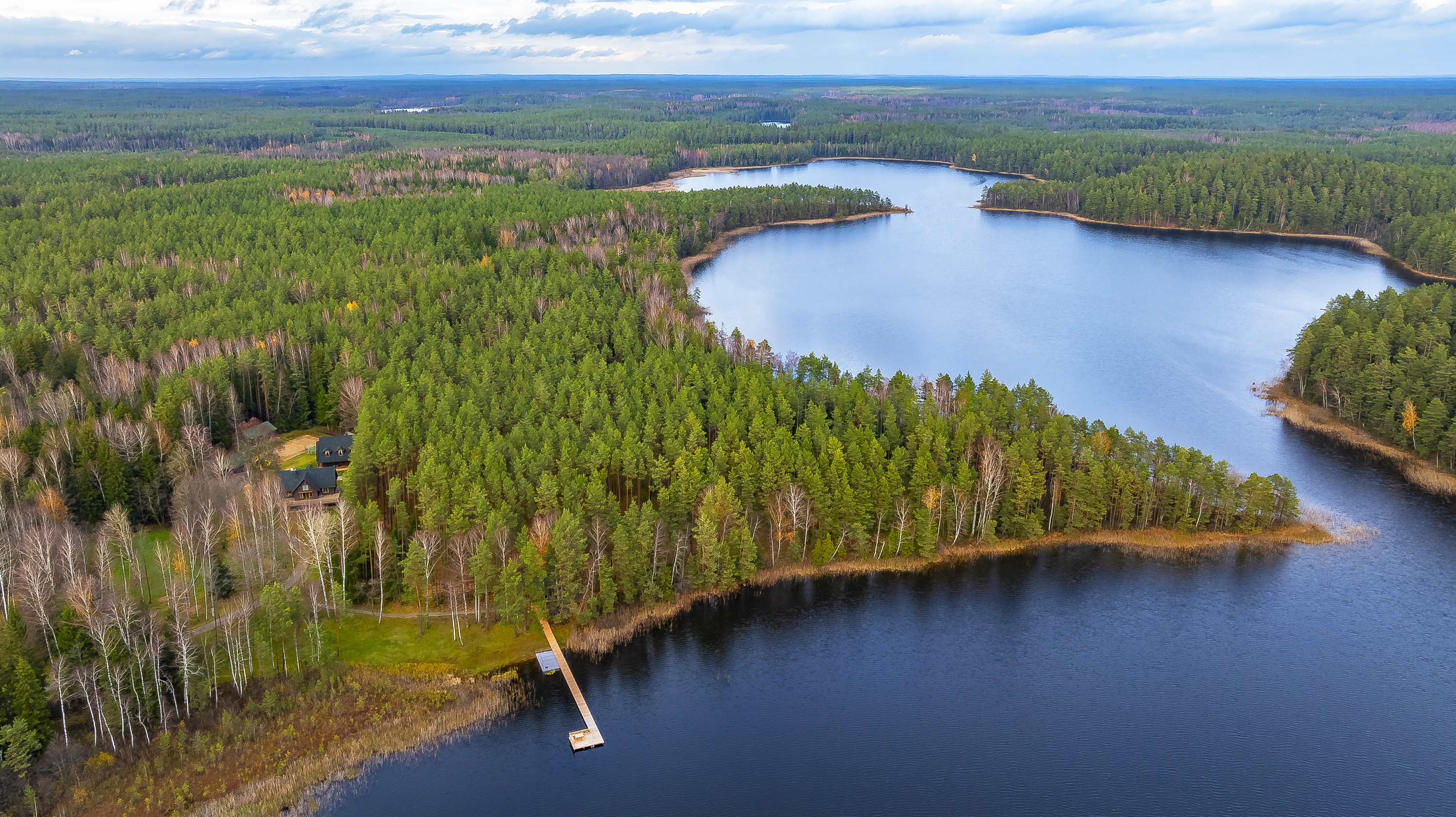 A true paradise for lovers of privacy, nature, and a healthy lifestyle. This secluded estate in the Labanoras Regional Park has everything you need for quality relaxation. Located 82 km from the center of Vilnius, this residence reflects the true beauty and uniqueness of Lithuania's nature. Spread across an expansive 19-hectare area bordering Lake Didysis Siaurys, the property includes five buildings: a spacious main house, a guest house, a professional gym with forest views, a utility building with a garage, and a sauna located on the lake shore. The layout is thoughtfully designed to leave plenty of outdoor space for relaxation, including a children's playground and a barbecue area. The main house features five bedrooms, a cozy living room with a fireplace, exceptionally high ceilings, and stunning lake views. Adjacent to the living room are a kitchen and a leisure area with a billiard table. From the living room, there is direct access to a terrace where you can enjoy warm summer evenings and views of the serene, breathtaking lake surrounded by forests. The entire property is fully developed, with paved pathways and a parking area for cars. The grounds are equipped with lighting throughout.