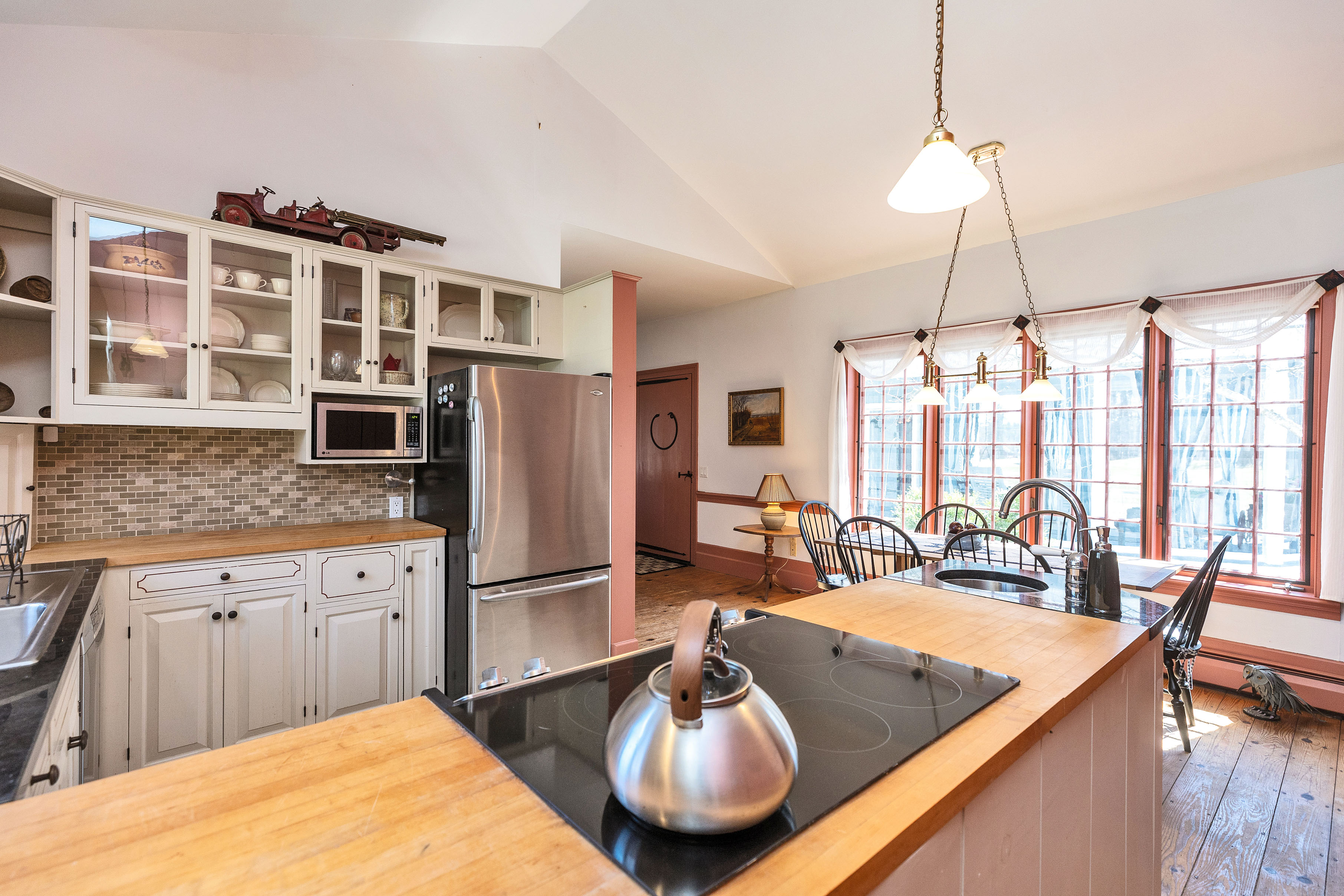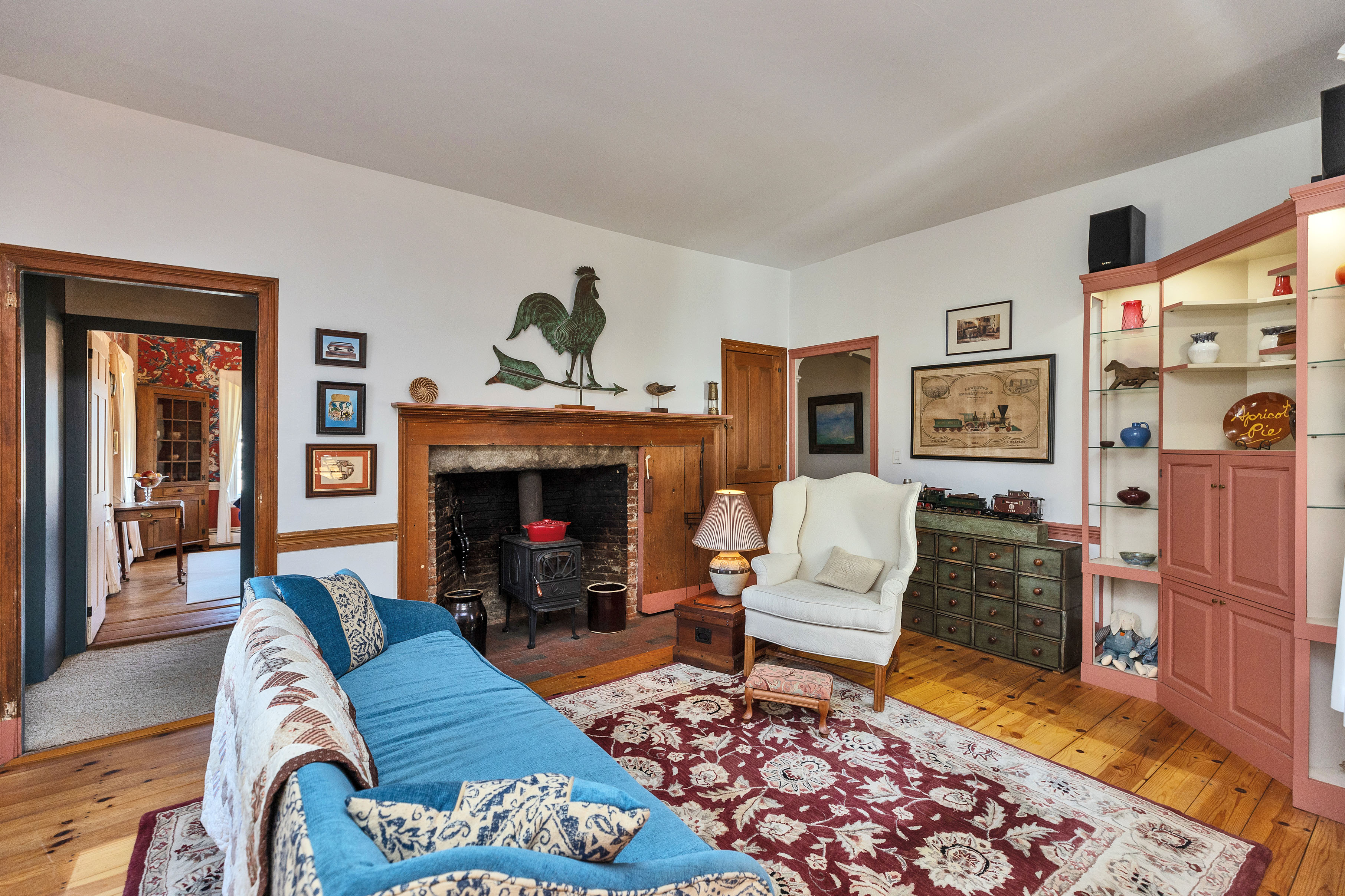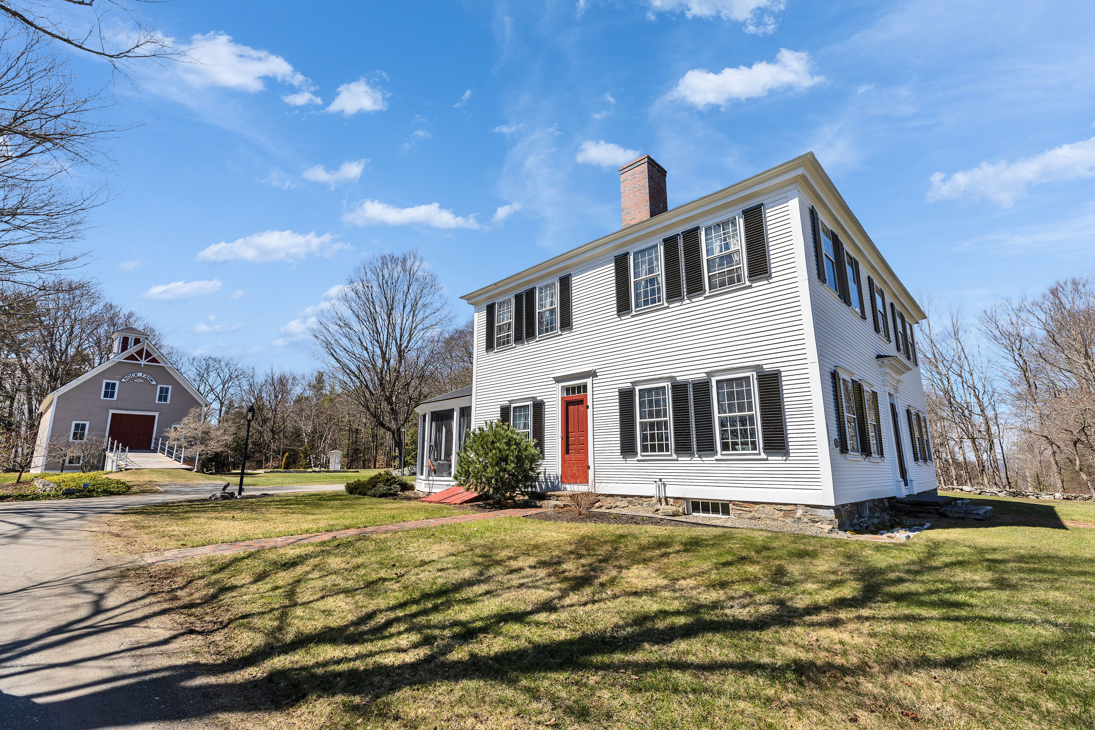 The Hutchinson House, a historic home on the National Register of Historic Places, is a rare find. This beautiful home combines the symmetrical balance of Federal style with the elegant proportion of Georgian design. Featuring authentic Moses Eaton Jr. stenciling, this 1805 home has a rich history and classic New England charm. The property includes over 4,200 square feet of well preserved living space, an attached two car garage with a large heated second story workshop, a striking two-story Victorian horse barn, as well as a screened-in porch and landscaped grounds. The home features beautiful historic details, such as wide pine flooring, period woodwork, and original mantels. The floor plan includes a formal dining room and library, perfect for entertaining, as well as a country kitchen and multiple cozy living spaces for everyday life. Each of the 3 bedrooms has ample light and views of the surrounding land. This property offers a peaceful retreat in a quiet rural setting, just minutes from trails, lakes and nearby village centers. Dont miss this unique property! Open house Sunday, April 19, from 1-3pm