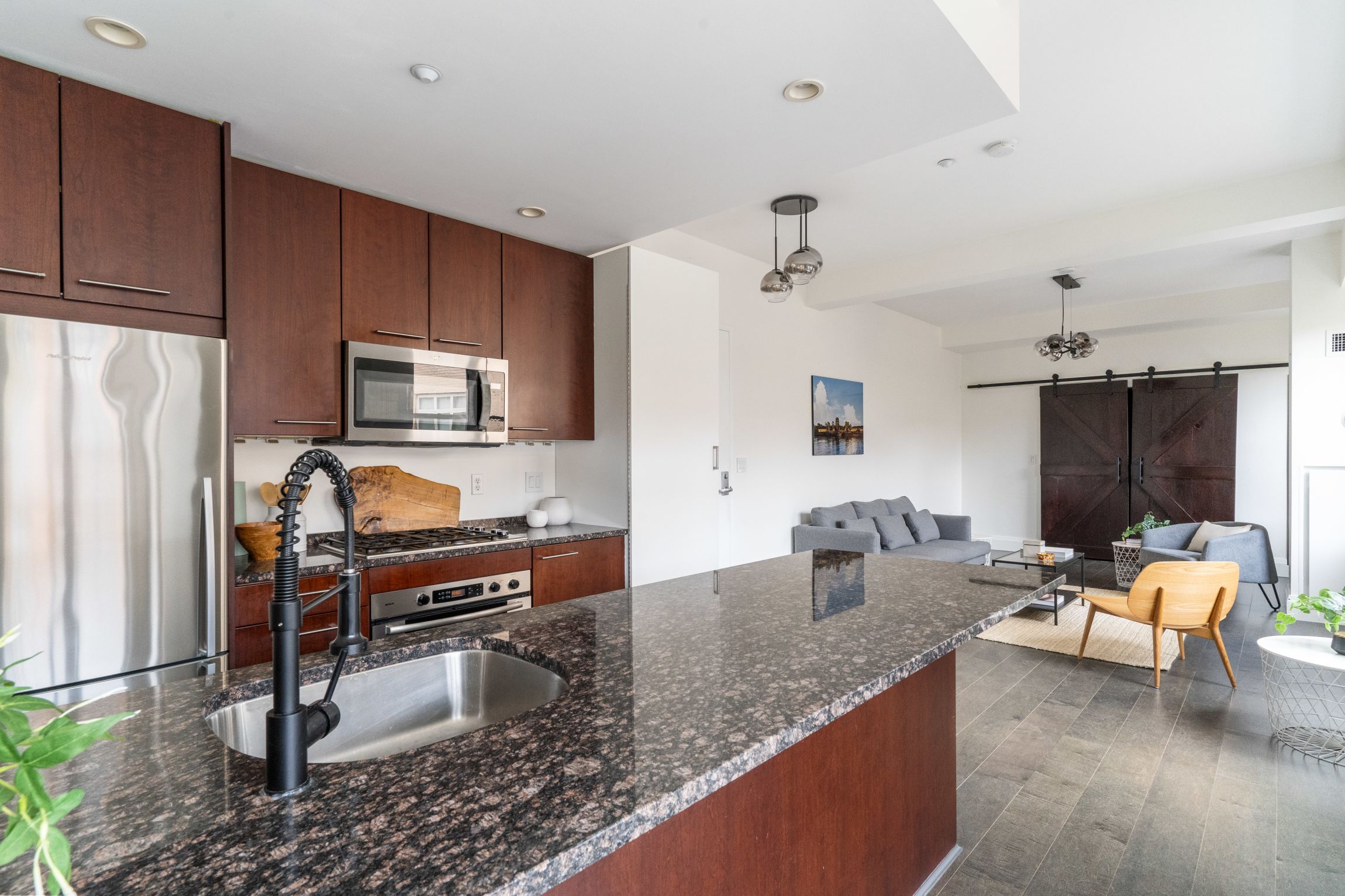 Beautiful Gateway Terrace condo with 14 windows & Roof Deck in Elevator building. Garage Parking available for purchase. Sunny upper-floor unit w/ dramatic oversized windows & high ceilings. Views of professionally landscaped courtyard with mature trees & plantings, furnishings & grill. Great open layout w/ separate dining & bedroom areas. Large chef's kitchen has stainless steel appliances, gas cooking & granite countertops. Generous dining bay accommodates a very large table. Hardwood floors throughout. Central AC, W/D in unit. Private Roof Deck w/city views. Situated on the courtyard side of the building, this home is peaceful & quiet. Onsite professional management. Pets OK. Fantastic location in the heart of SoWa Art + Design District with restaurants, galleries, Whole Foods Market. 2% of sales price is due to the BRA with each sale, paid by the seller. Unit owner pays for electricity & air circulation. Seller welcomes offers with requests for compensation. Tenanted until 8/31/26