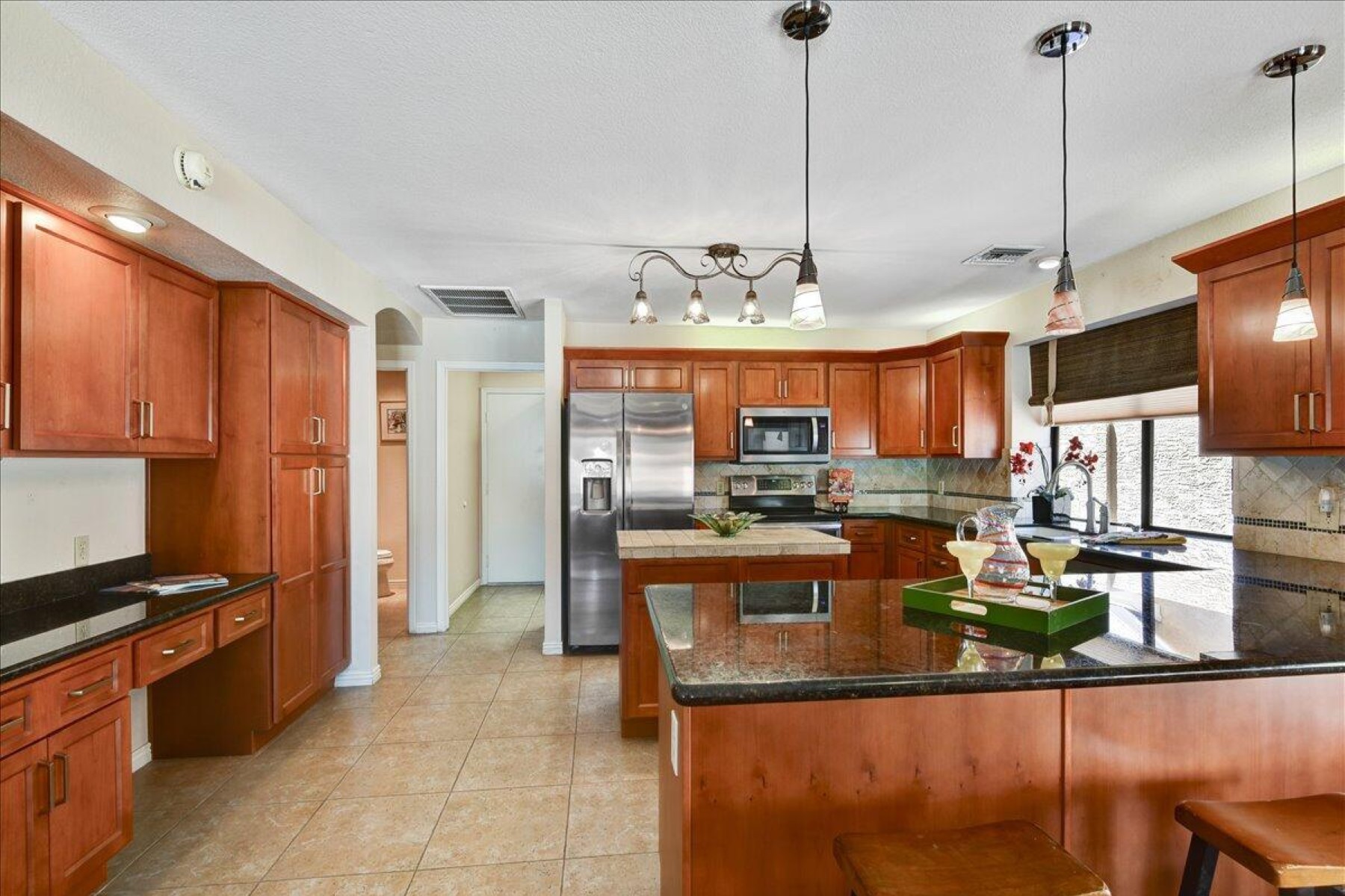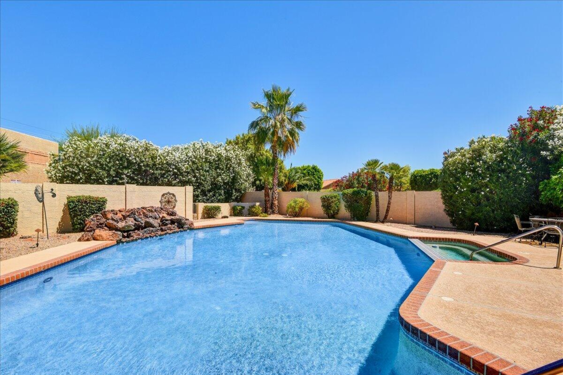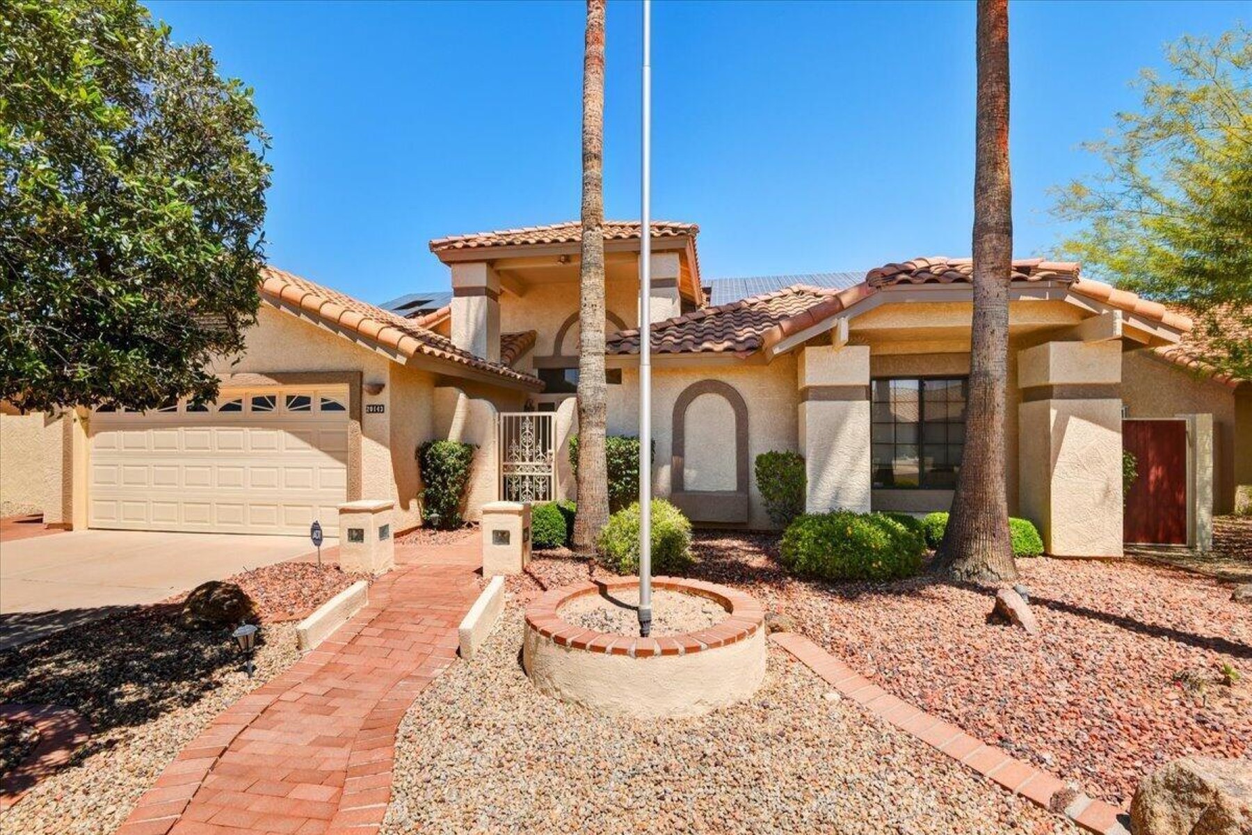 Experience sophisticated living in this exquisitely maintained residence within Westbrook Village. Designed for the discerning host, the home features a beautifully updated gourmet kitchen and an expansive Arizona Room with serene views. The private, resort-style backyard is an entertainer's masterpiece, anchored by a palatial pool and integrated spa. The estate boasts modern refinement, including owned solar for efficiency and two new HVAC units (2023). Enjoy a primary suite with a contemporary roll-in shower and designer touches throughout. This home offers a rare blend of comfort and style, all within Westbrook Village, which features resort-style amenities including 2-18 hole golf courses, 2 community pools, 2 rec centers, pickleball, restaurants, clubs and so much more!