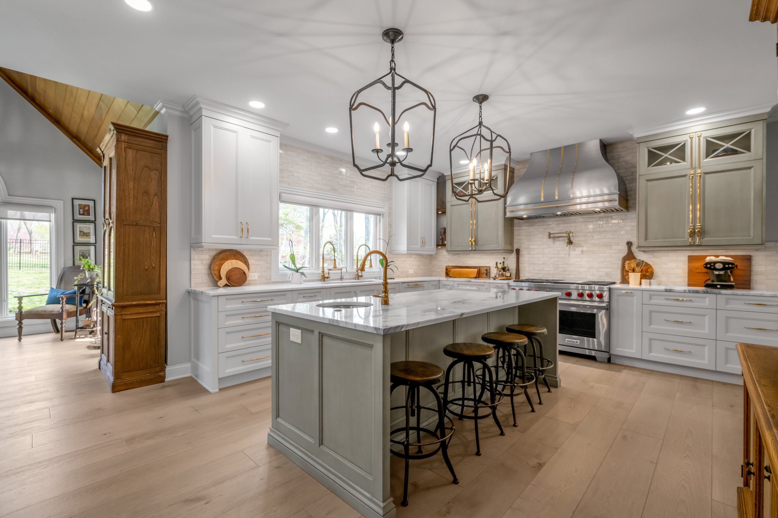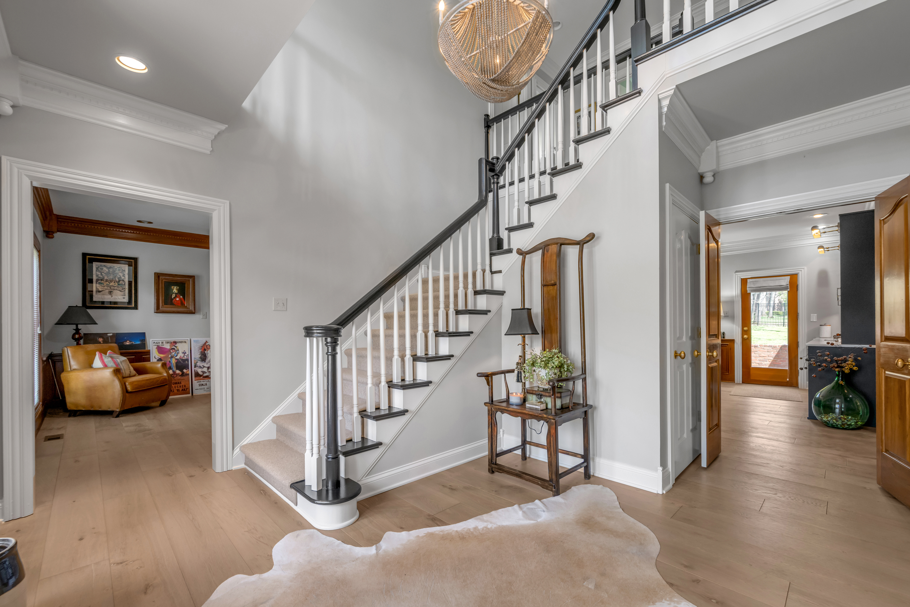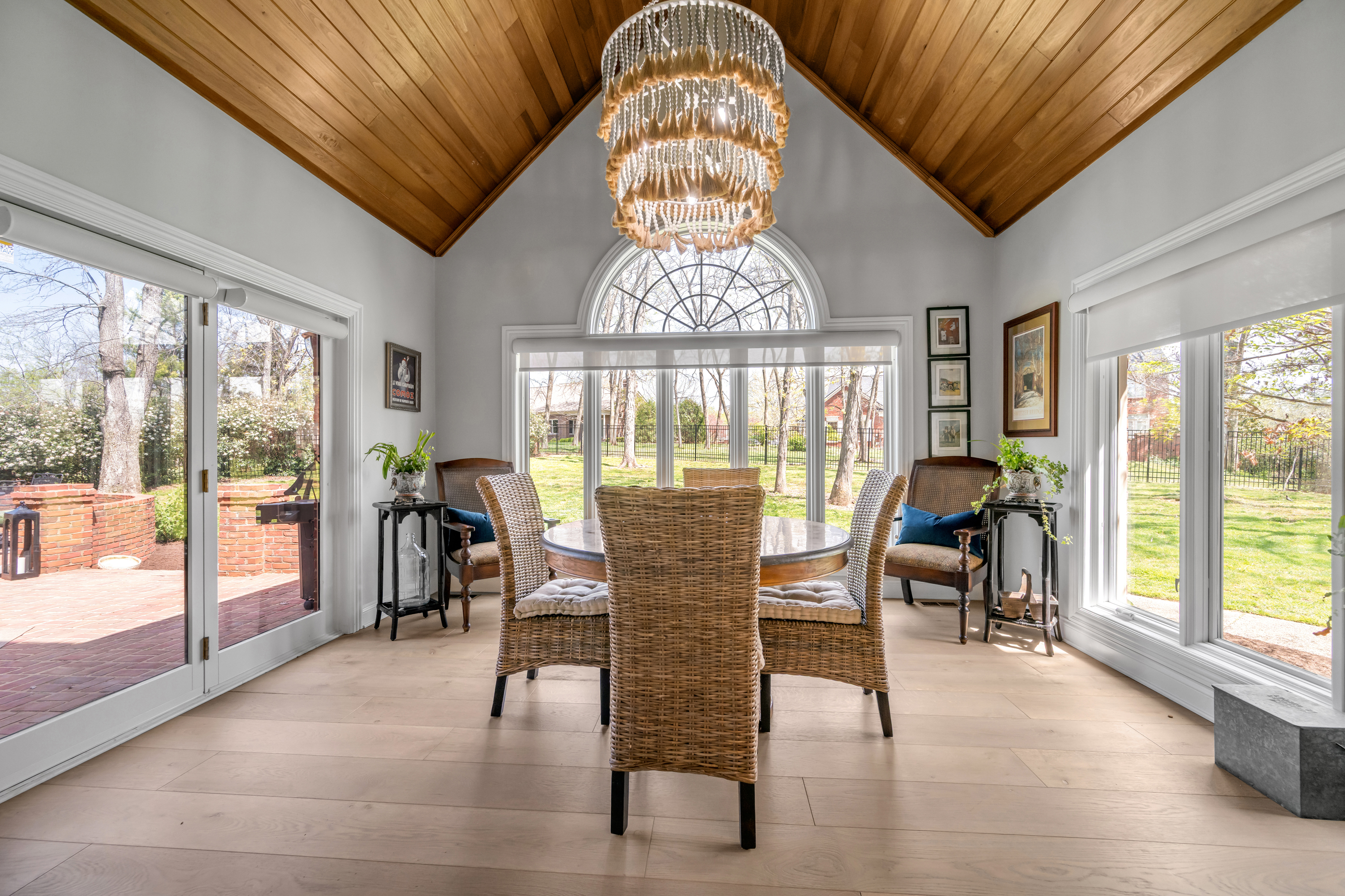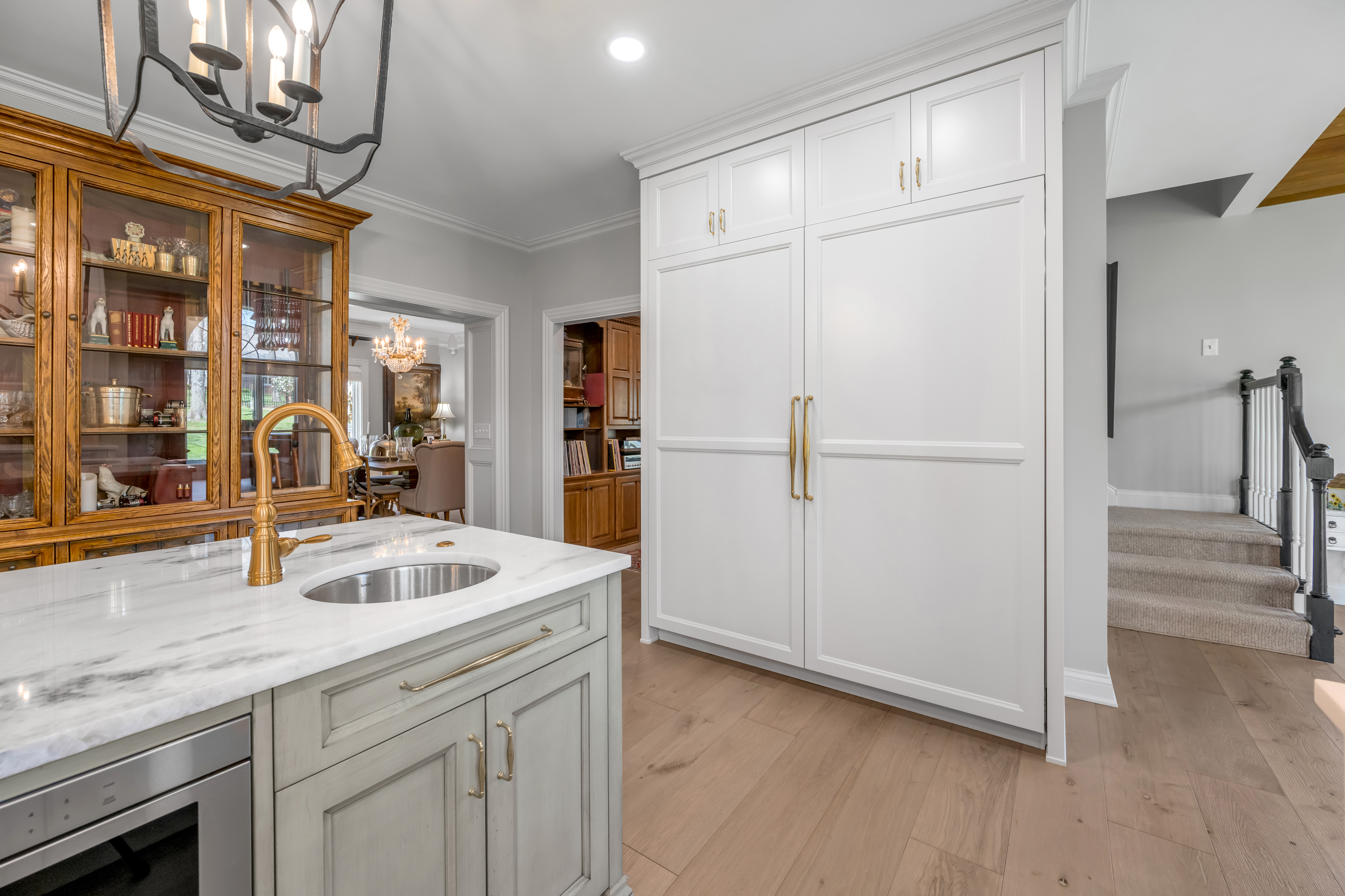 Tucked away on a quiet, tree-lined cul-de-sac in Hartland Estates, this home is the perfect blend of classic style and Southern charm. Step inside and you're greeted by a stunning two-story foyer with dramatic lighting that feels both elegant and inviting. Warm French oak flooring runs throughout the main level, adding a relaxed, lived-in feel. A gracious formal dining room seamlessly transitions into what can only be described as the heart of the home: a truly bespoke, designer kitchen where no detail has been overlooked. This one-of-a-kind culinary space, designed by Derrick Whitaker, is a masterclass in luxury and function. Marble countertops rest atop handcrafted cabinetry, complemented by a striking Moroccan tile backsplash. A custom-designed vent hood crowns the professional-grade 48-inch Wolfe range with pot filler. A full-size 36-inch Sub-Zero refrigerator and freezer, Wolfe microwave and warming drawer, and expansive stainless steel sink, outfitted with dual brass faucets and integrated accessories, reflects the kitchen's thoughtful design. Just off the kitchen, the breakfast room features a cathedral ceiling with stained tongue-and-groove wood, access to the back staircase, and doors that open directly to the patio. Tucked behind a set of circa 1850 French doors is a scullery, as functional as it is charming, with a beautifully restored cast iron sink, additional Bosch dishwasher, an abundance of shelving and cabinetry, plus a convenient drop zone. The main living space is built for both relaxing and entertaining, with a spacious family room featuring a fabulous wet bar—complete with an ice maker, beverage fridge, wine cooler, and a standout hammered copper sink. A double-sided fireplace connects the great room to a bright, oversized sunroom with terracotta tile. Both areas open right out to the patio, making indoor-outdoor living feel effortless. A dedicated office with rich wood moldings and built-ins offers a quiet, polished workspace. Upstairs, the primary suite offers loads of privacy with a separate sitting area—perfect for a quiet morning coffee or winding down at the end of the day. The ensuite bath offers a tiled walk-in shower, double sinks with a dedicated vanity space, and two walk-in closets so you don't have to share. Two additional bedrooms share a centrally located hall bath, while the third has its own private ensuite with a tiled walk-in shower. The finished lower level adds flexibility with a large rec space, full bath, and a cozy family room with fireplace—ideal for movie nights or game days—plus a large unfinished storage space. Outside, a brick paver patio overlooks the fully fenced yard framed by mature trees. A three-car side-entry garage and circular drive add both convenience and curb appeal. Meticulously maintained, the home has seen major updates including a new roof with copper flashing, a whole-house Generac generator, and a water filtration system. A rare opportunity to own a beautifully designed home in one of Lexington's most desirable neighborhoods—where every detail has been considered and every space feels like home.