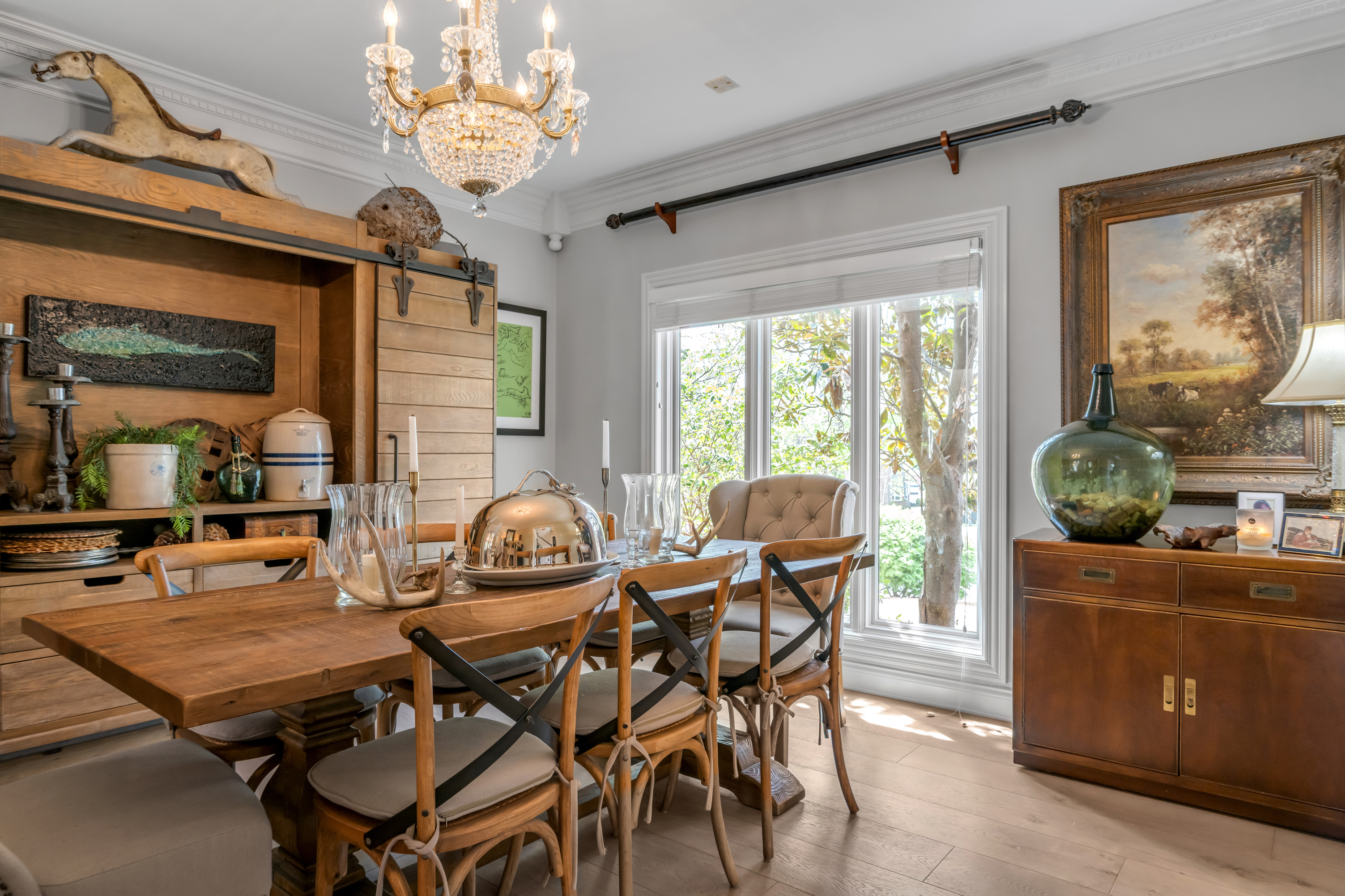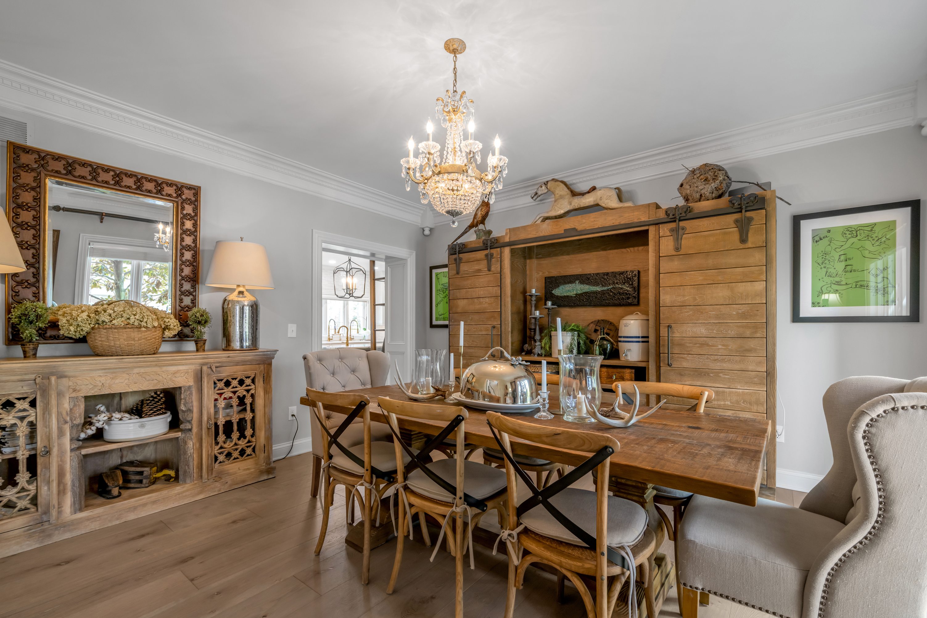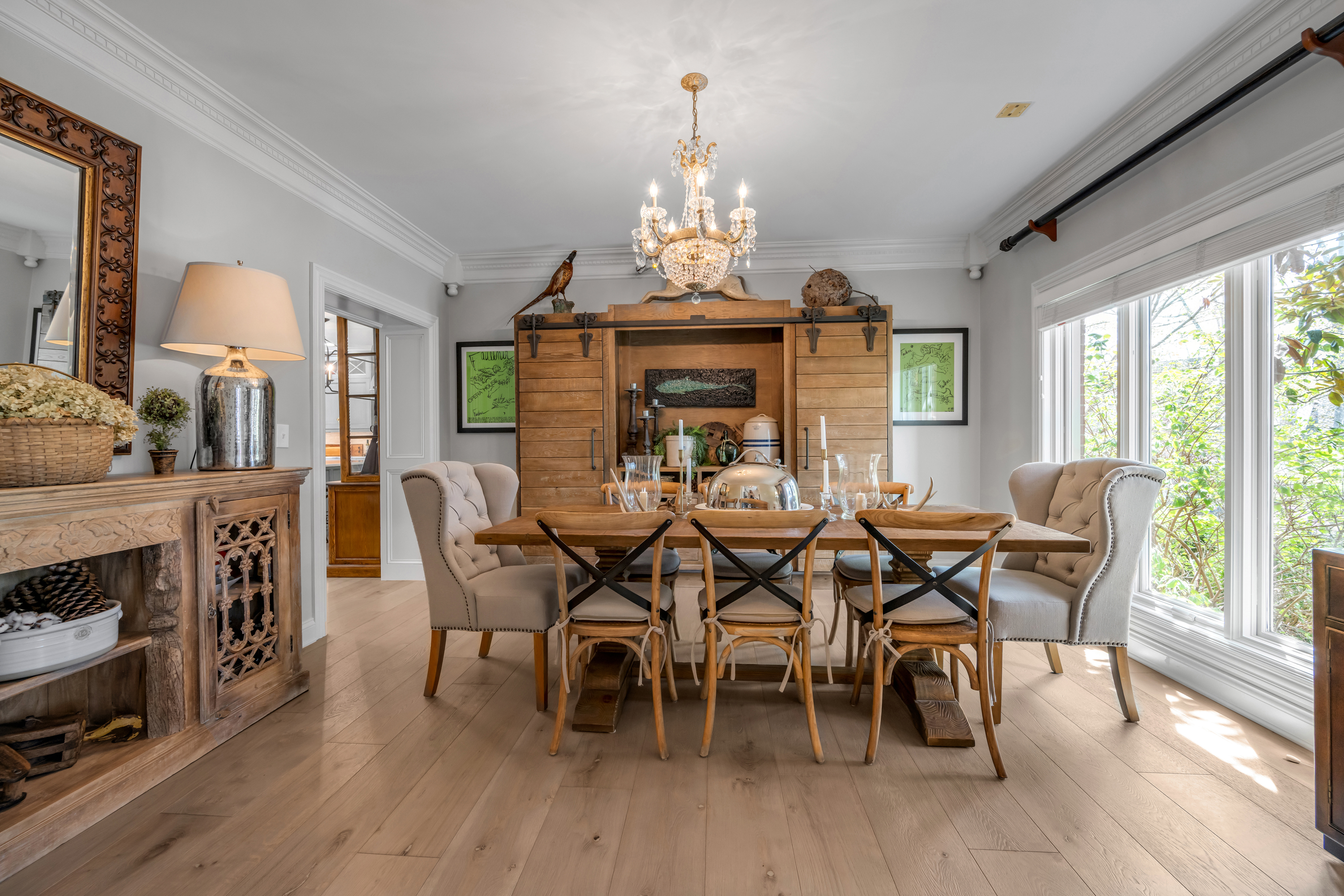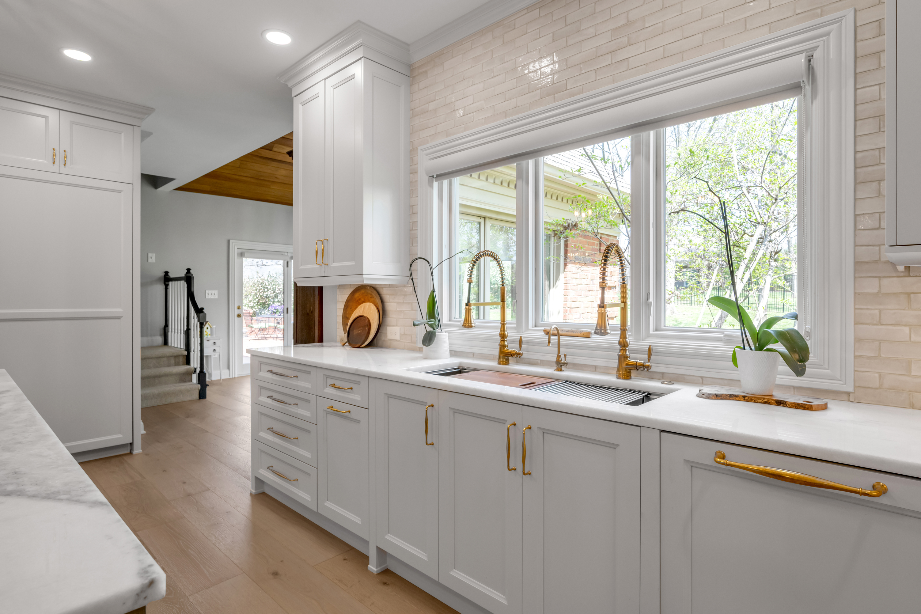 Tucked away on a quiet, tree-lined cul-de-sac in Hartland Estates, this home is the perfect blend of classic style and Southern charm. Step inside and you're greeted by a stunning two-story foyer with dramatic lighting that feels both elegant and inviting. Warm French oak flooring runs throughout the main level, adding a relaxed, lived-in feel. A gracious formal dining room seamlessly transitions into what can only be described as the heart of the home: a truly bespoke, designer kitchen where no detail has been overlooked. This one-of-a-kind culinary space, designed by Derrick Whitaker, is a masterclass in luxury and function. Marble countertops rest atop handcrafted cabinetry, complemented by a striking Moroccan tile backsplash. A custom-designed vent hood crowns the professional-grade 48-inch Wolfe range with pot filler. A full-size 36-inch Sub-Zero refrigerator and freezer, Wolfe microwave and warming drawer, and expansive stainless steel sink, outfitted with dual brass faucets and integrated accessories, reflects the kitchen's thoughtful design. Just off the kitchen, the breakfast room features a cathedral ceiling with stained tongue-and-groove wood, access to the back staircase, and doors that open directly to the patio. Tucked behind a set of circa 1850 French doors is a scullery, as functional as it is charming, with a beautifully restored cast iron sink, additional Bosch dishwasher, an abundance of shelving and cabinetry, plus a convenient drop zone. The main living space is built for both relaxing and entertaining, with a spacious family room featuring a fabulous wet bar—complete with an ice maker, beverage fridge, wine cooler, and a standout hammered copper sink. A double-sided fireplace connects the great room to a bright, oversized sunroom with terracotta tile. Both areas open right out to the patio, making indoor-outdoor living feel effortless. A dedicated office with rich wood moldings and built-ins offers a quiet, polished workspace. Upstairs, the primary suite offers loads of privacy with a separate sitting area—perfect for a quiet morning coffee or winding down at the end of the day. The ensuite bath offers a tiled walk-in shower, double sinks with a dedicated vanity space, and two walk-in closets so you don't have to share. Two additional bedrooms share a centrally located hall bath, while the third has its own private ensuite with a tiled walk-in shower. The finished lower level adds flexibility with a large rec space, full bath, and a cozy family room with fireplace—ideal for movie nights or game days—plus a large unfinished storage space. Outside, a brick paver patio overlooks the fully fenced yard framed by mature trees. A three-car side-entry garage and circular drive add both convenience and curb appeal. Meticulously maintained, the home has seen major updates including a new roof with copper flashing, a whole-house Generac generator, and a water filtration system. A rare opportunity to own a beautifully designed home in one of Lexington's most desirable neighborhoods—where every detail has been considered and every space feels like home.