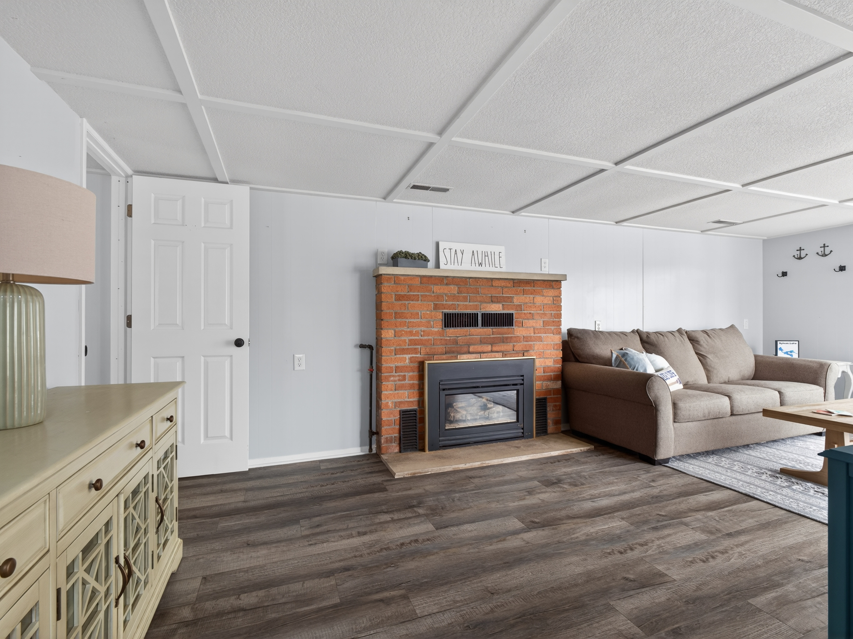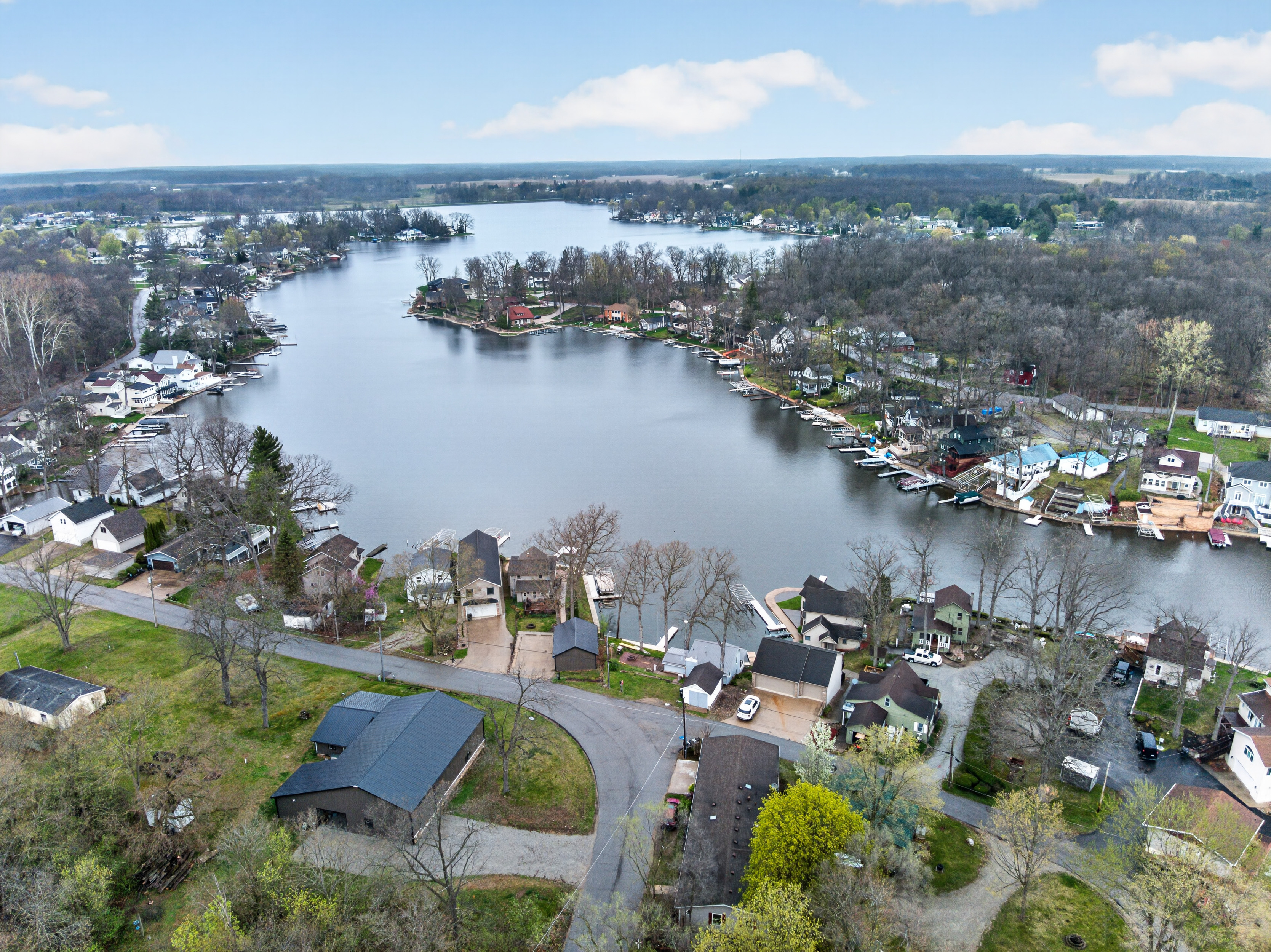 Step outside and enjoy the waterfront setting with low-maintenance landscaping that complements the ease of lake living. Two private piers offer convenient water access, while the sandy lake bottom enhances the swimming experience. An elevated firepit area overlooks the water, creating a great space for relaxing and enjoying the lake setting. Spend your days on the water and boat over to Dock’s Landing for a casual lakeside dining experience just moments away.