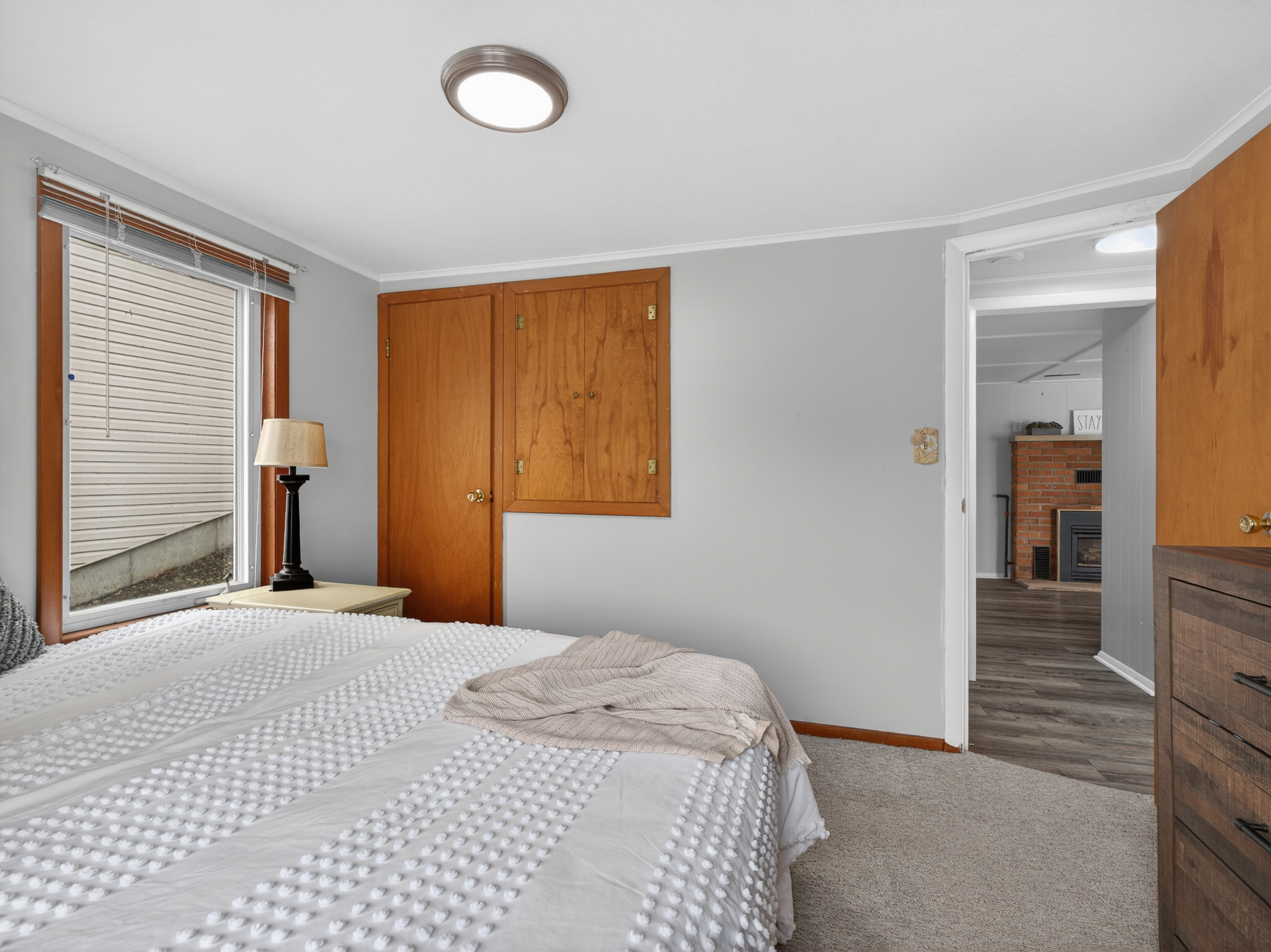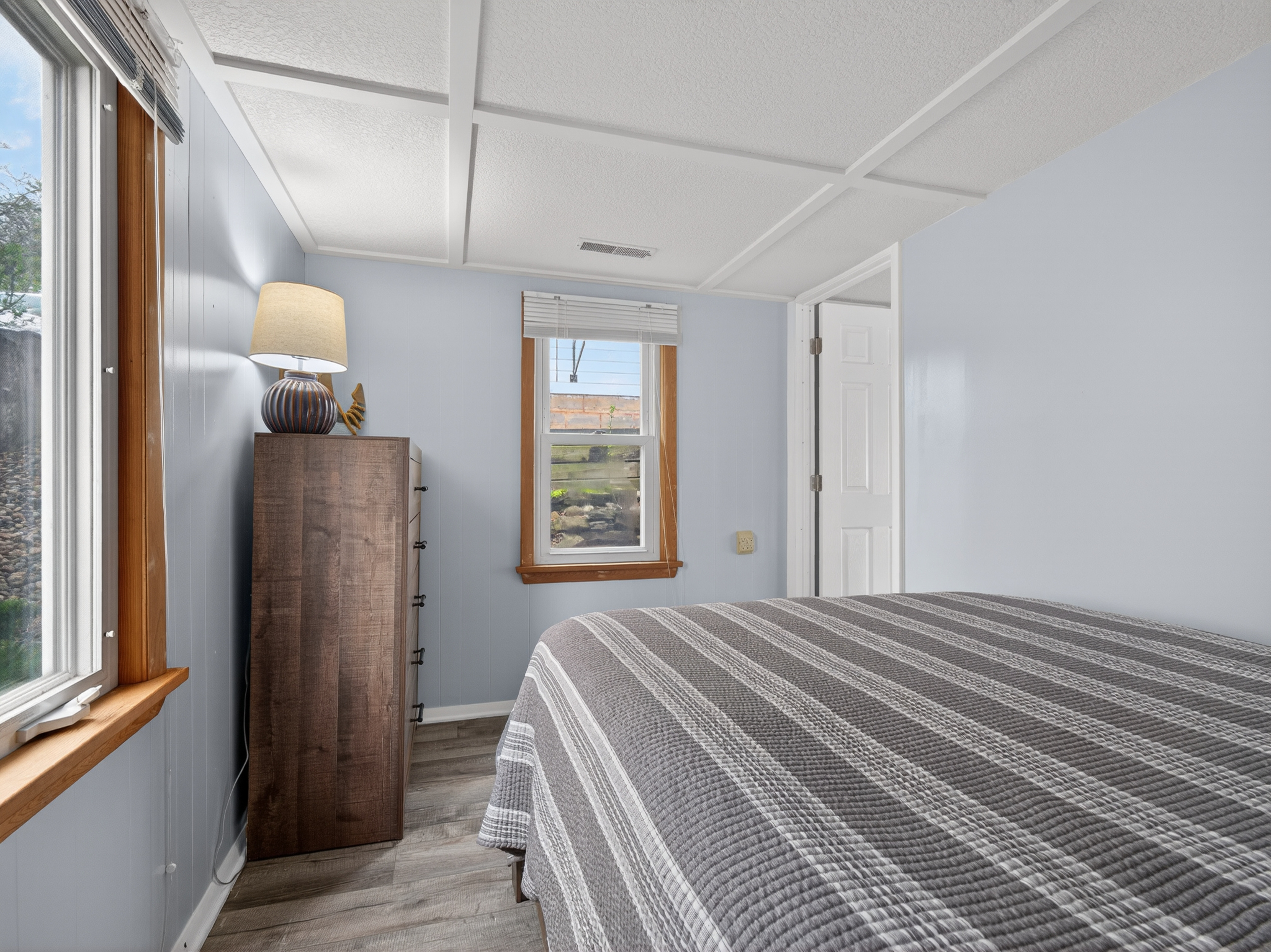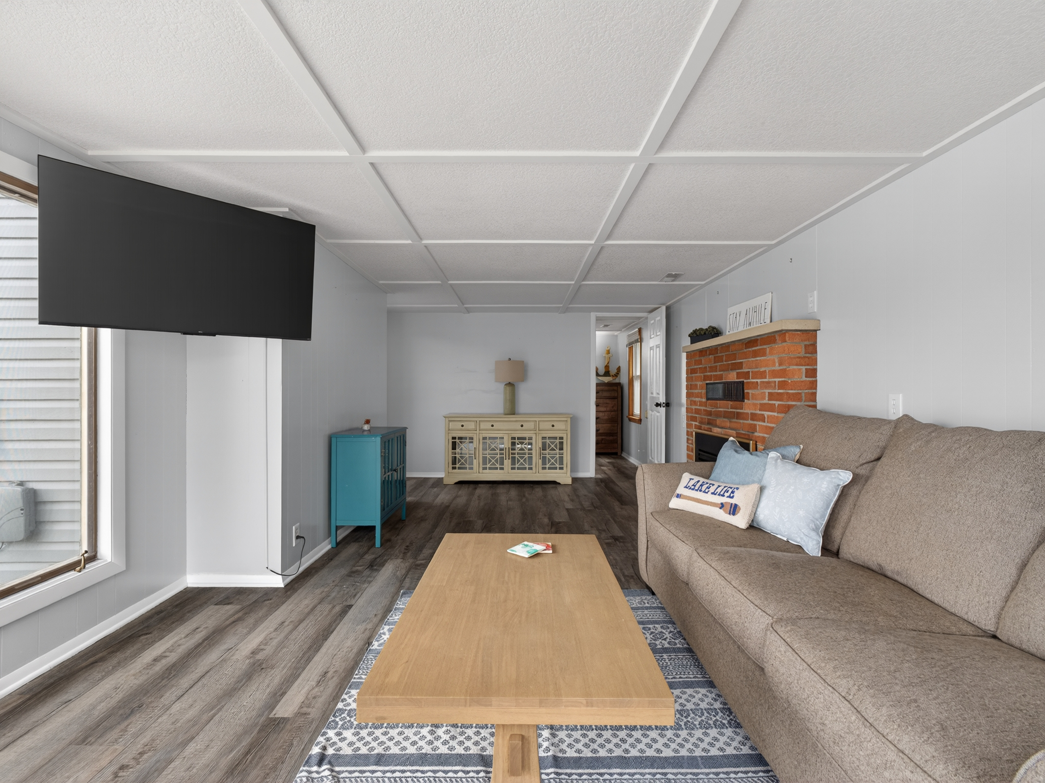 Inside, the home offers a comfortable and inviting layout with a blend of character and updates. The main living area is filled with natural light and showcases elevated lake views, creating an ideal space for both everyday living and entertaining. The home features three bedrooms and one full bathroom, including two bedrooms with beautiful views of the lake.