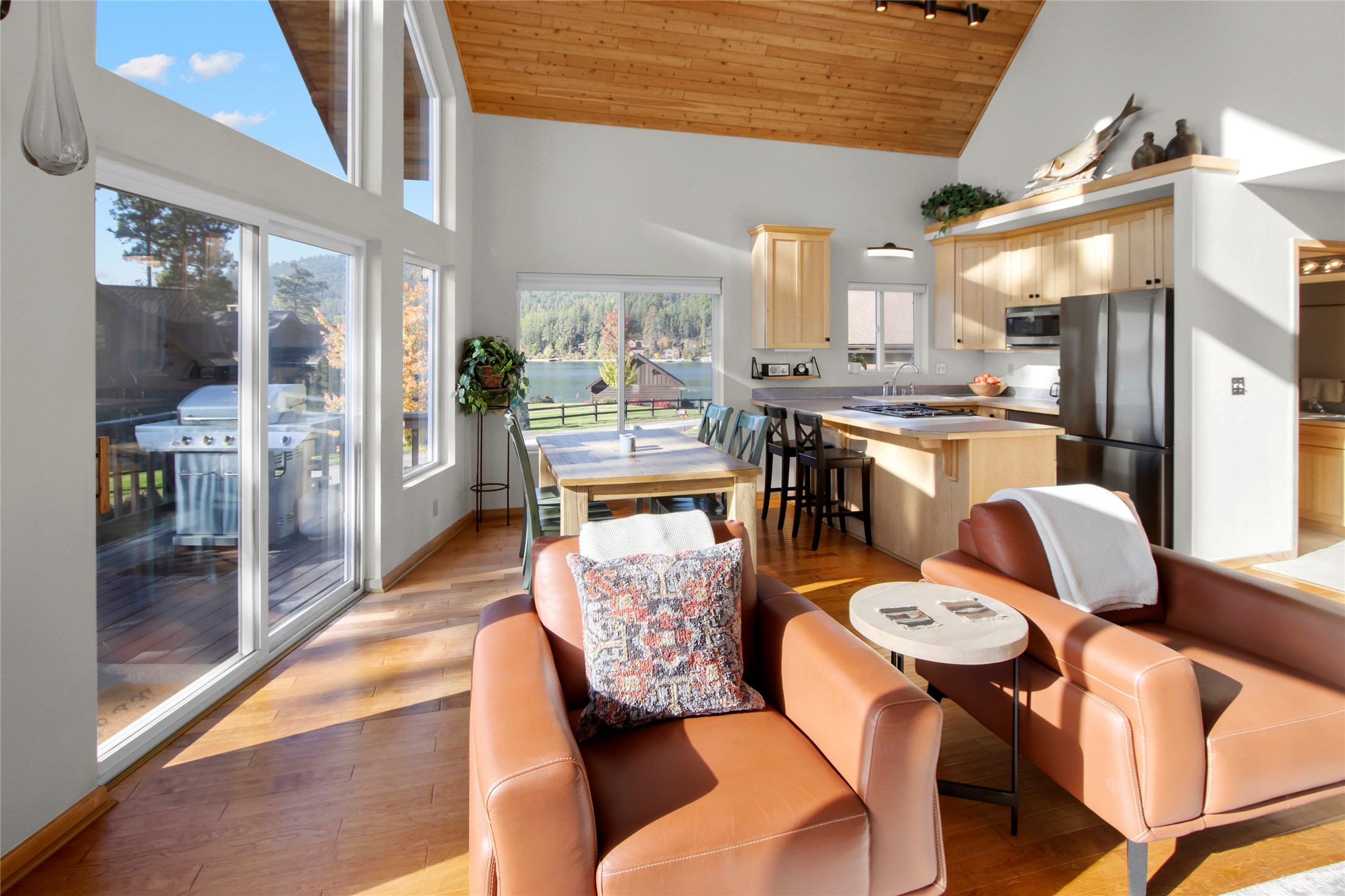 A rare gem. Perfectly situated on an impressive 110 feet of waterfront on Flathead Lake – one of the clearest lakes in the world. The home features a commanding 270-degree view of the lake, Wildhorse Island, and Mission Mountain Range. This remarkable 3-story chalet provides spectacular views from every window and Flathead Lake brings crystal clear water right to your very own shoreline and private dock.