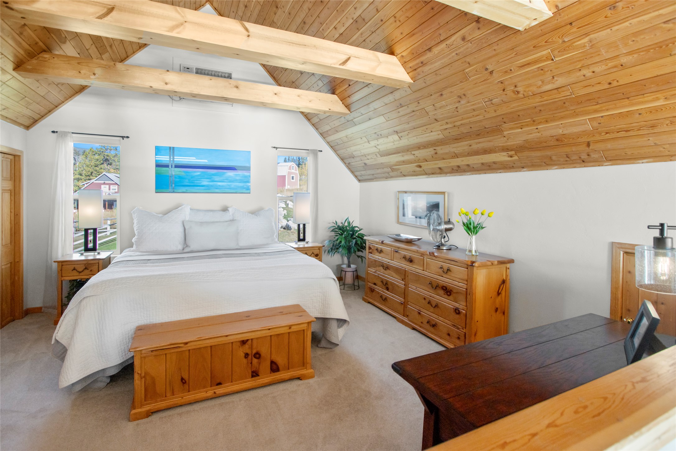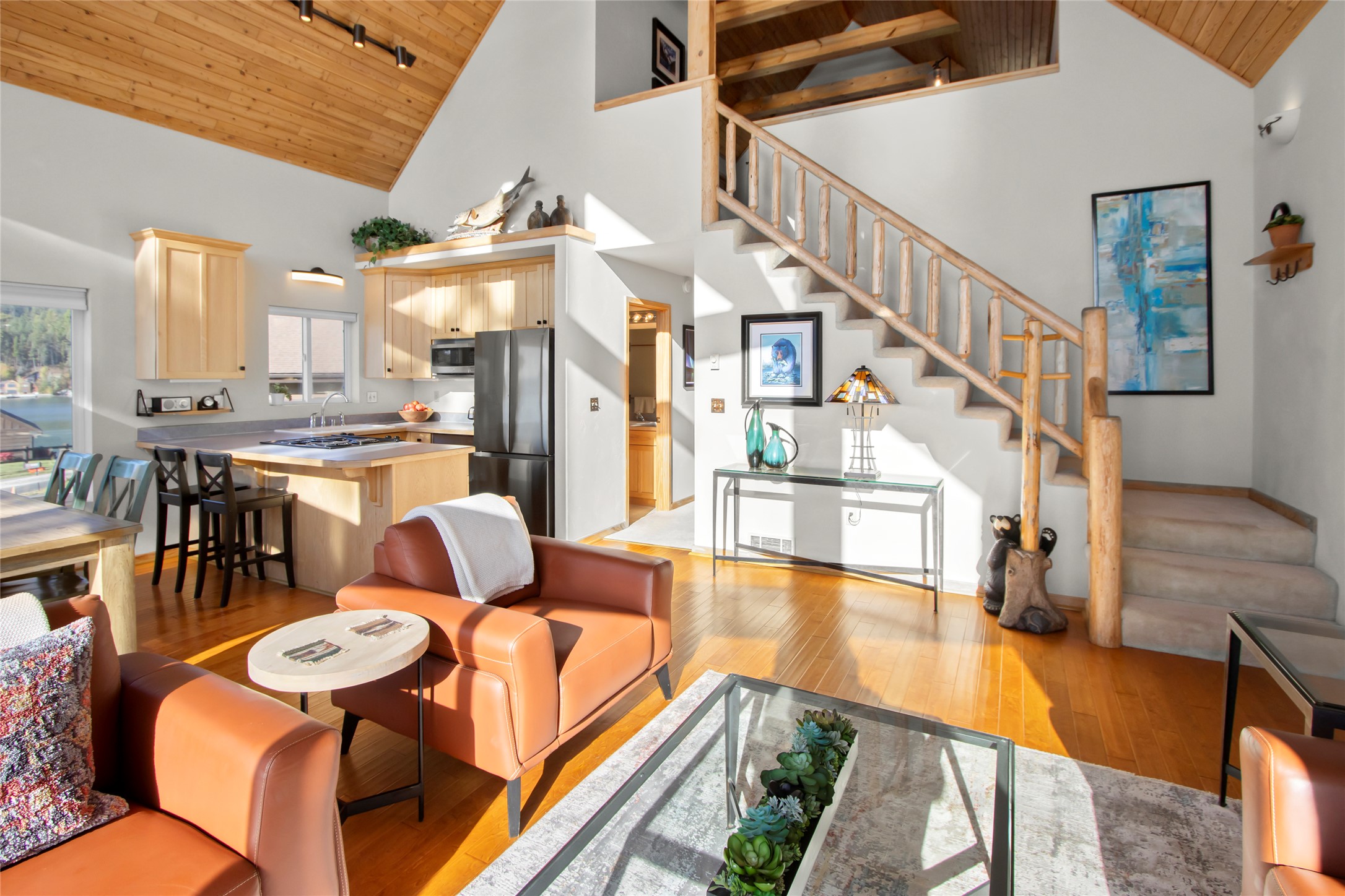 This magnificent home features a spacious loft with Primary Bedroom and en-suite. The main floor's Kitchen/Dining/Living area looks out through a wall of glass with soaring 22-foot wood ceiling. Also on the main floor you'll find a Guest Bedroom, Full Bath, and Office/Bonus Room. For even more entertainment, the lower level holds a Second Living Room, plus a fantastic Theatre Room with multi-level seating, reclining chairs and sofa, and 86” screen, a 1-car garage and storage/utility room. Beautifully decorated, the home is being offered furnished. This well-maintained home also features underground electric/internet, which means no wires to interrupt the view. The incredible location, with stunning panoramic views and thoughtfully designed layout is being offered by the original owners.