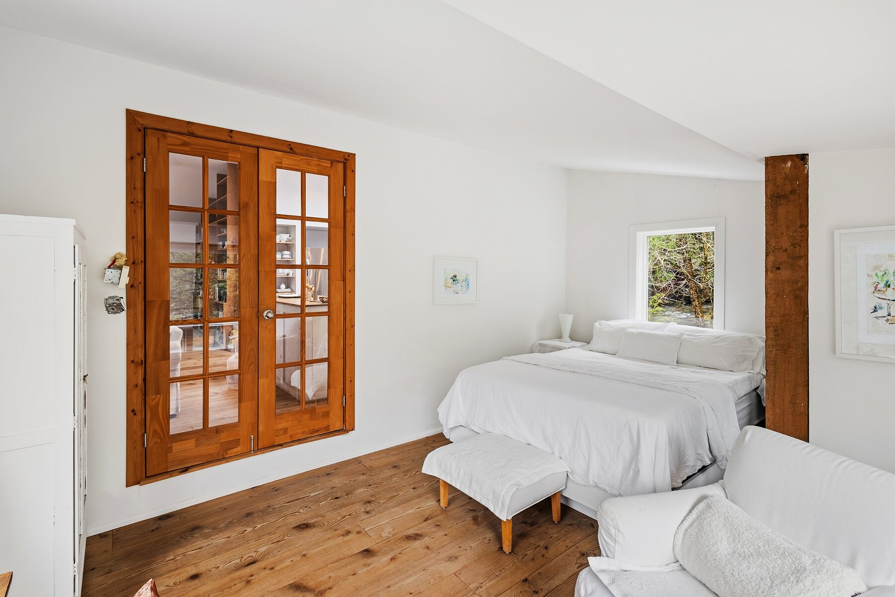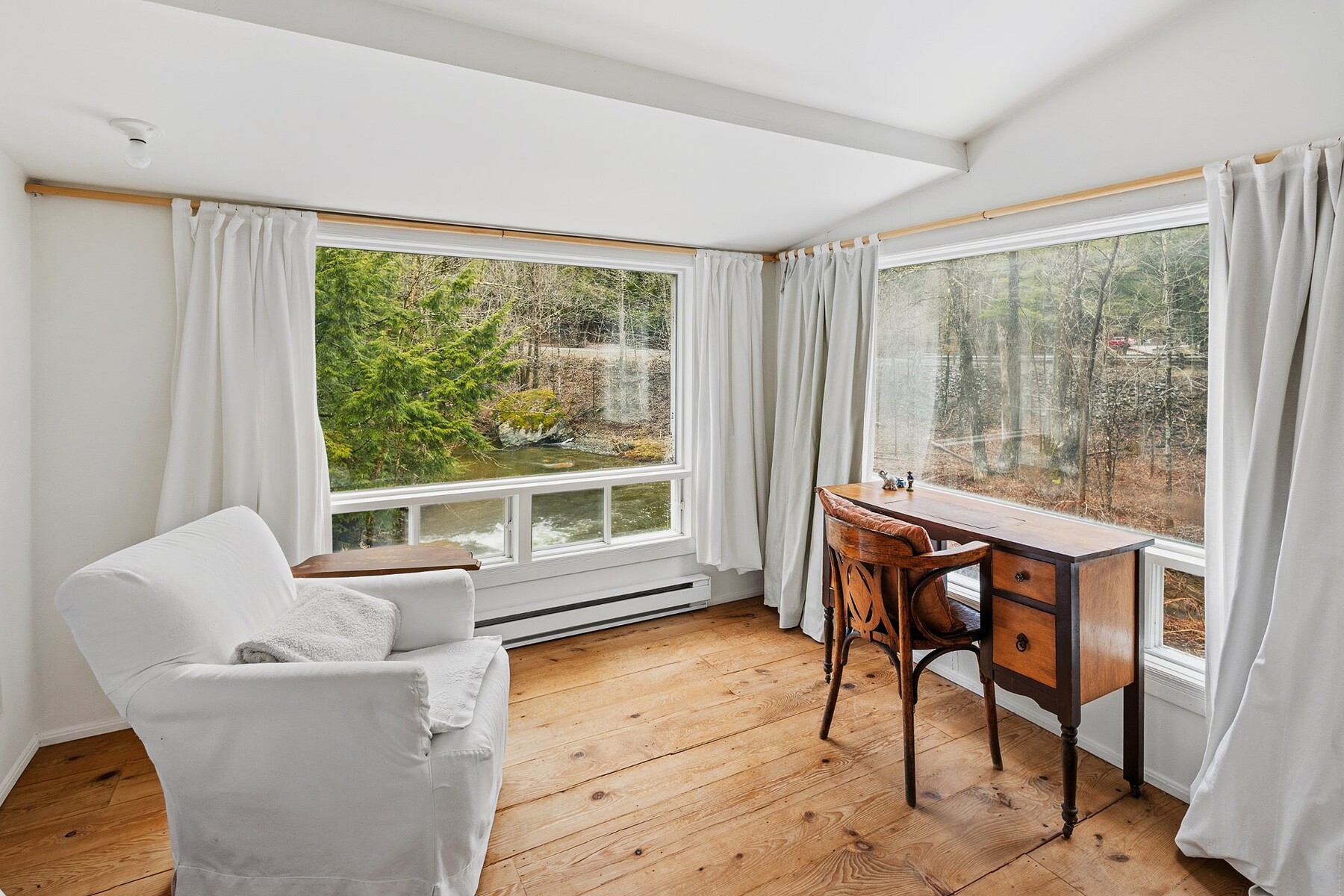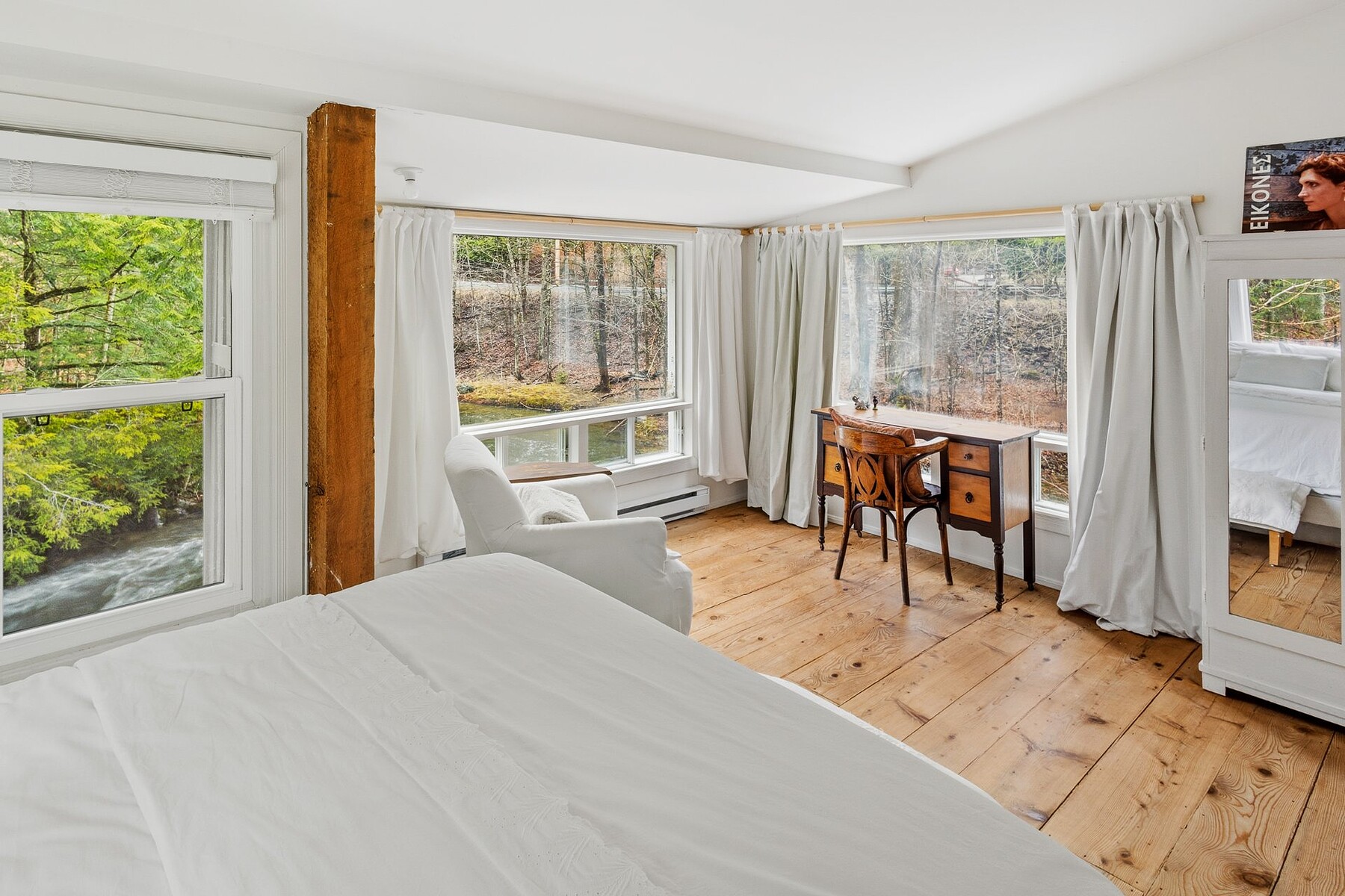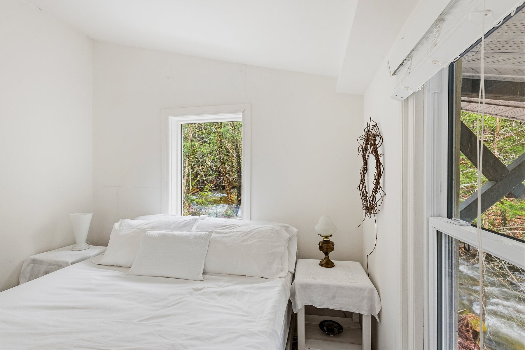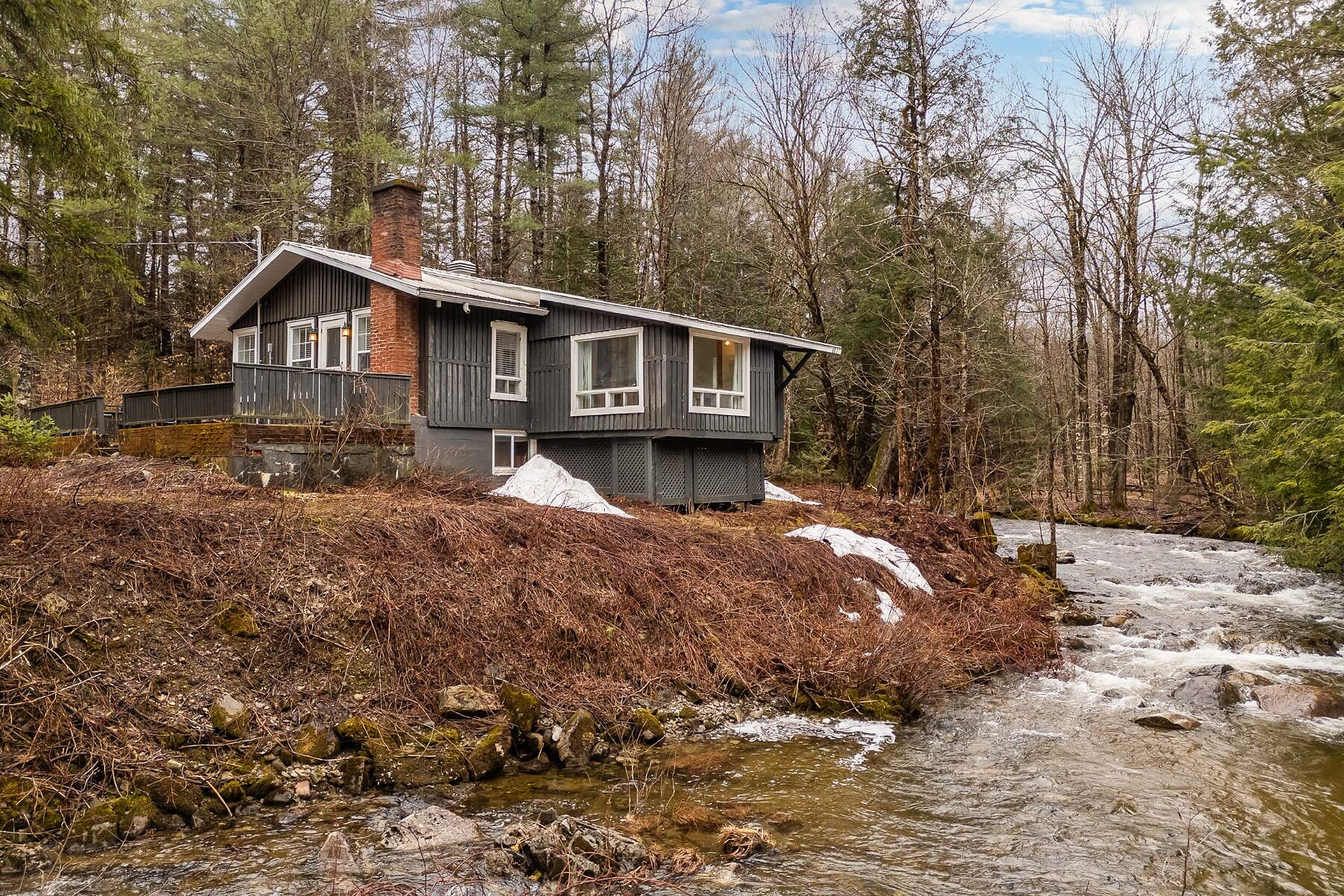 Unique property bordered by a beautiful stream, set in the heart of nature. Located in a sought-after area of Lac-Brome and surrounded by prestigious estates, it offers an excellent opportunity for optimization in a highly desirable setting. Its ever-present water views, mansard ceiling, and charming country-style architectural details bring warmth and character throughout. The nearly 20,000 sq. ft. lot, enhanced by mature trees, ensures exceptional privacy. A must-see.