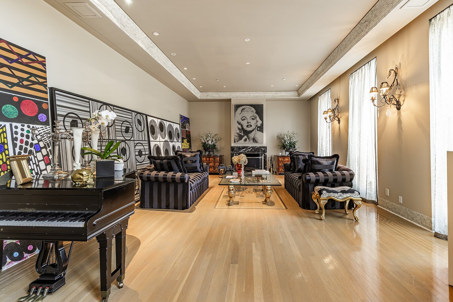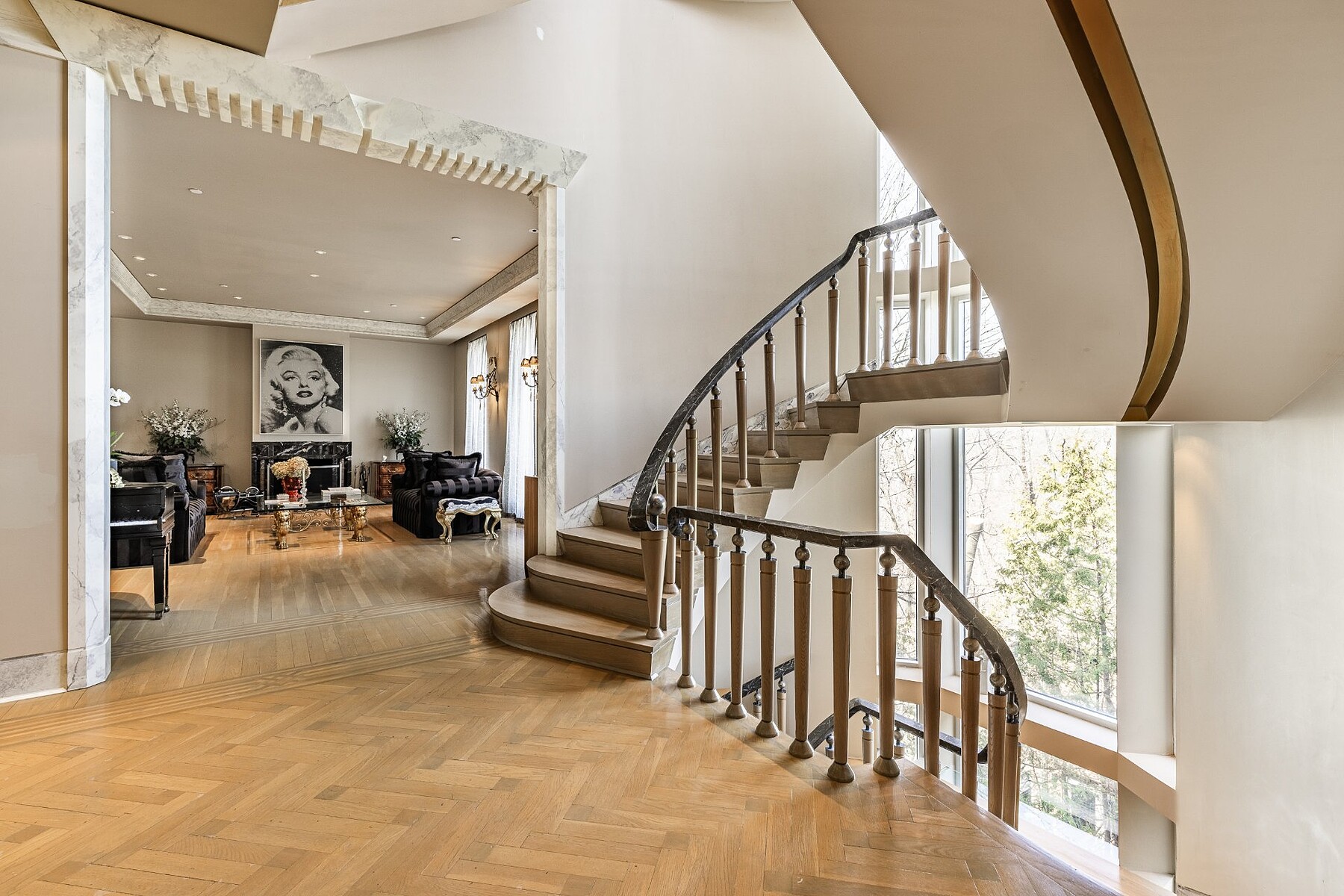 Perched atop prestigious Summit Circle across from the bird sanctuary in Upper Westmount, this grand custom-built limestone residence offers sweeping views of Mount Royal, soaring ceilings, refined living spaces, an indoor pool, elevator, and a rare combination of scale, privacy, and timeless elegance.