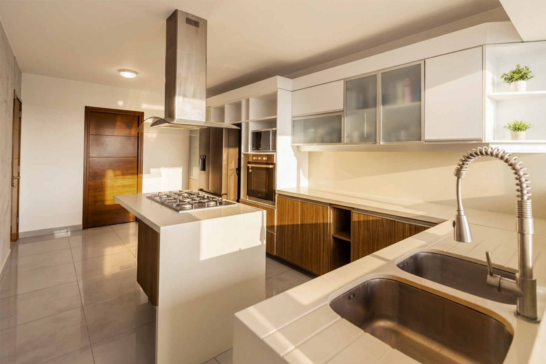 The spacious and modern kitchen, with a central island, is the meeting point, where the day begins with coffee in the breakfast nook and ends with leisurely conversations.