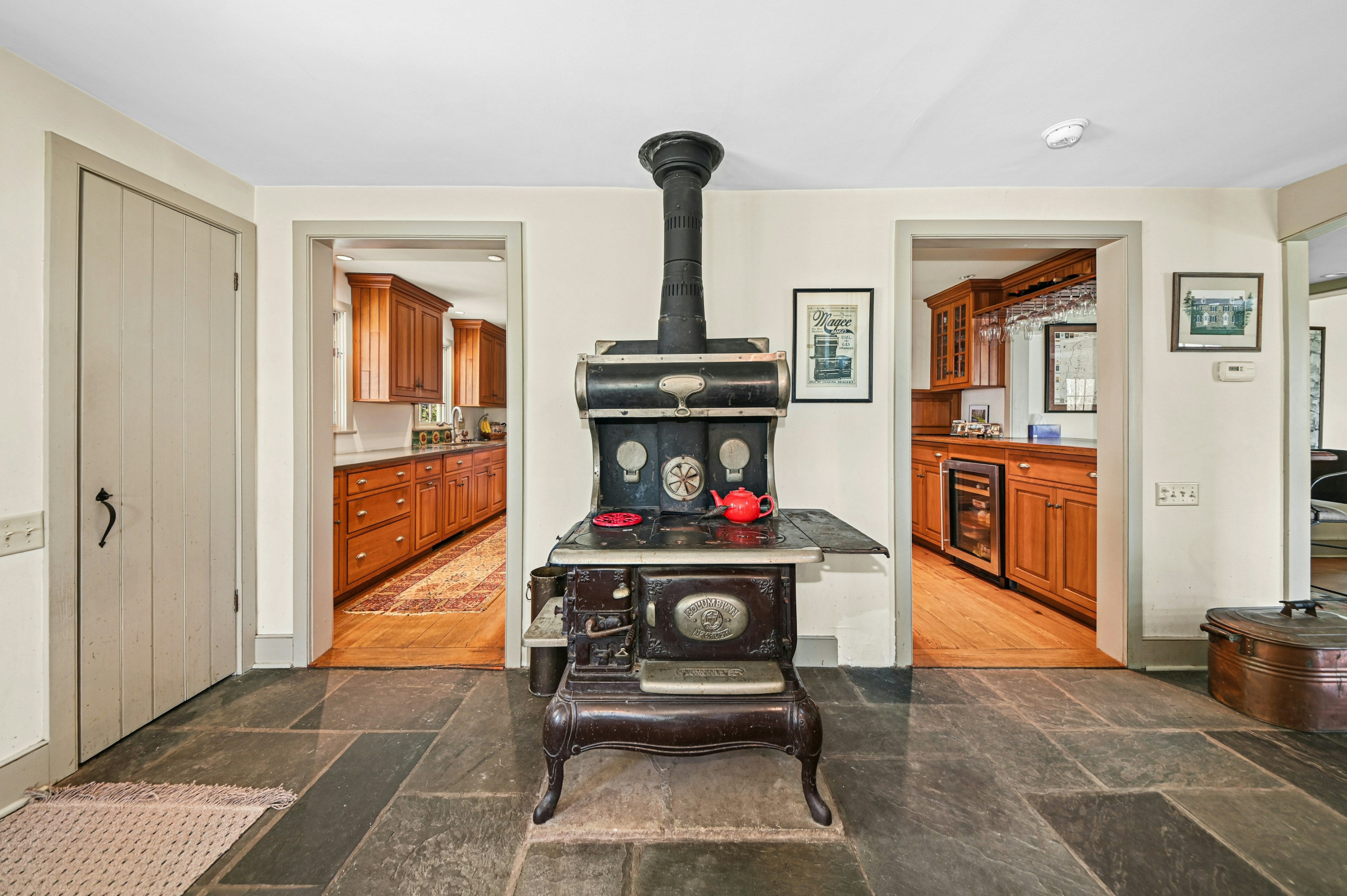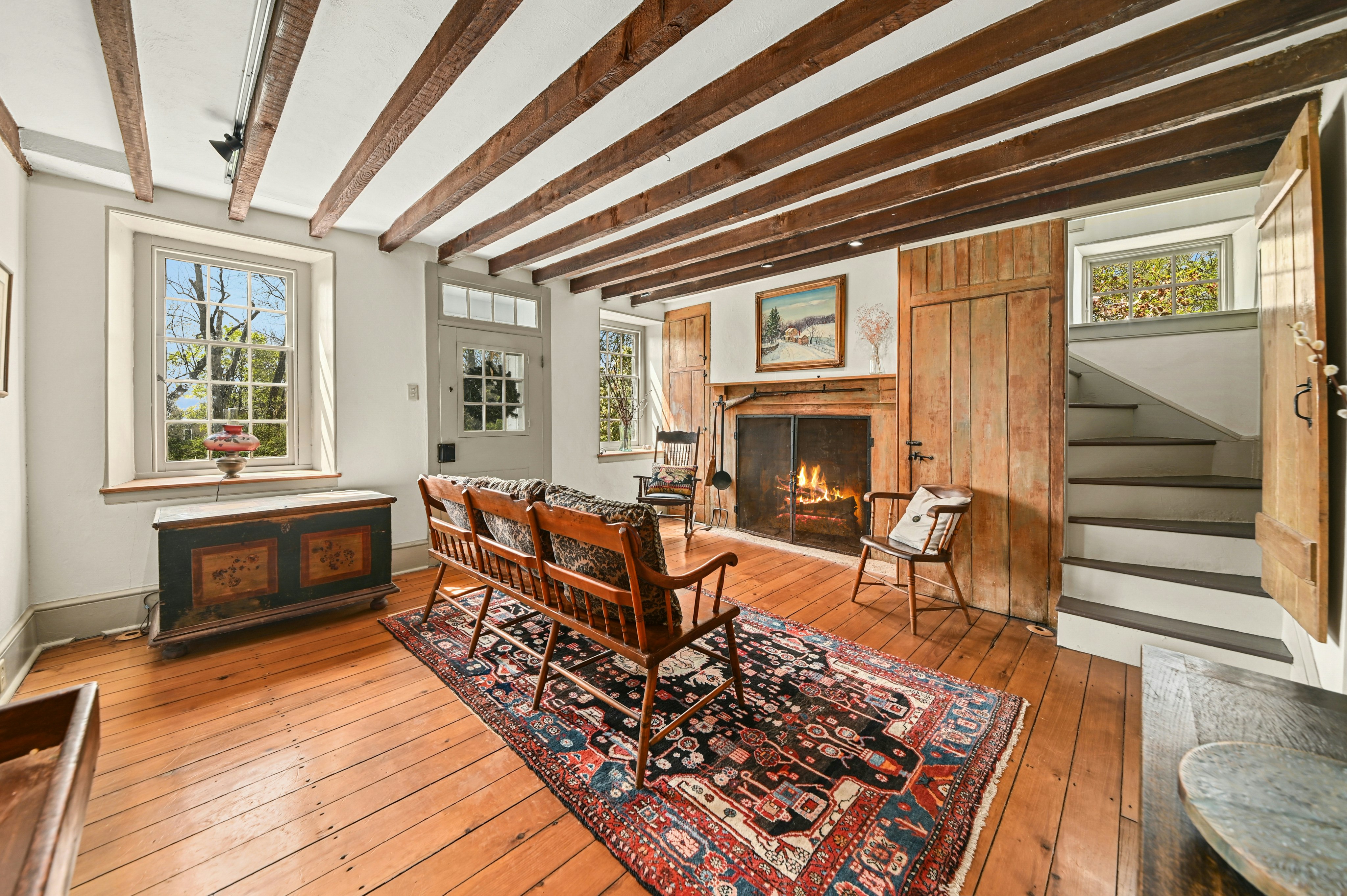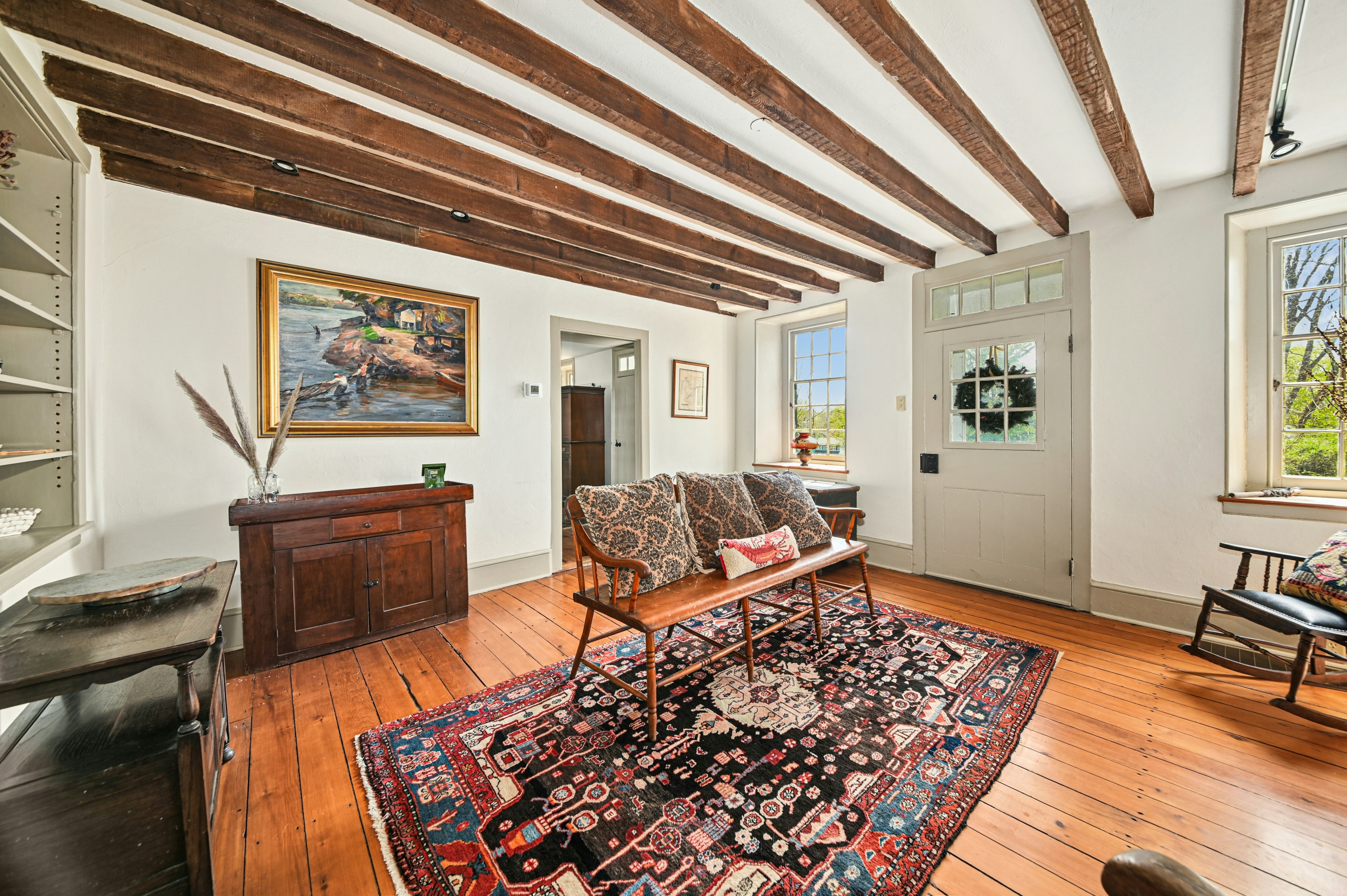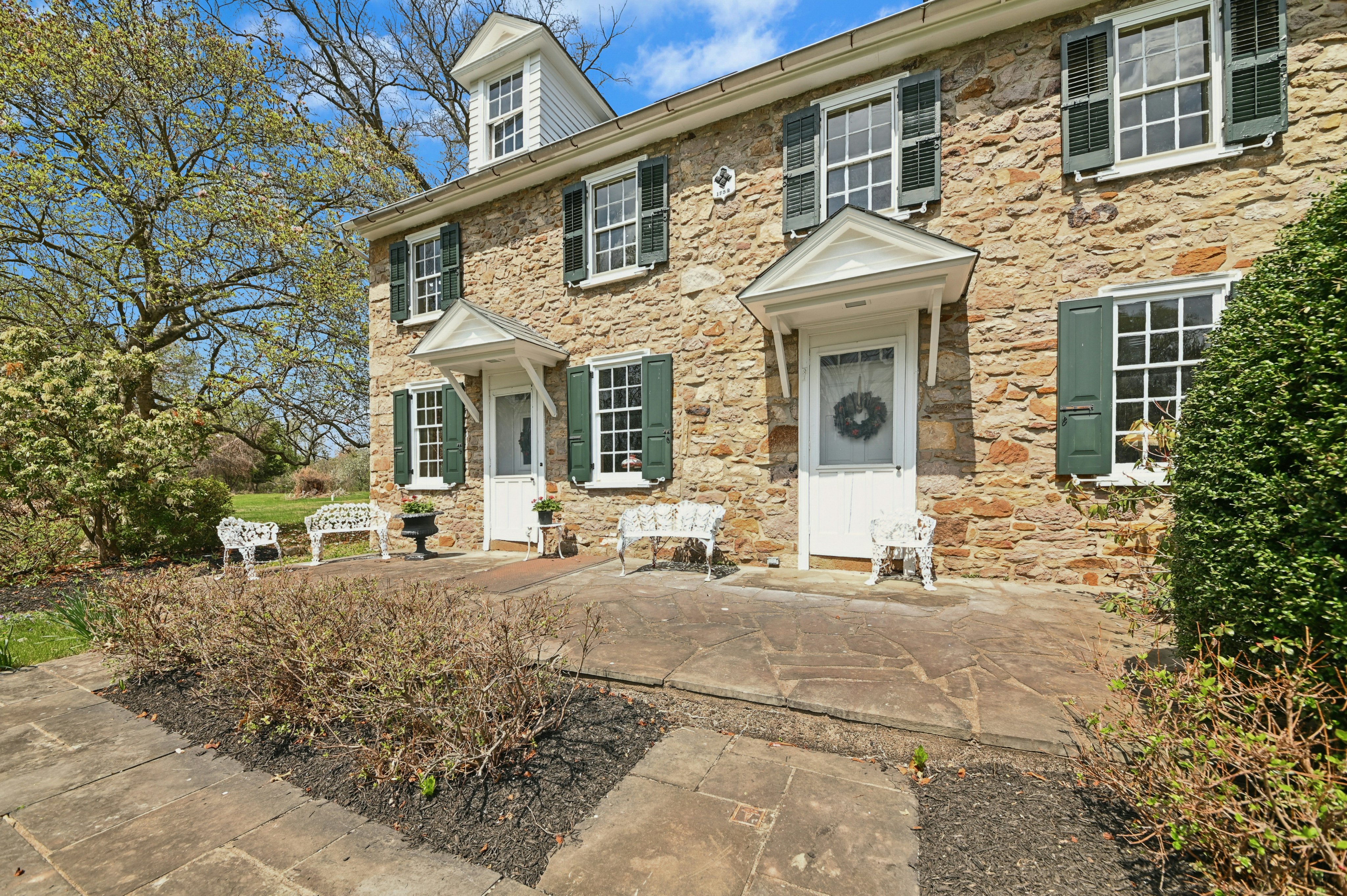 Offered for the first time in more than four decades, this exceptional circa-1752 stone farmhouse presents a rare opportunity to own a historic Bucks County estate combining architectural pedigree, acreage, and modern comfort just minutes from the heart of Doylestown. The home, thoughtfully expanded with architect-designed additions by Ellen Happ and Lynn Taylor, blends period craftsmanship with light-filled living spaces designed for today’s lifestyle. Featuring five bedrooms, three baths, a dedicated home office, and three fireplaces, the residence offers warmth, character, and versatility. A modern kitchen anchors the home, while original details—stone walls, antique wood flooring, and timeless textures—preserve its historic charm. In the cozy morning room, an antique coal stove and oven bring the warmth and character of a bygone era. Generous gathering spaces create a home that is both refined and welcoming. Set on over eight picturesque acres, the property invites a lifestyle deeply connected to the land. Sheep graze across fenced pastures, a chicken coop provides fresh eggs, and mature grapevines and open ground offer opportunities for gardening or small-scale farming. Wooded land to the rear enhances privacy and creates a peaceful natural backdrop—an increasingly rare rural experience so close to Doylestown and nearby Delaware Valley University, with its rich agricultural heritage. Multiple barns and outbuildings support a wide range of uses, all finished with slate roofs accented by metal roofing over porches—reflecting a consistent level of quality throughout the estate. A custom bank barn by Jarrett Vaughan Builders offers flexibility for equipment or livestock. The main barn provides storage for six or more vehicles—ideal for a car enthusiast—with stairs leading to a spacious loft featuring soaring ceilings, perfect for storage, a workshop, or a gathering/game area. This structure is flanked by a carriage house apartment—ideal for a caretaker, guest residence, or multi-generational living—complete with a spacious country kitchen, fieldstone fireplace, and laundry. A greenhouse adjacent to the main barn further enhances the property’s agricultural and lifestyle appeal. Outdoor living is equally compelling. The architect-designed cabana serves as a natural gathering space with a stone, wood-burning fireplace, serving bar, sink, and beverage refrigerator, just steps from the home’s first-floor bath. An in-ground pool, along with patios and porches, creates an inviting setting for entertaining or quiet relaxation. Served by public water and sewer, the property also offers potential for subdivision or future development, subject to township approvals—providing long-term flexibility rarely found in estate properties of this character. Located moments from the shops, restaurants, and cultural attractions of Doylestown, this remarkable offering combines history, land, architecture, and lifestyle in a way that is increasingly rare in Bucks County.