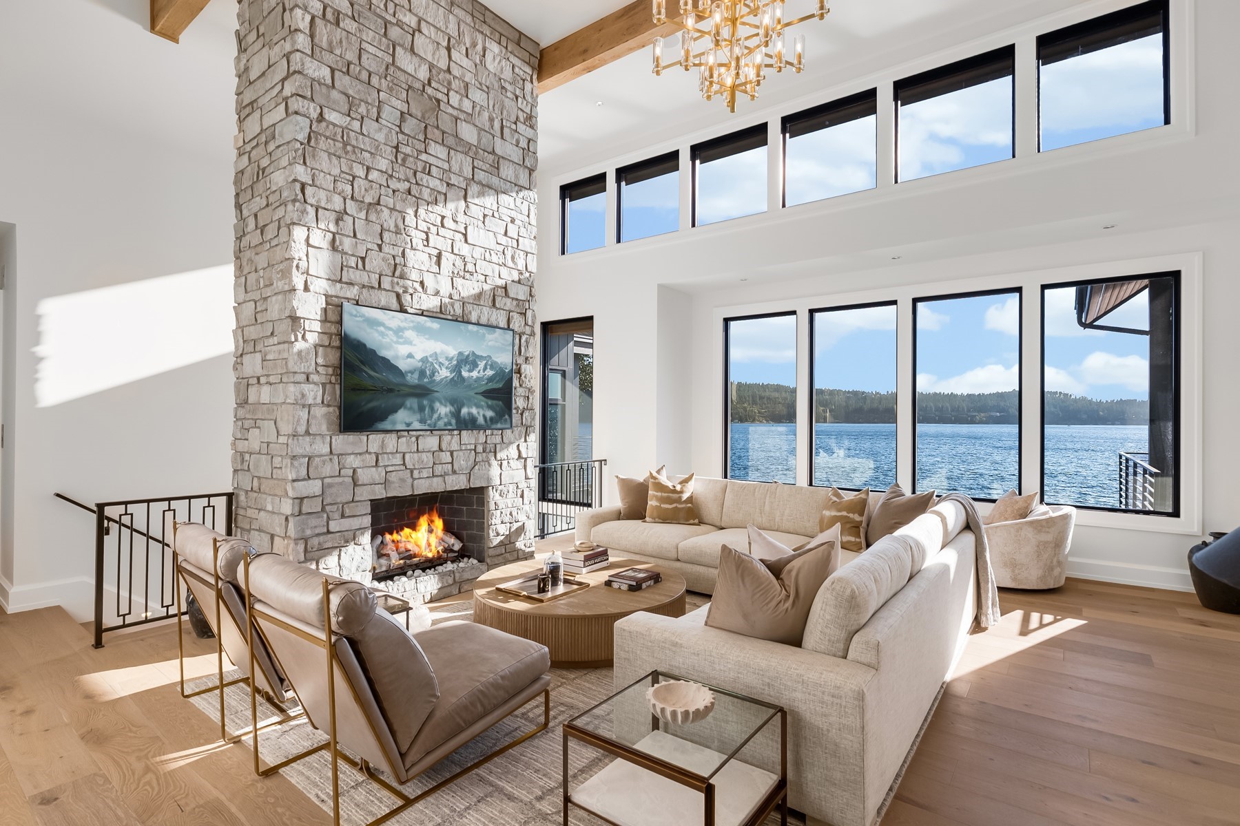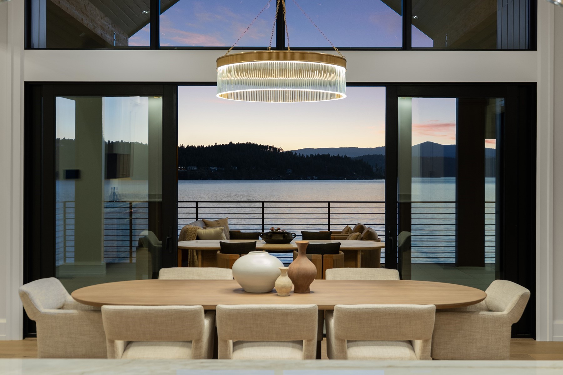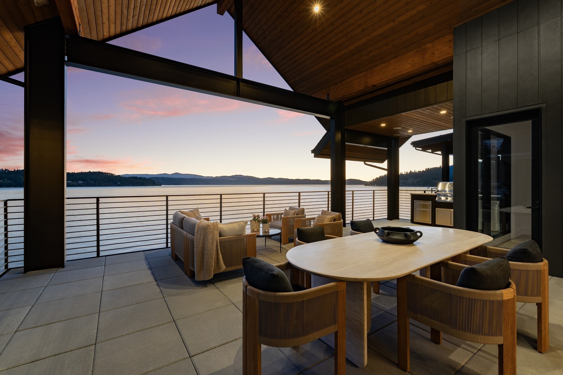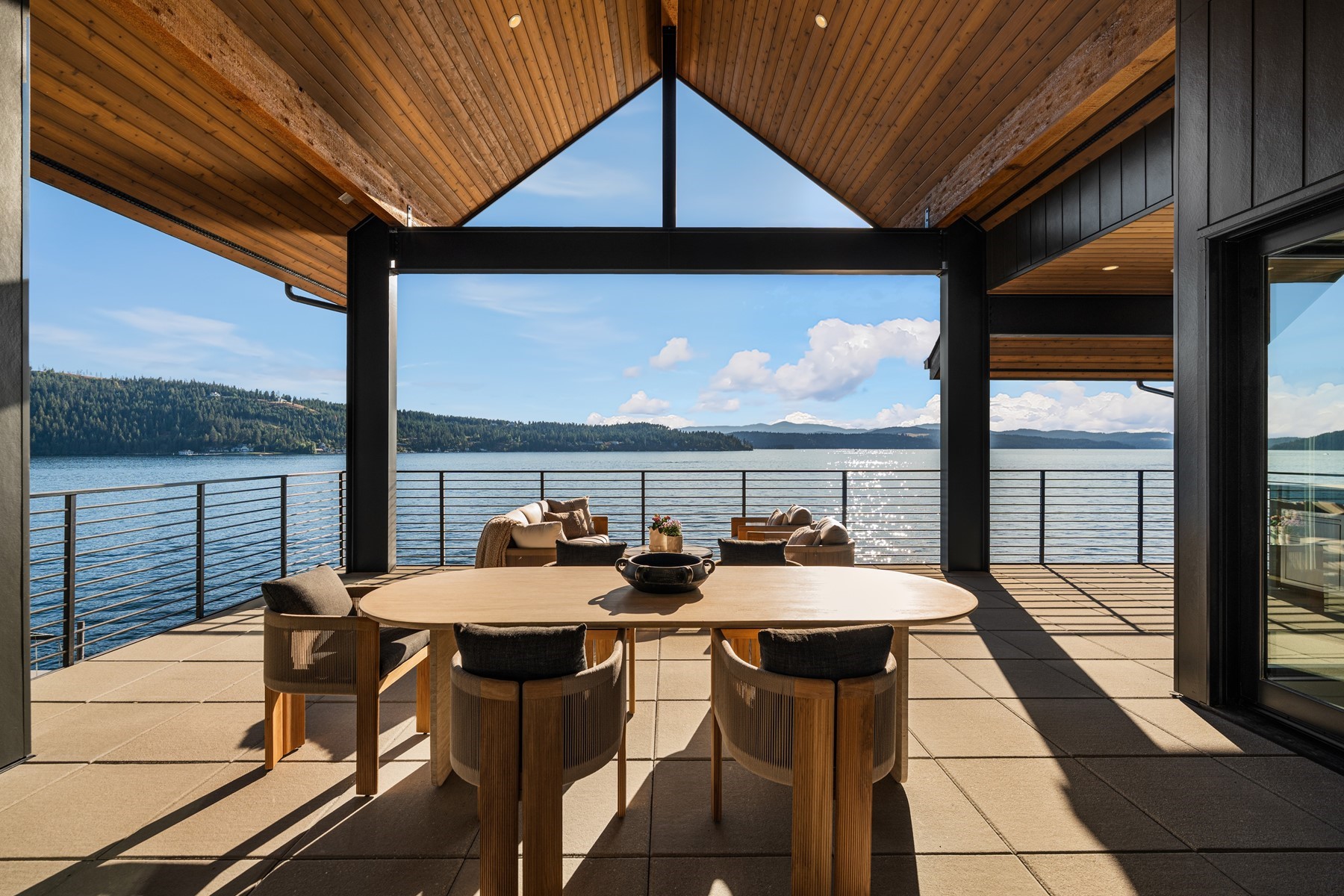 Experience extraordinary LAKEFRONT living in this 6500+ sq ft MOUNTAIN MODERN in Bennett Bay on Lake Coeur d'Alene, offering 113' of waterfront feet and a rare SANDY BEACH and low bluff to water with your private dock. Inspired design to capture sweeping Lake views from every room. The ultimate in Lake Living only 10 min to town with expansive decks, and seamless indoor-outdoor living. The great room showcases soaring ceilings, a statement fireplace, and walls of glass. A gourmet kitchen with SUBZERO and WOLF appliances, large quartz island, and walk-in pantry anchors the home. Entertain in the wine vault and tasting hall, theater, dual bars, and fitness room. The primary suite Boasts a spa bath with Carrara marble, walk-in closet, and lakeview deck, complemented by three en-suite guest rooms. Elevator access, hot tub, and 3-car garage complete this exceptional offering minutes from downtown Coeur d'Alene.Live your best life