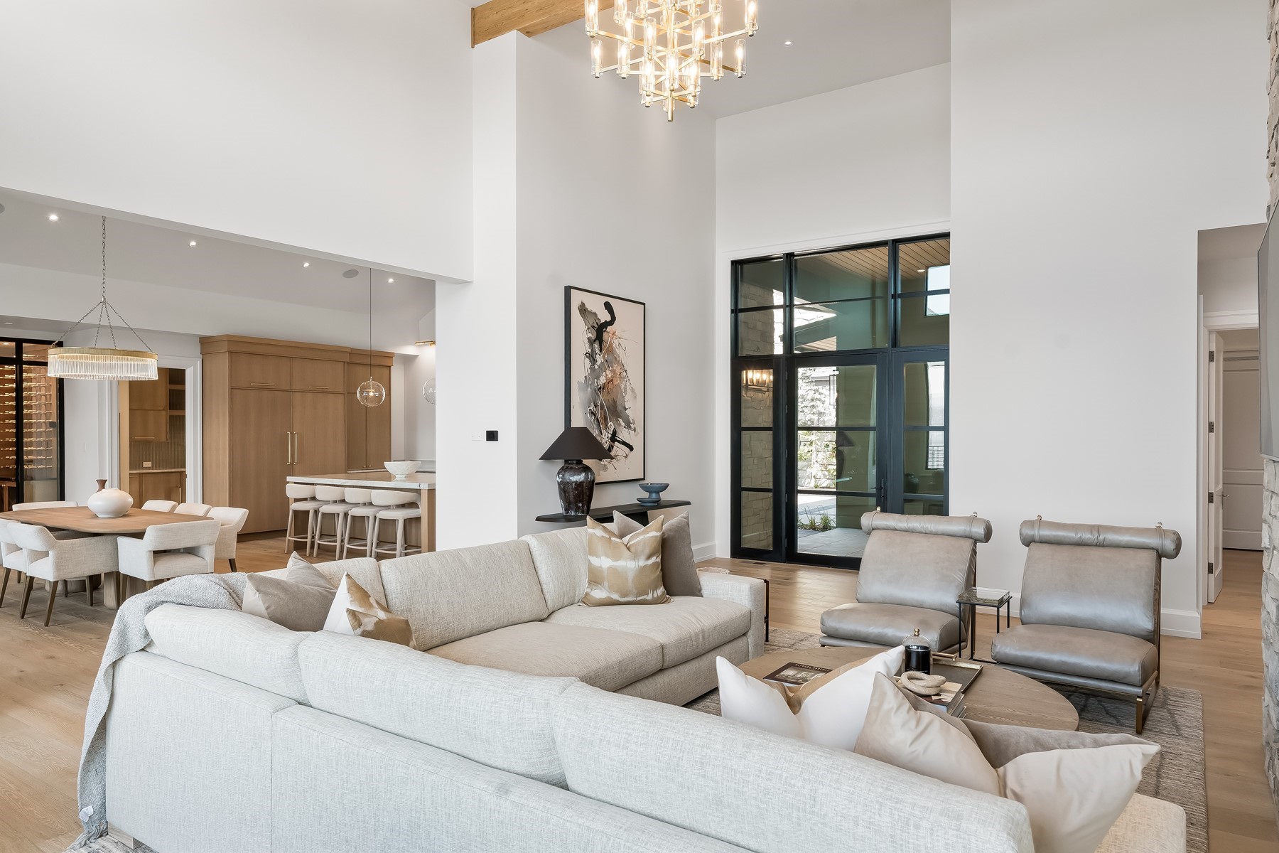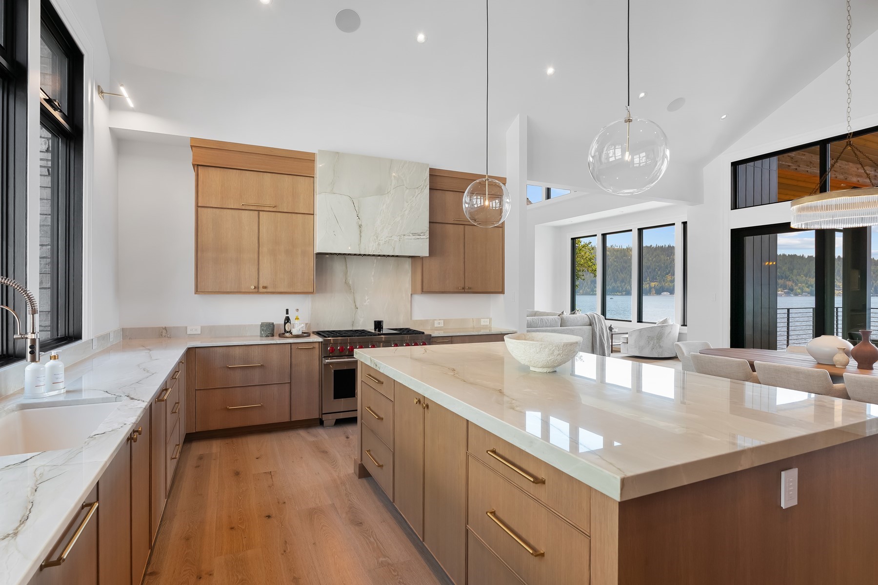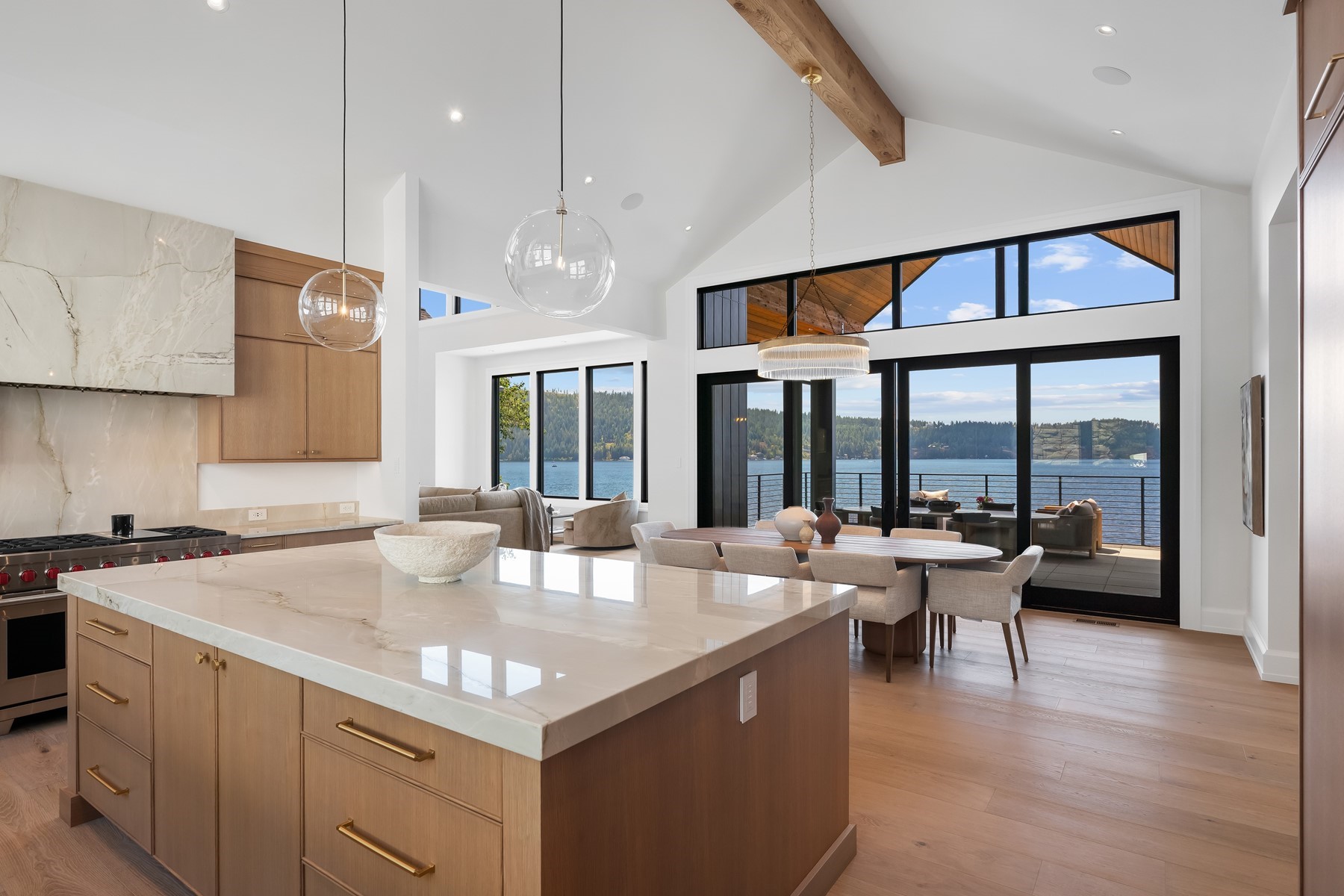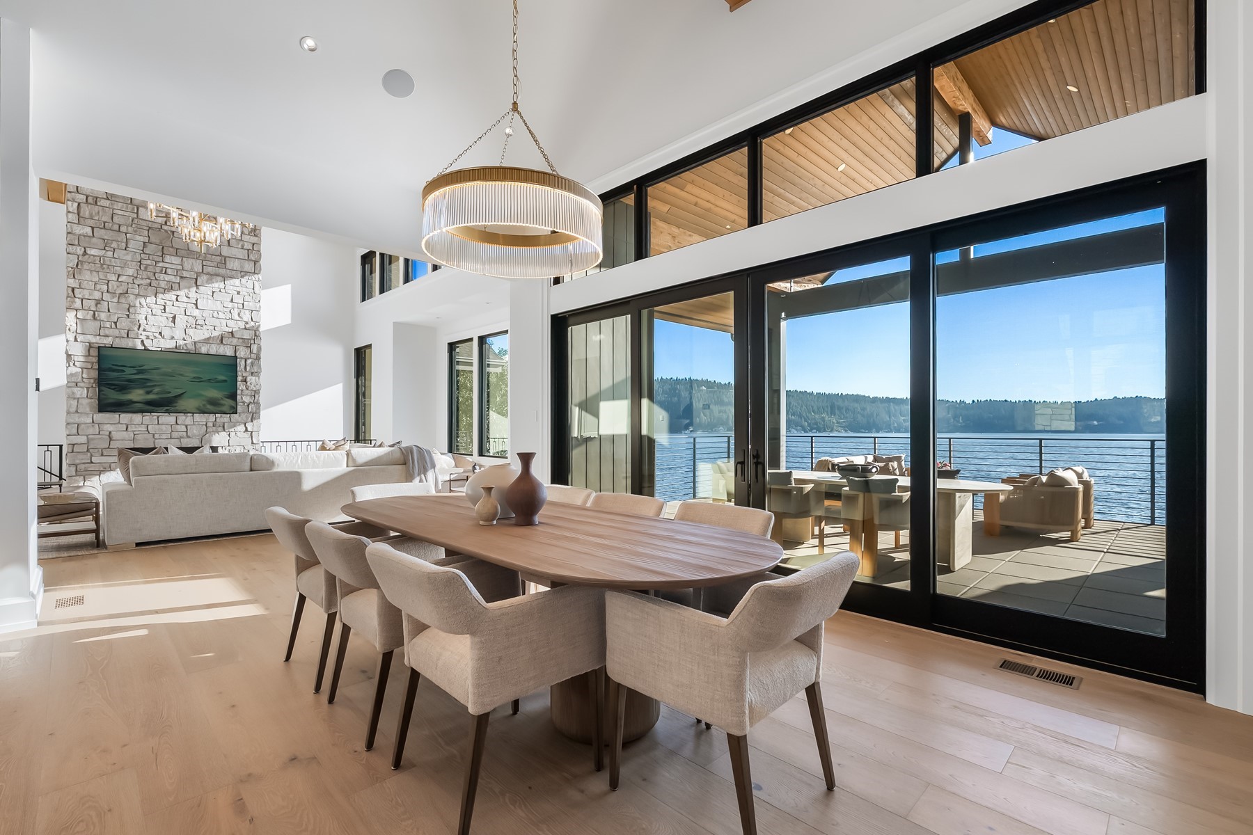 Experience extraordinary LAKEFRONT living in this 6500+ sq ft MOUNTAIN MODERN in Bennett Bay on Lake Coeur d'Alene, offering 113' of waterfront feet and a rare SANDY BEACH and low bluff to water with your private dock. Inspired design to capture sweeping Lake views from every room. The ultimate in Lake Living only 10 min to town with expansive decks, and seamless indoor-outdoor living. The great room showcases soaring ceilings, a statement fireplace, and walls of glass. A gourmet kitchen with SUBZERO and WOLF appliances, large quartz island, and walk-in pantry anchors the home. Entertain in the wine vault and tasting hall, theater, dual bars, and fitness room. The primary suite Boasts a spa bath with Carrara marble, walk-in closet, and lakeview deck, complemented by three en-suite guest rooms. Elevator access, hot tub, and 3-car garage complete this exceptional offering minutes from downtown Coeur d'Alene.Live your best life