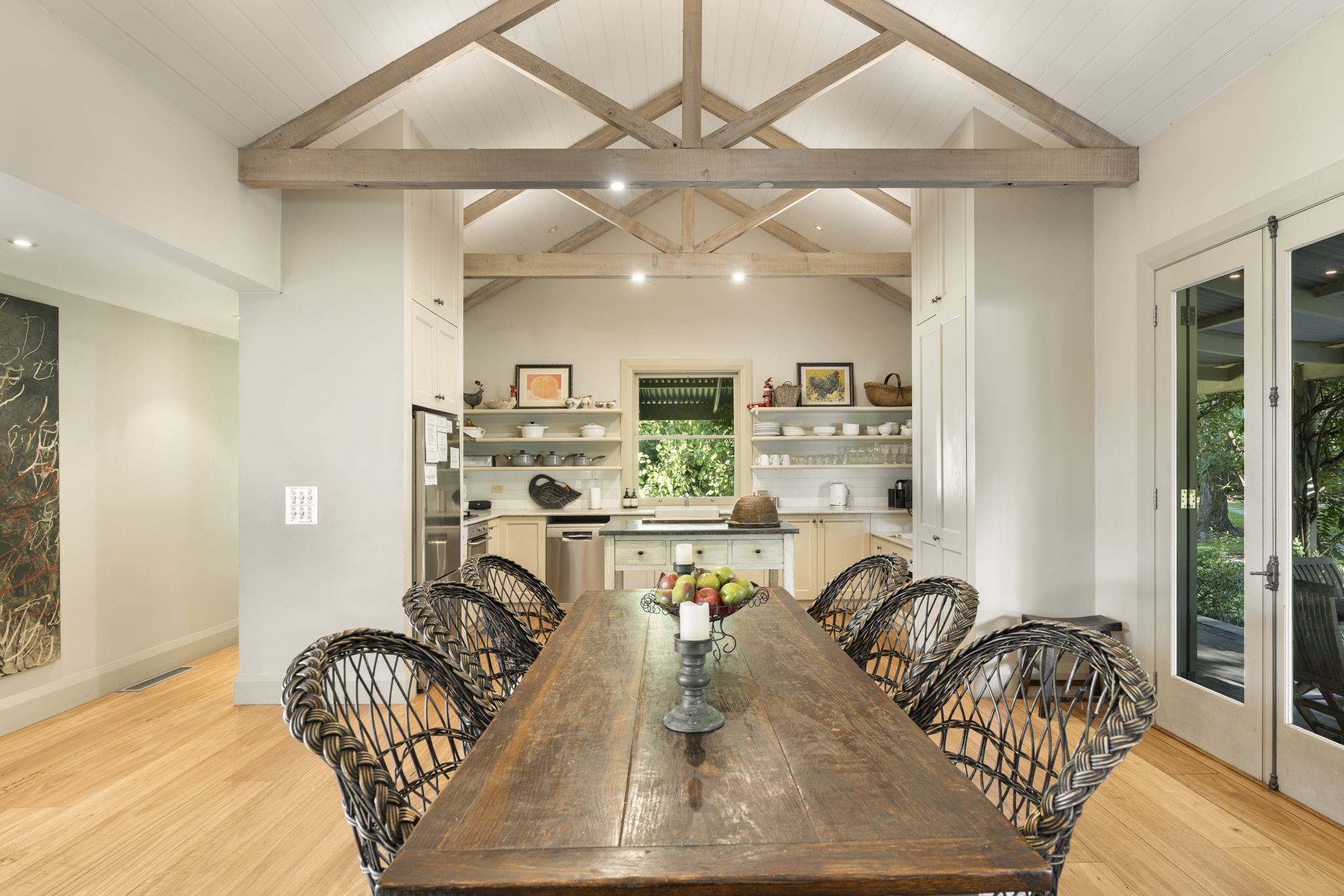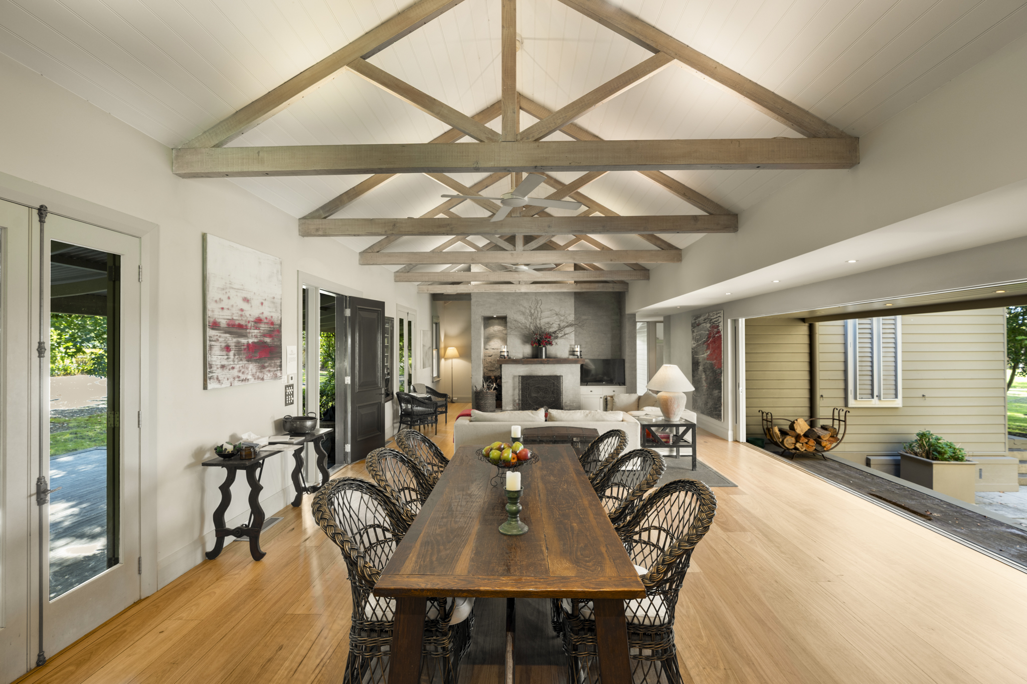 Embodying style, quality, and luxury on approximately 5 acres and just 7 minutes (approx.) from the heart of Berry village, this Broughton Vale residence delivers an exceptional blend of refined design and effortless elegance including championship size tennis-court. In conjunction with Sydney HeliTours, the property is positioned approximately 32 minutes (approx.) by helicopter from Mascot, offering a unique connection to Sydney for those seeking both accessibility and escape. From the moment you arrive via the private driveway off exclusive Bong Bong Rd, you are greeted by the tranquil surrounds. Framed by rare ancient trees, a bubbling creek, citrus groves, and the natural beauty of the neighboring forest, the setting feels both private and deeply connected to nature. An idyllic pond, home to a family of ducks, adds to the storybook quality of this remarkable property. Inside, the home reveals interiors alive with timeless style. Expansive sliding glass doors dissolve the boundary between indoors and out, allowing light, air, and landscape to flow effortlessly through the space. Thoughtfully designed with organic elegance and rare sophistication, and expertly executed by renowned local builders - Strongbuild, the home showcases wide French oak flooring, soaring ceilings with exposed timber beams, lavish natural finishes, and soft recessed lighting that enhances its warmth and refined character. The main living zone is grand yet inviting, anchored by a roaring fireplace that creates an atmosphere of comfort and luxury. Spaces unfold naturally, including a thoughtfully integrated study, perfect for moments of quiet retreat. At the heart of the home, the country kitchen is both beautiful and welcoming. Floor-to-ceiling cabinetry and quality appliances are complemented by an inviting and stylish zinc island bench where friends and family can gather. The home has been designed with both privacy and flexibility in mind. The main residence offers three bedrooms, including a sumptuous private master suite, set with a walk-in wardrobe, complete with an on-demand fireplace and luxurious ensuite. Each bedroom showcases picture-perfect views and opens directly to the outdoors, creating a fluid connection between interior spaces and the surrounding natural beauty. Even the functional spaces are imbued with charm. The European-style laundry/mudroom evokes a sense of relaxed country romance, while offering subtle practicality, including an ice-making machine - perfect for entertaining. Comfort is assured year-round with reverse-cycle ducted underfloor air conditioning and heating throughout, complemented by ceiling fans and the ambient warmth of the fireplaces through the cooler months. Outdoors, a large wraparound front verandah embraces the home, perfect for morning coffee or yoga, while a private rear courtyard offers a quiet sanctuary. Entertaining on a grand scale is effortless with a covered alfresco area positioned alongside the tennis court, complete with a dedicated BBQ space. A circular driveway adds to the sense of arrival, while a charming cubby house, mirroring the main residence, offers a whimsical touch for families. This is a truly rare offering - where timeless European-inspired design meets relaxed country luxury, and where every detail has been curated to create a home that is not only beautiful but deeply felt. Though wonderfully private and serene, this idyllic retreat offers outstanding lifestyle and convenience, exclusively located just 7 minutes (approx.) from Berry's charming cafés and boutiques, and beautiful beach coastline.