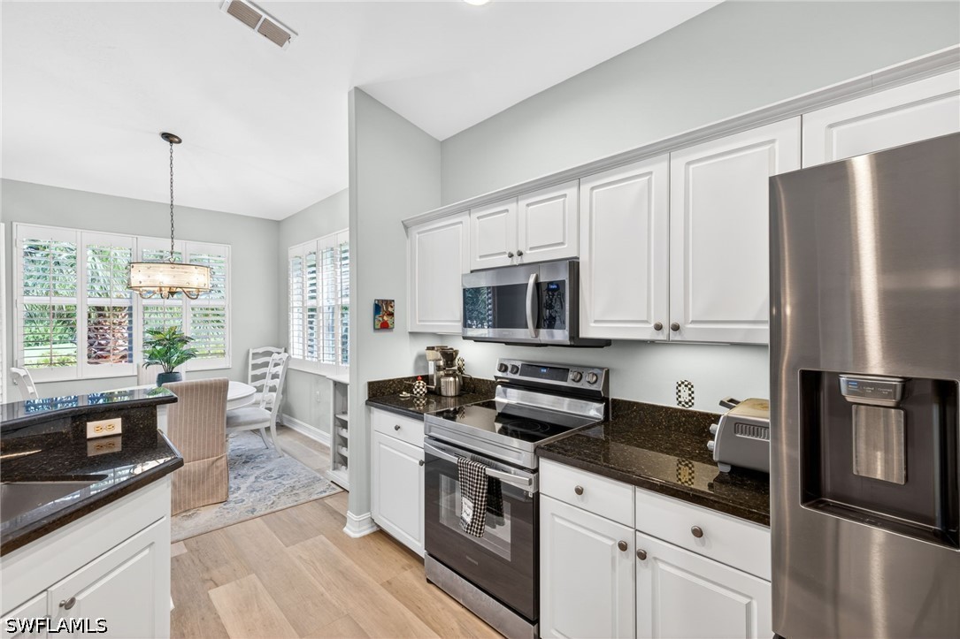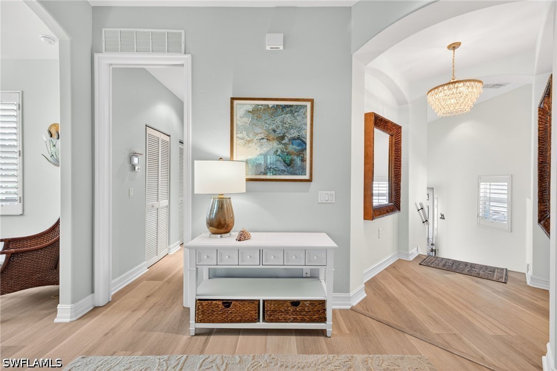 Welcome to one of the most sought after sections of Pelican Sound! This second-floor, end-unit coach home is located in the desirable Southern Hills Court, with oversized driveways and fabulous views. This fully updated residence offers 2 bedrooms plus a versatile den, with light luxury vinyl flooring in the living areas and plantation shutters throughout, volume ceilings and abundant natural light. The kitchen is beautifully appointed with granite countertops and stainless Samsung appliances. Tastefully furnished with coastal d cor, the home is move-in ready. The primary bedroom features a tray ceiling, lanai access, and a walk-in closet with a custom closet system. The updated primary bath includes dual sinks, under-cabinet lighting, and a walk-in shower with a frameless glass door. The guest bath is also updated with the wall being removed giving the bathroom a more open feel, under-cabinet lighting and a walk-in shower with frameless glass. Enjoy morning coffee or an evening beverage on the screened in lanai with Brand New Hurricane slider. The tranquil view of the golf course and lake offers great entertainment from wildlife to golfers. Additional upgrades include Brand New impact windows throughout, new washer and dryer, newer water heater, and new A/C in 2023. This home is ready for it's new owner to move in and enjoy! If you are looking for an active lifestyle look no further: 27 holes of Championship golf, 14 pickleball, 8 tennis and 6 bocce courts. State of the art fitness center that is professionally staffed. Pelican Sound is nestled up to the Estero River with access to the Gulf. The community offers dry boat storage, kayaks, canoes and paddle boarding, along with a shuttle boat to Lovers Key State Beach Park. Minutes from RSW International airport and surrounded by fabulous shopping and restaurants. Start Living The Dream!