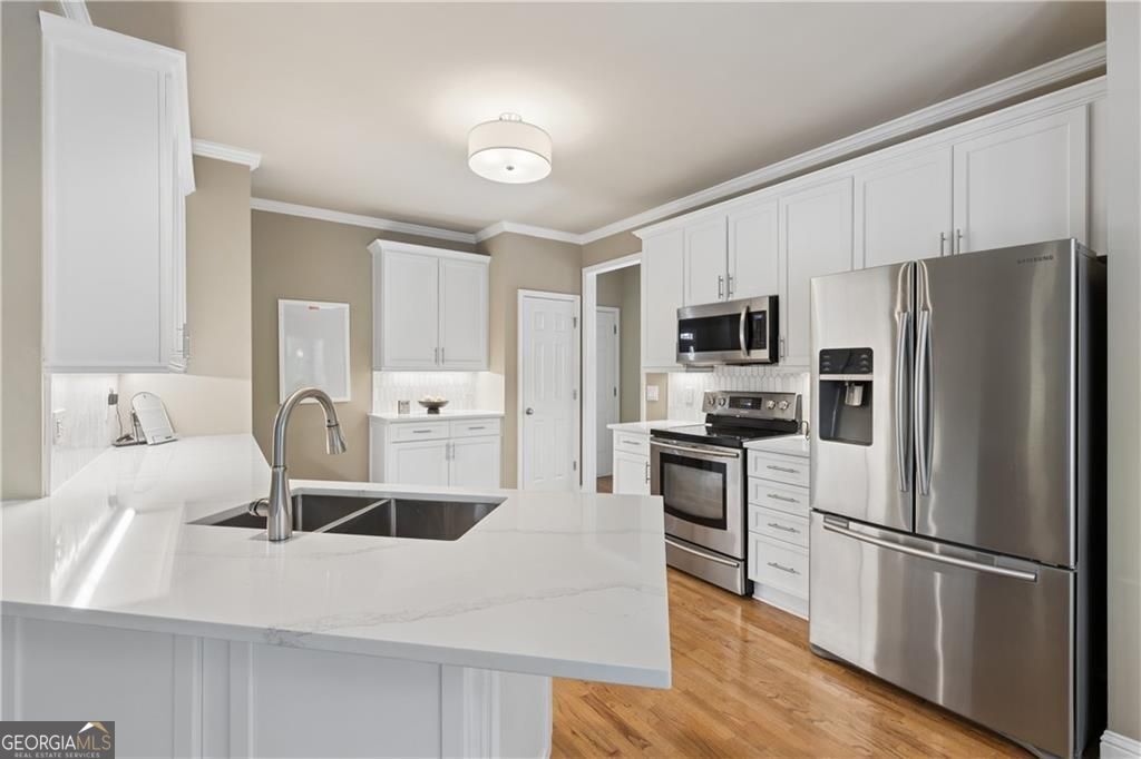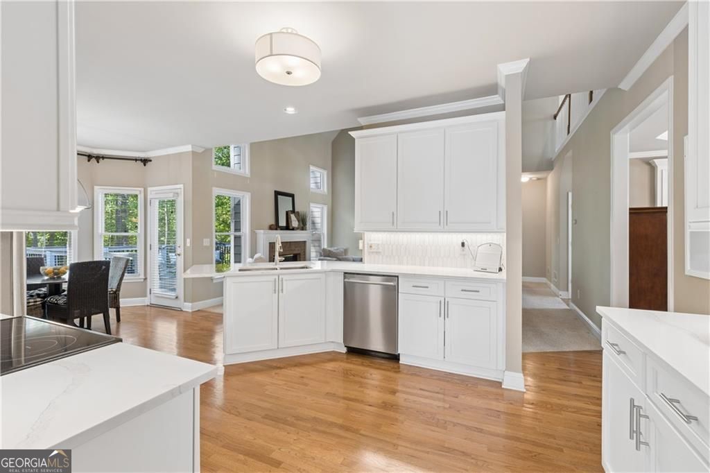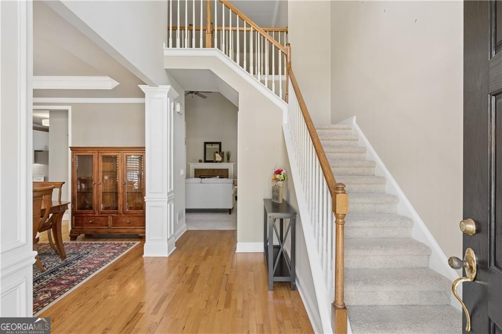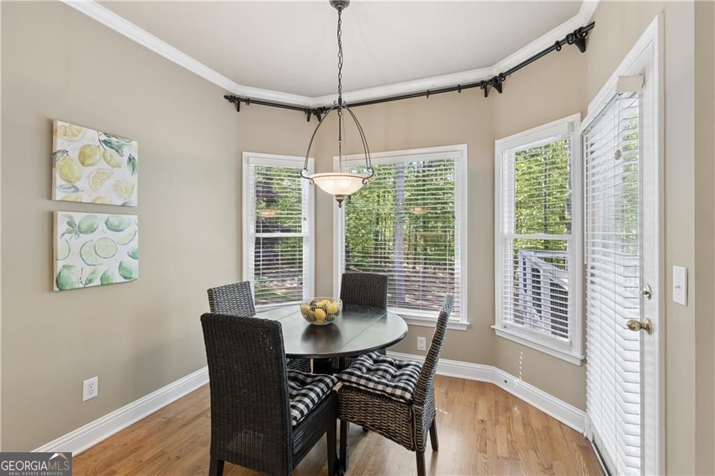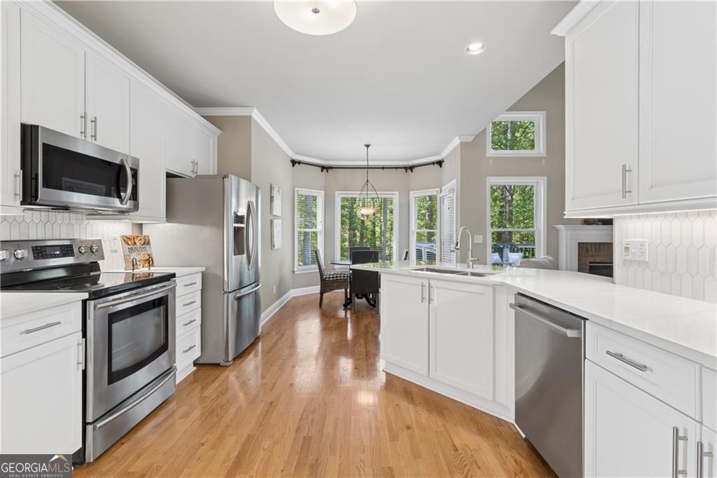Beautiful, spotless, and move-in ready-this traditional home in sought-after Bradshaw Farm offers the ideal blend of comfort, functionality, and timeless style. The main level is designed for easy living, featuring a spacious primary suite along with a secondary bedroom-perfect for guests, a home office, or flexible everyday use. The updated kitchen is the heart of the home, showcasing white cabinetry with soft-close features, quartz countertops, and an inviting eat-in area that opens seamlessly to the dramatic two-story family room. Filled with natural light, this space creates an open and airy feel ideal for both everyday living and entertaining. The primary suite is generously sized and features a beautifully updated en-suite bath with quartz countertops, a dual vanity, a seamless glass shower, and a freestanding soaking tub-creating a true retreat. Upstairs, you'll find three additional generously sized bedrooms, all with walk-in closets, along with a shared bath offering dual sinks and ample storage. The finished terrace level provides even more living space, complete with a pool table area, bar, TV/media room, workshop, and abundant storage, with plenty of room for future expansion if desired. Step outside to enjoy the Trex deck overlooking a private, wooded backyard with space to create your own outdoor oasis-including room for a pool. Tucked at the edge of a cul-de-sac in the highly desirable Bradshaw Farm community, residents enjoy access to swim, tennis, golf, and clubhouse amenities, all just minutes from award-winning schools, shopping, dining, and the charm of downtown Woodstock. This home is not to be missed!