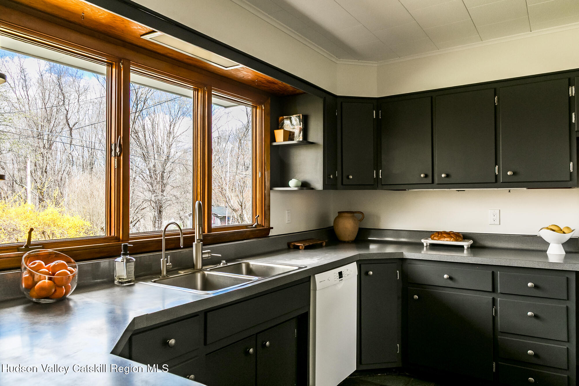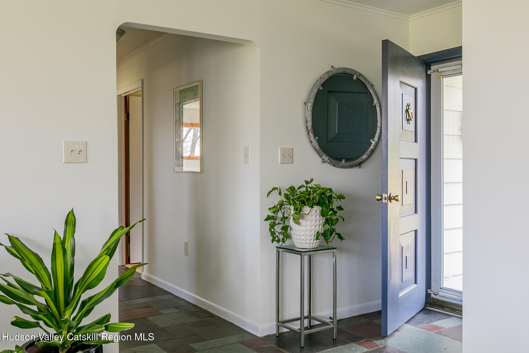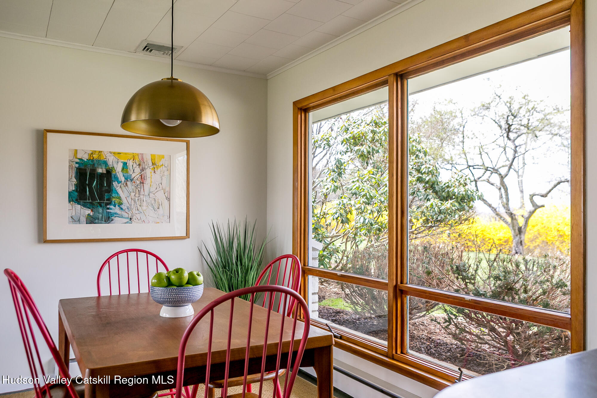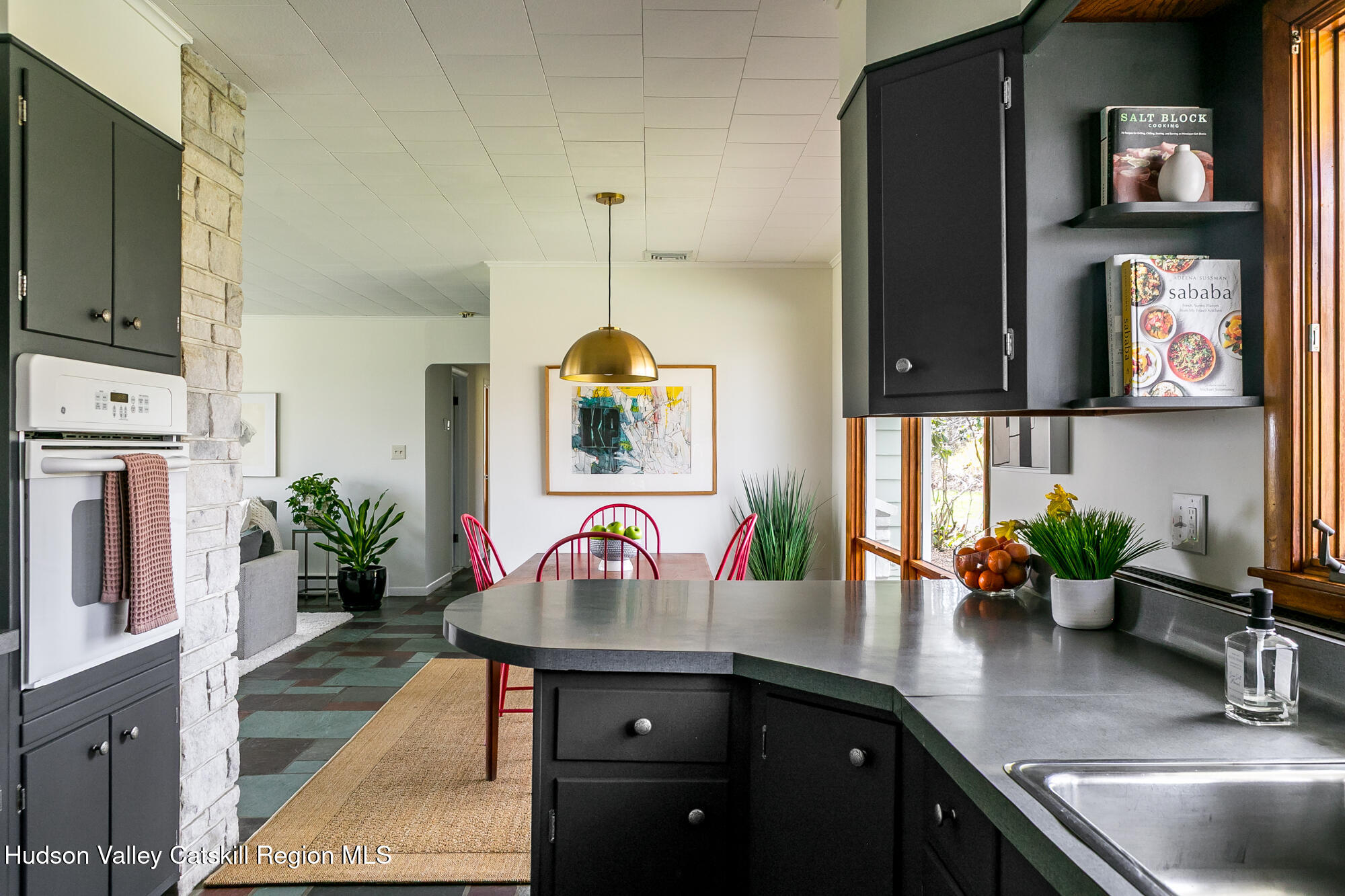 THE ''LOOKOUT HOUSE'' A Mid-Century Ranch Retreat in the Heart of the Hudson Valley Lovingly named The ''Lookout House'', this striking mid-century ranch sits confidently perched overlooking endless landscape of the Hudson Valley. The three-bedroom, two-bathroom, single floor home spans approximately 1600 feet. It also offers a two-car garage and tremendous storage. The soul of the home is its great room, where floor-to-ceiling windows dissolve the boundary between interior and landscape, framing panoramic views of the mountains and the rolling terrain of Wallkill. A commanding stone wood-burning fireplace anchors the space with warmth and timeless appeal, its generous bench seating an invitation to linger on crisp winter evenings, a hallmark of mid-century design at its most livable. The kitchen is both functional and full of potential, offering abundant storage, a breakfast peninsula perfect for casual gatherings, a wall oven, cooktop, dishwasher, and double sink. A sunny dining area flows naturally from the space, while an adjacent laundry and mudroom with additional pantry provides seamless transition to the attached two-car garage. The sleeping quarters are thoughtfully arranged along the home's generous footprint. Three bedrooms offer comfort and privacy, including a serene primary bedroom with walls of glass that capture the sweeping views beyond. There is a second bedroom offering an en suite bath and walk-in closet and finally, a third bedroom that can comfortably accommodate a Queen-sized bed plus additional furniture. A second full bath features a tub/shower combo, a newly updated, oversized vanity and additional storage in the linen closet. Completing this remarkable home is a luminous all-season room featuring a wall of windows drawing in natural light year-round, opening to a private backyard and patio ideal for al fresco entertaining or quiet contemplation of the landscape. Outside a sculptural spiral staircase ascends to a private lookout perch, where sweeping vistas of the countryside unfold in every direction -- a feature as poetic as it is rare. Mechanical highlights include central air conditioning, a whole-house generator, a newer roof, and an efficient Buderus furnace, ensuring comfort and peace of mind across every season. Perfectly positioned on a quiet country road, the property offers near-instant access to the very best the Hudson Valley has to offer: the charm of Gardiner, Wallkill, and Pine Bush; acclaimed wineries and craft breweries including Angry Orchard; the natural grandeur of Minnewaska State Park, Mohonk Mountain House, and the Shawangunk Grasslands National Wildlife Refuge. Chapel Field School and Blue-Chip Farm are just down the road, and major commuter routes are easily within reach. Whether sought as a forever home, a savvy investment, The ''Lookout House'' is a rare opportunity to own something genuinely irreplaceable, a home with a soul, a view, and a story all its own.