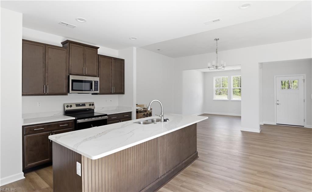 Our 55+ community offers modern, single-story living with high ceilings for a bright, open feel. The Veneto's spacious design flows effortlessly from the dining area to the great room, maximizing natural light. This beautifully finished home features a welcoming kitchen with wall oven/cooktop, a center island, ample counter space, and generous cabinetry. The elegant primary suite features a walk-in closet, luxurious bath with a full ceramic shower, bench seating, and a private water closet. Enjoy courtyard access from both the primary bedroom and kitchen. Additional highlights include a first-floor guest bedroom, sunroom, and a bonus room with a full bath above the attached two-car garage. Enjoy low-maintenance living with top-tier amenities: clubhouse, fitness center, pool, pickleball courts, and dog park. Nestled in scenic countryside yet close to Suffolk's business center, shopping, dining, and Obici Hospital. "RIGHTSIZE" your life & love where you live!