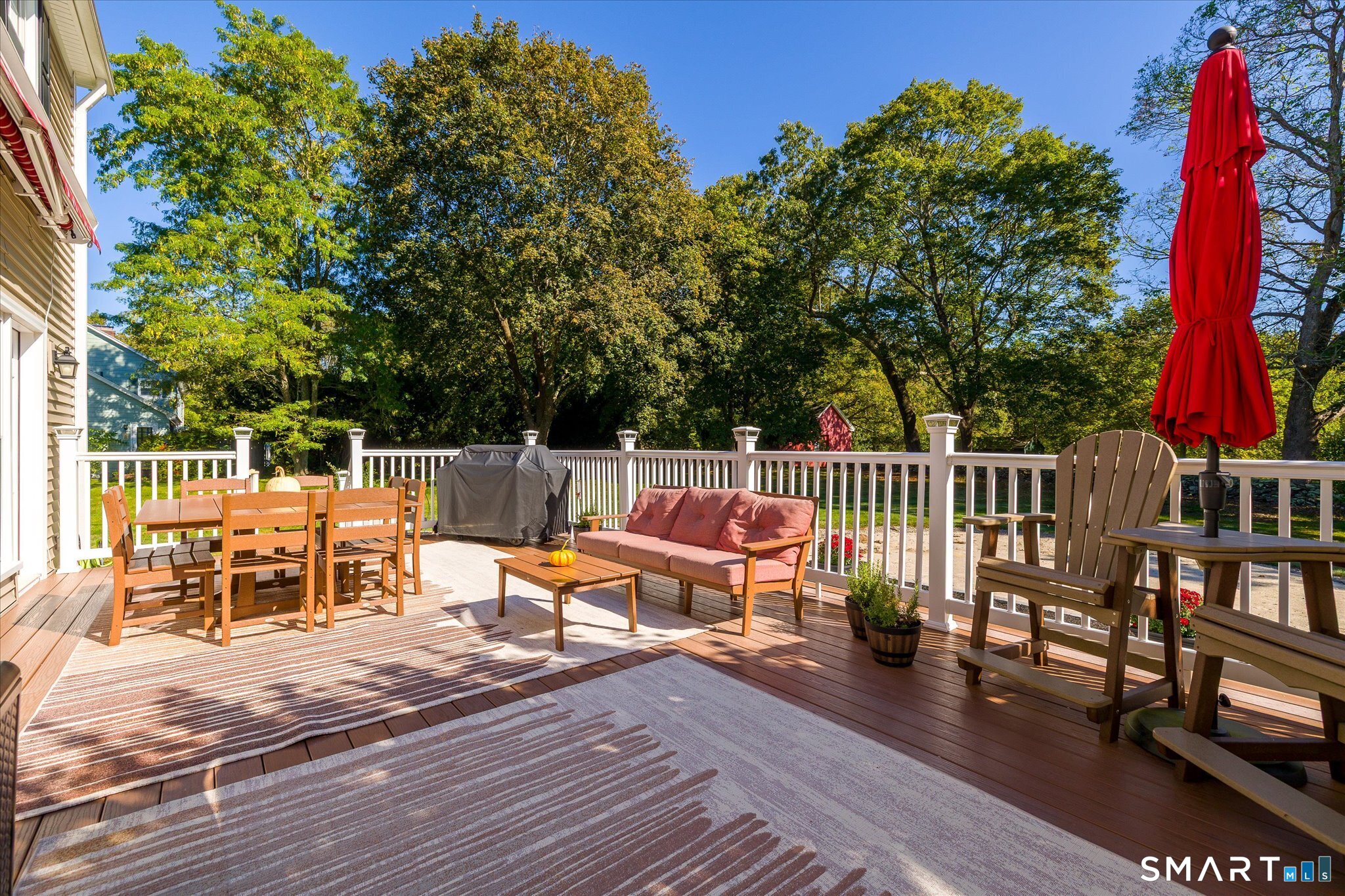 From its elegant curb appeal to its expansive, thoughtfully designed interior, this home offers a lifestyle of comfort, space, and distinction. Set on a beautifully manicured corner lot, steps from prestigious Thompson Hill, this meticulously maintained, low-maintenance home provides exceptional indoor and outdoor living. The rear features a new oversized composite deck with electric awning and an expansive paver patio, ideal for entertaining. The exterior is wrapped in fiberboard with new vinyl siding for durability. An oversized two car garage wired for heat with attached mud room and laundry room. Inside, the home offers generous proportions throughout, including four bedrooms and three and a half baths, oversized closets, and abundant storage. Comfort and efficiency are enhanced by five heating zones, two central air zones, and a whole-house propane generator. Main level showcases a large eat-in kitchen, formal dining room with large bay window and crown molding, and a formal living room with large bay window and fireplace. A recently remodeled family room features custom built-ins, recessed lighting, abundant windows, and direct access to the rear deck. Upper level includes an oversized primary suite with a newly remodeled spa-like bath featuring soaking tub, walk-in shower, double sinks, and quartz counters. Lower level offers approximately 1,052 square feet of partially finished space with fireplace, wet bar and half bath.Generous living spaces, comfort, convenience!