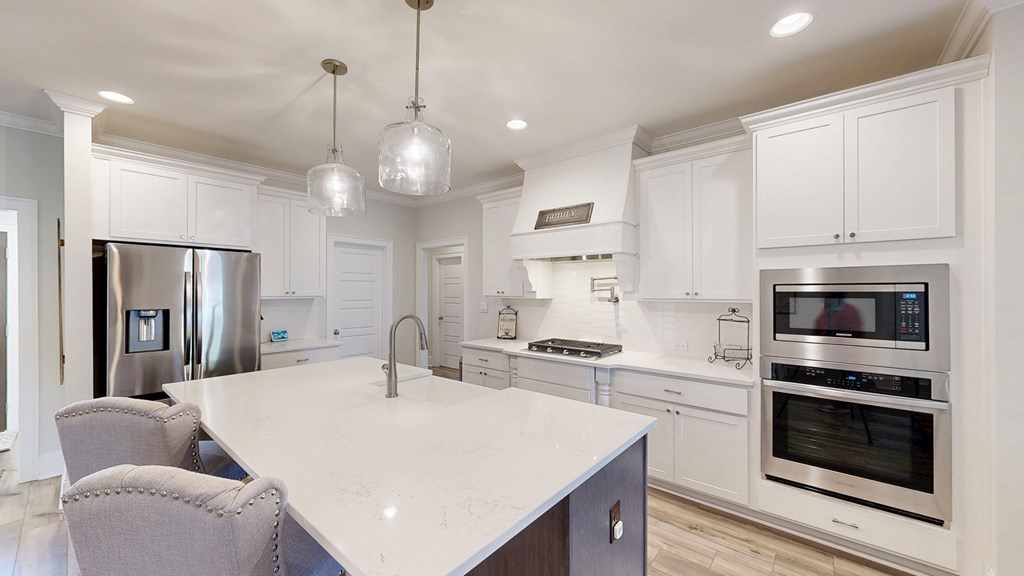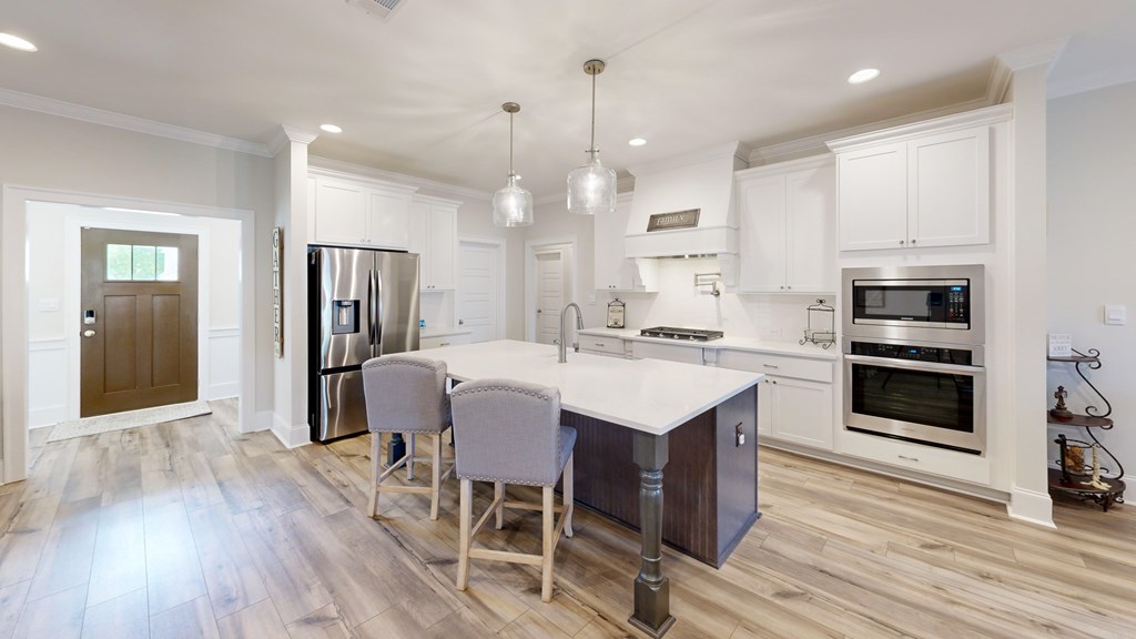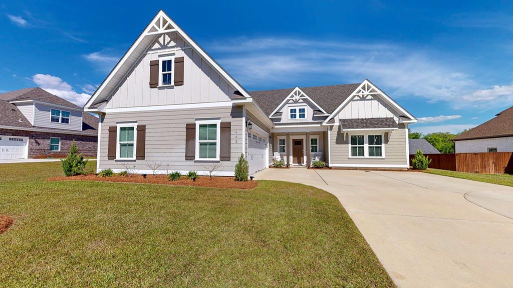 Welcome to 662 Charleston Mills! This is the one and only Acadia II floorplan in the neighborhood! This better than new energy efficient coastal craftsman style home has all the main living areas downstairs which includes 4 bedrooms and 3 full baths. Upstairs you will find the bonus room/5th bedroom along with another full bath. The distinguished foyer leads into a sectioned dining room with beautiful coffered ceilings. This space is perfect for dinners, game nights, or simply entertaining friends and family. The foyer also leads into an open kitchen, breakfast area, and expansive great room complete with a custom gas fireplace. The kitchen is equipped with all stainless-steel appliances, a farmhouse sink, pot filler over the gas range, walk in pantry, a large island, and upgraded quartz countertops. The pantry has added custom shelving as does the primary bedroom closets, linen closet, and upstairs bedroom closet. This beautiful home is also flooded with natural light! The primary bedroom is a true sanctuary and includes an en-suite with double vanities, a beautiful soaking tub, a separate tiled shower, and his and hers closets! The residence is fully fenced and has an expanded driveway. The pristine and quiet neighborhood of Charleston Mills is located just outside the city, yet minutes to all of the amenities of Dothan's West Side. The neighborhood has a community pool and a dog park as well!